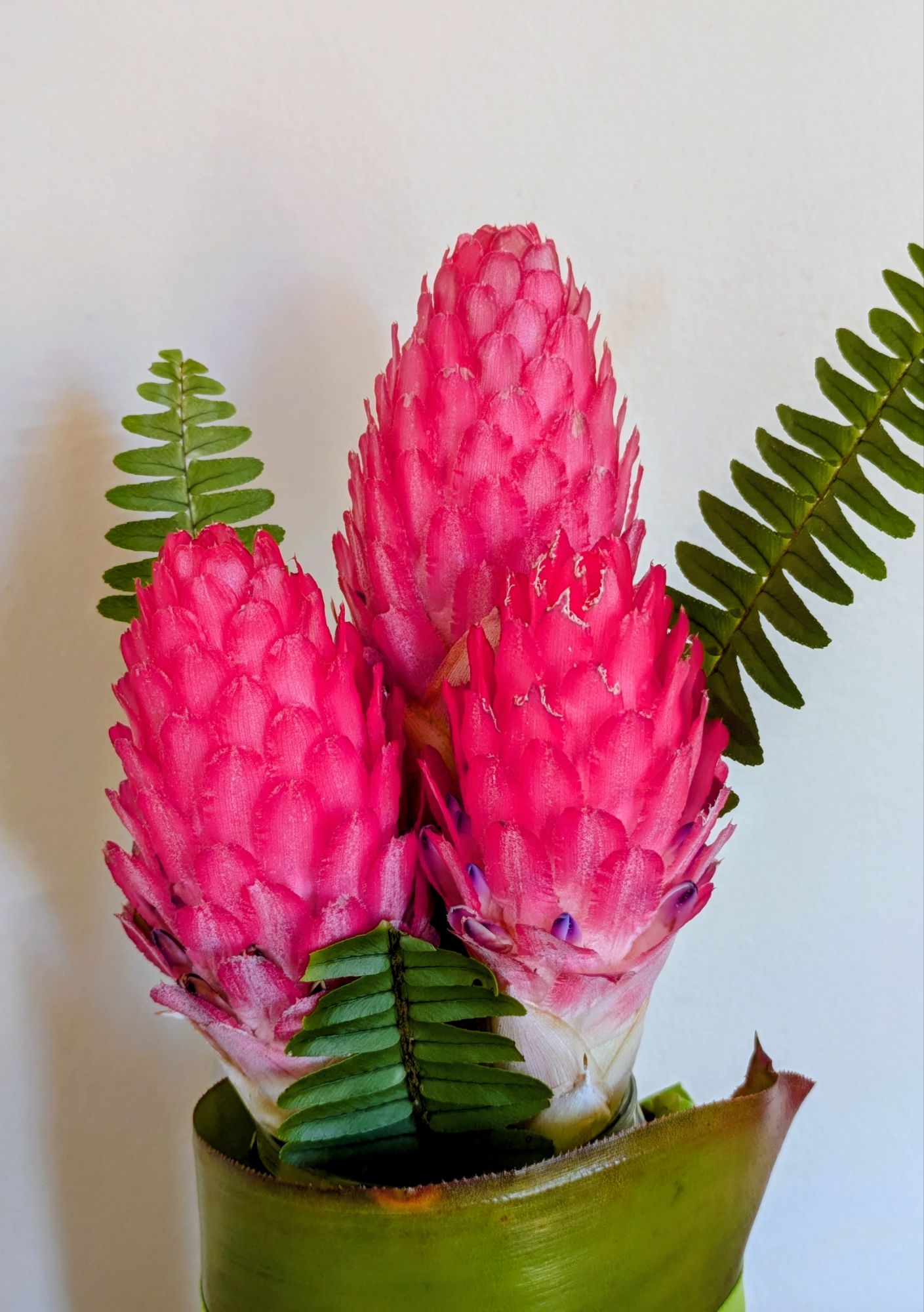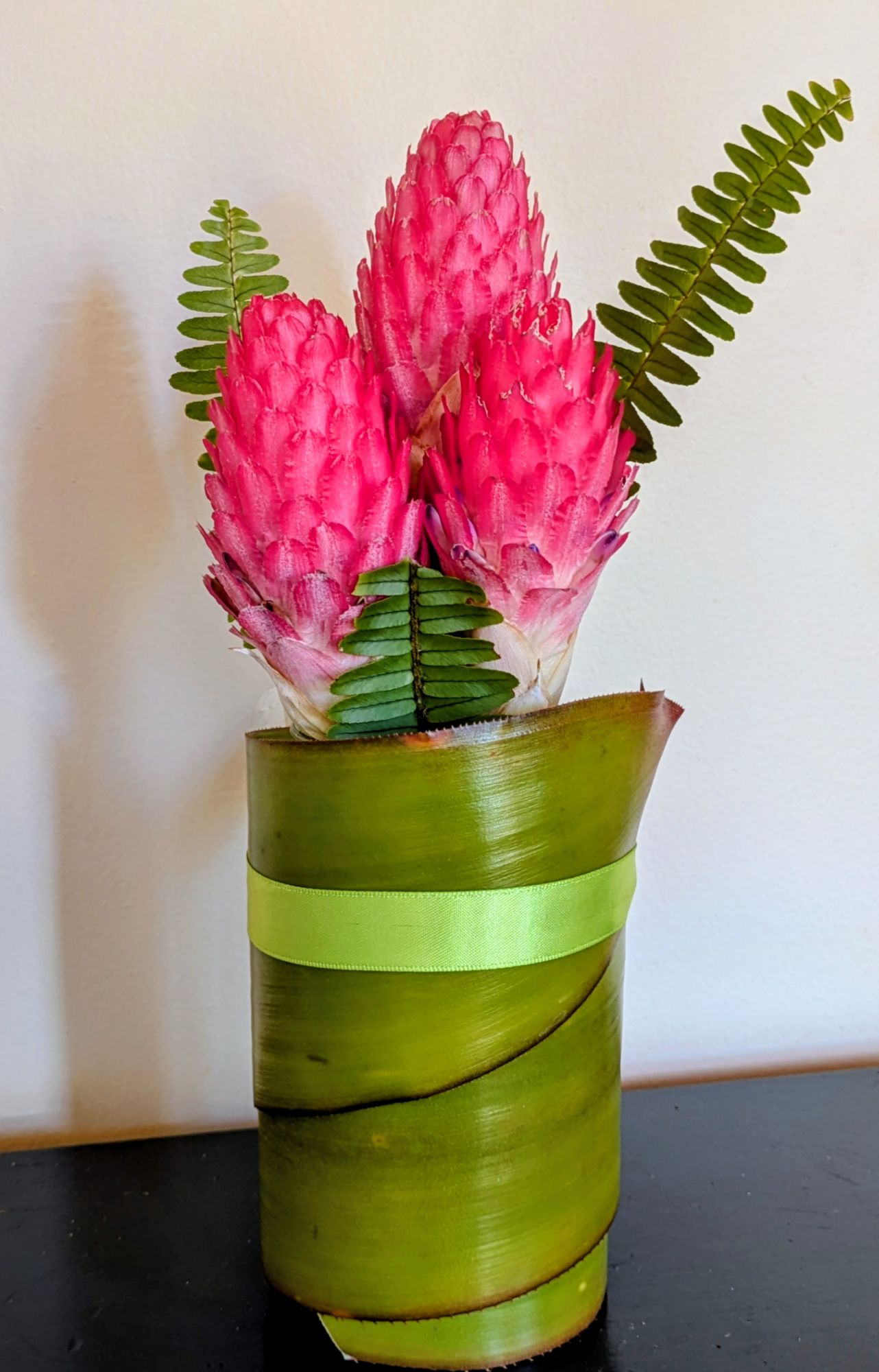 Today’s vase is intended to project some warm, tropical vibes back into the universe. So far, the only cold damage I have witnessed is, ironically, a Firebush, the foliage burned black. Fingers crossed that is all. But, I doubt it.