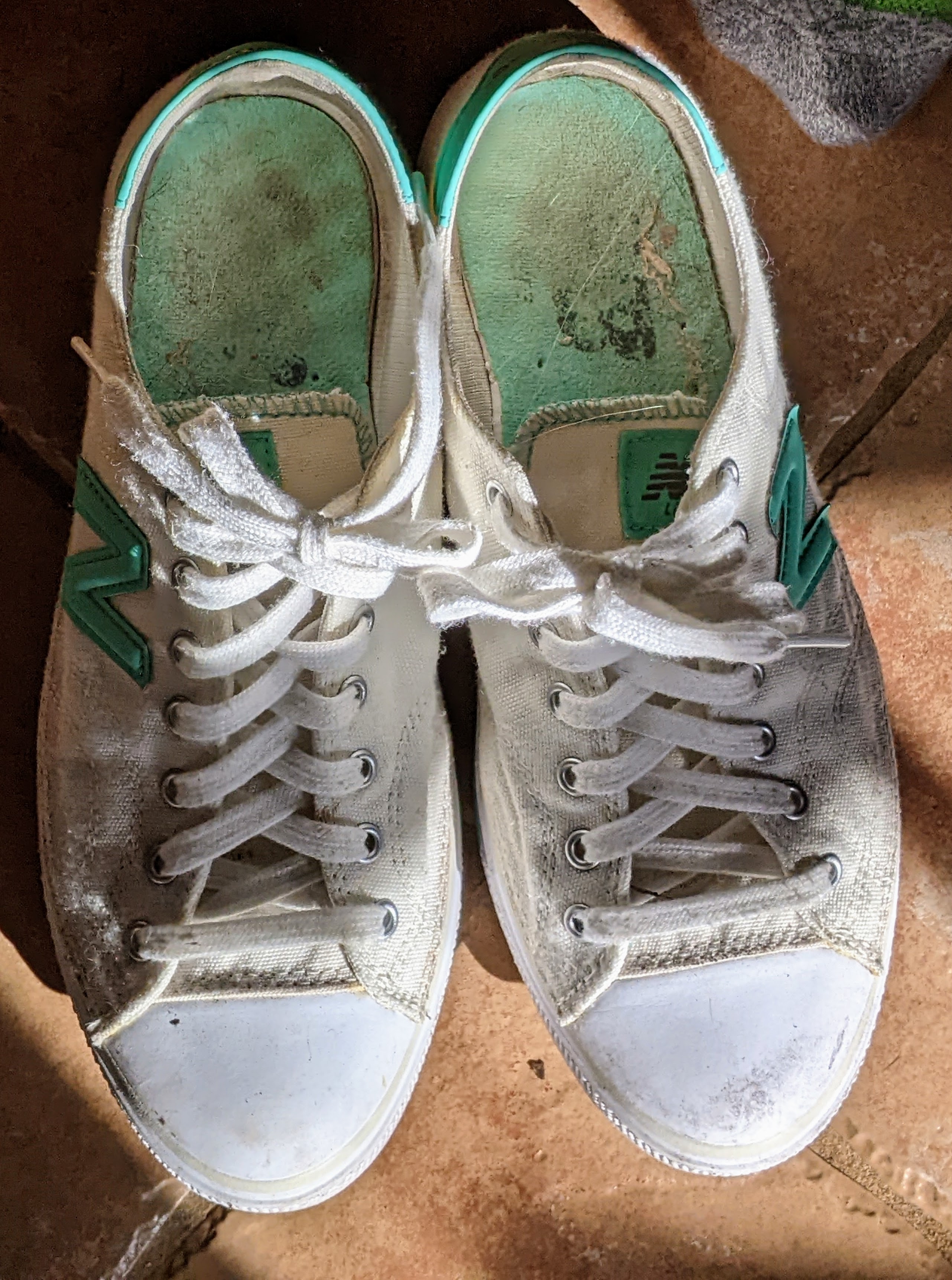 I’ll admit the shoes looked better in the dark corner of my closet. Maybe I saved them for gardening prior to discovering plastic Birkenstocks, the mysteries continue.