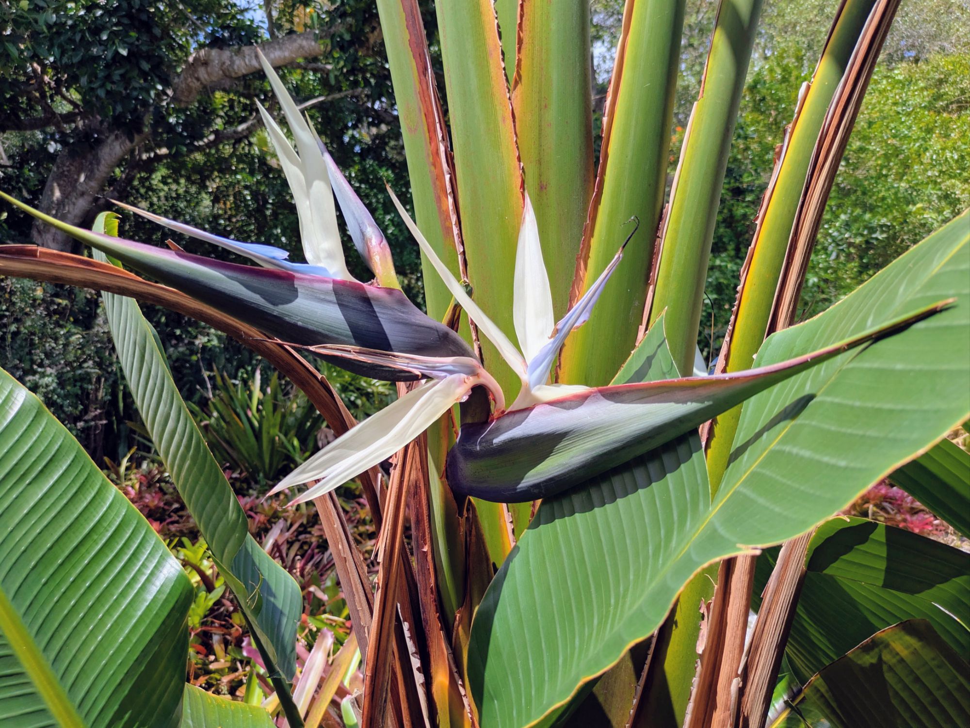 The White Bird of Paradise (Strelitzia nicolai) is making another appearance as it is adding on layers of color as it continues opening.