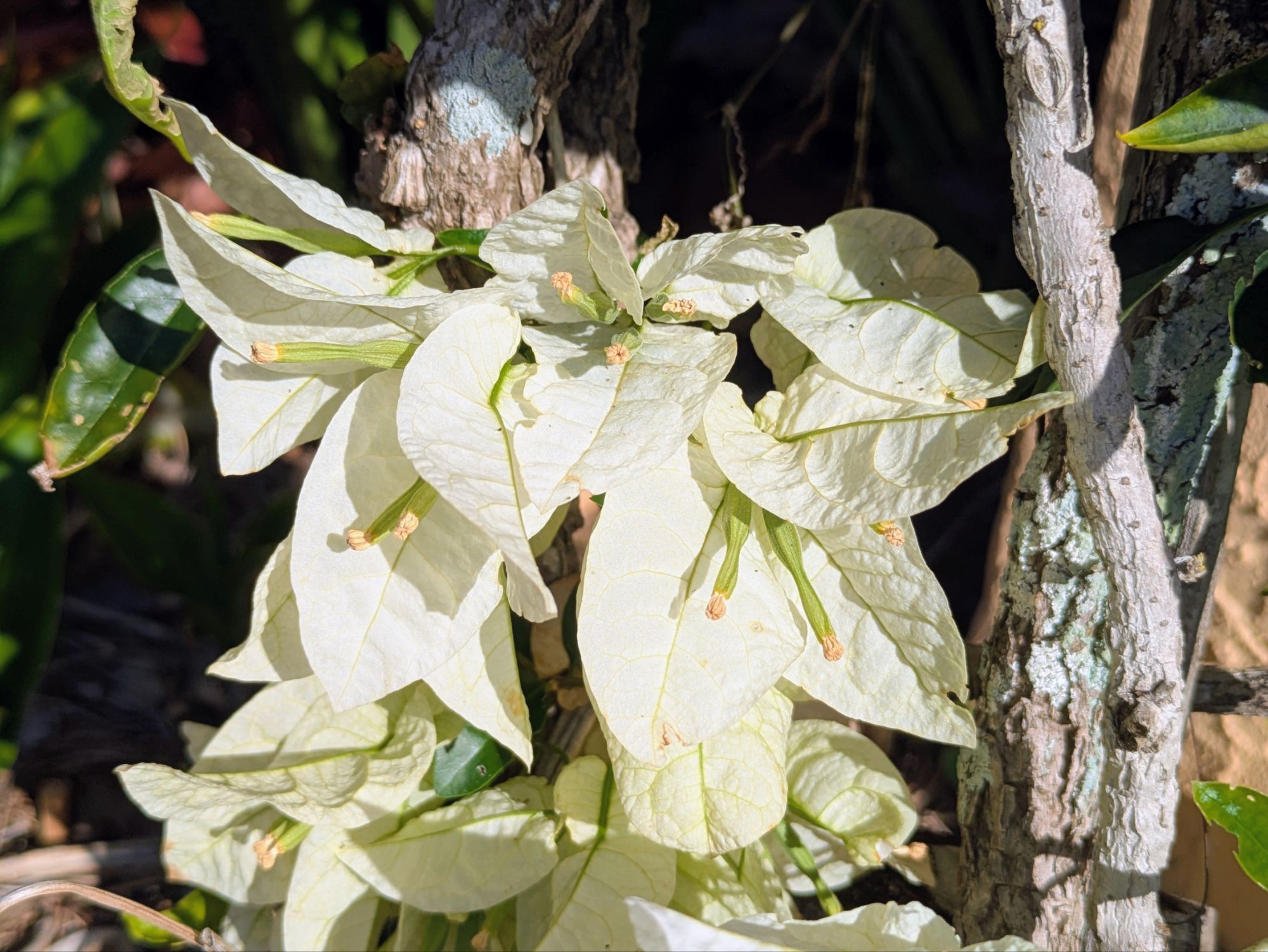 I also do like the white bougainvillea, which is very rare and not often seen around here. So I’m quite happy with my purple one in my greenhouse. The wind dries the soil out a lot here, so watering is necessary. It hasn’t rained in a long time either.