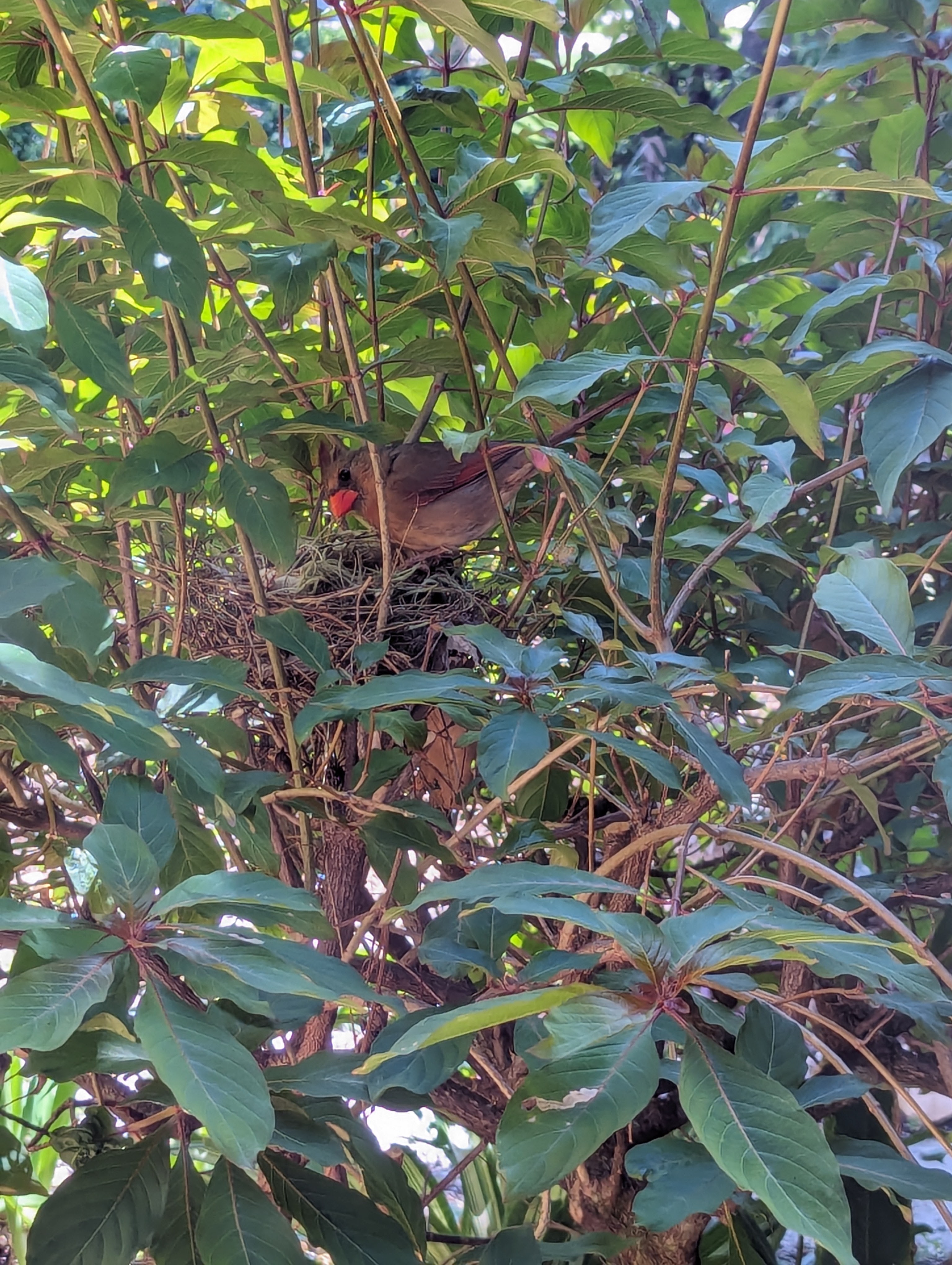 Again, the wind blew nearly every leaf off and took them along. Saving me hours of raking and bagging! New growth is already on the tips of the branches.