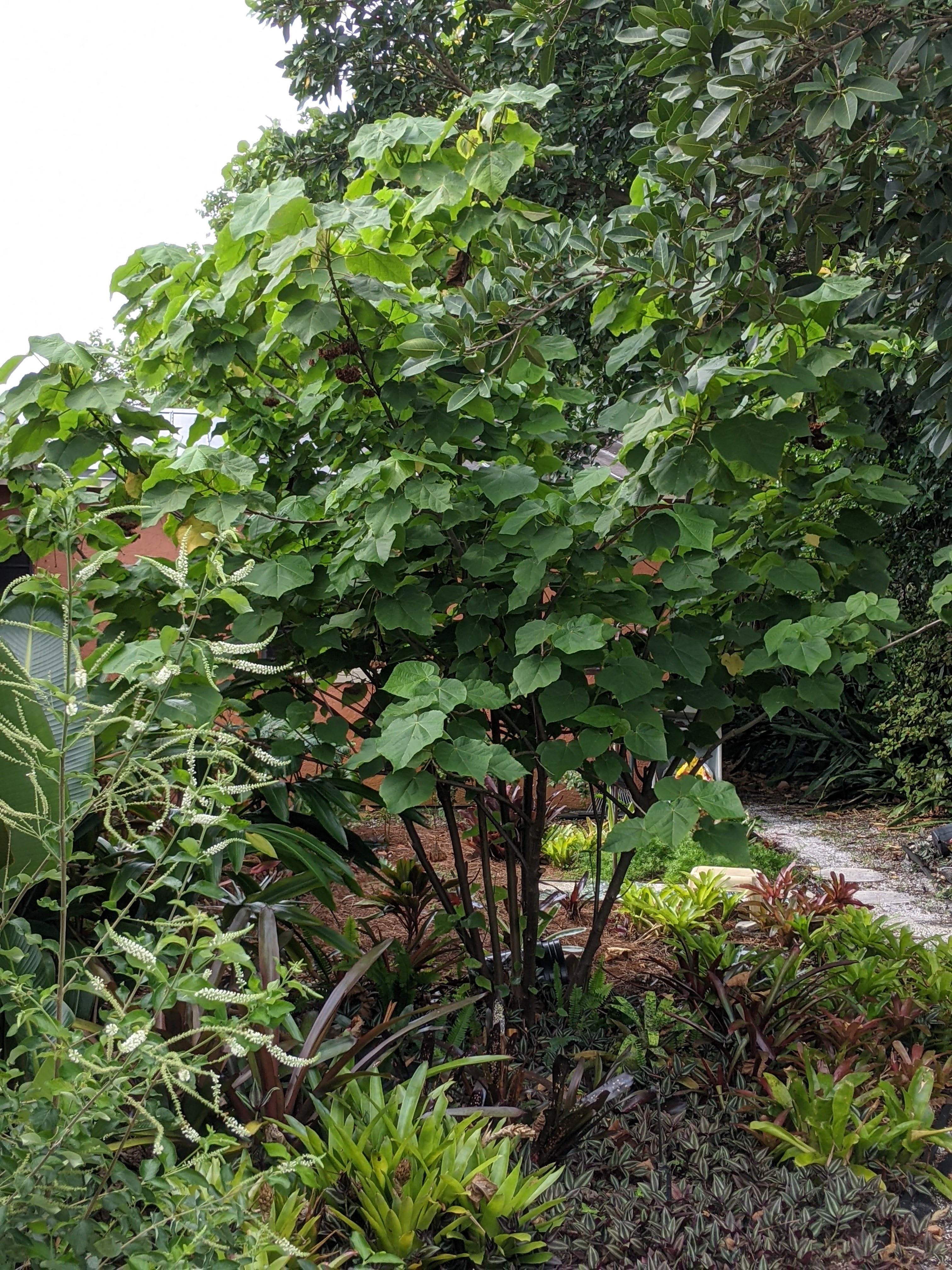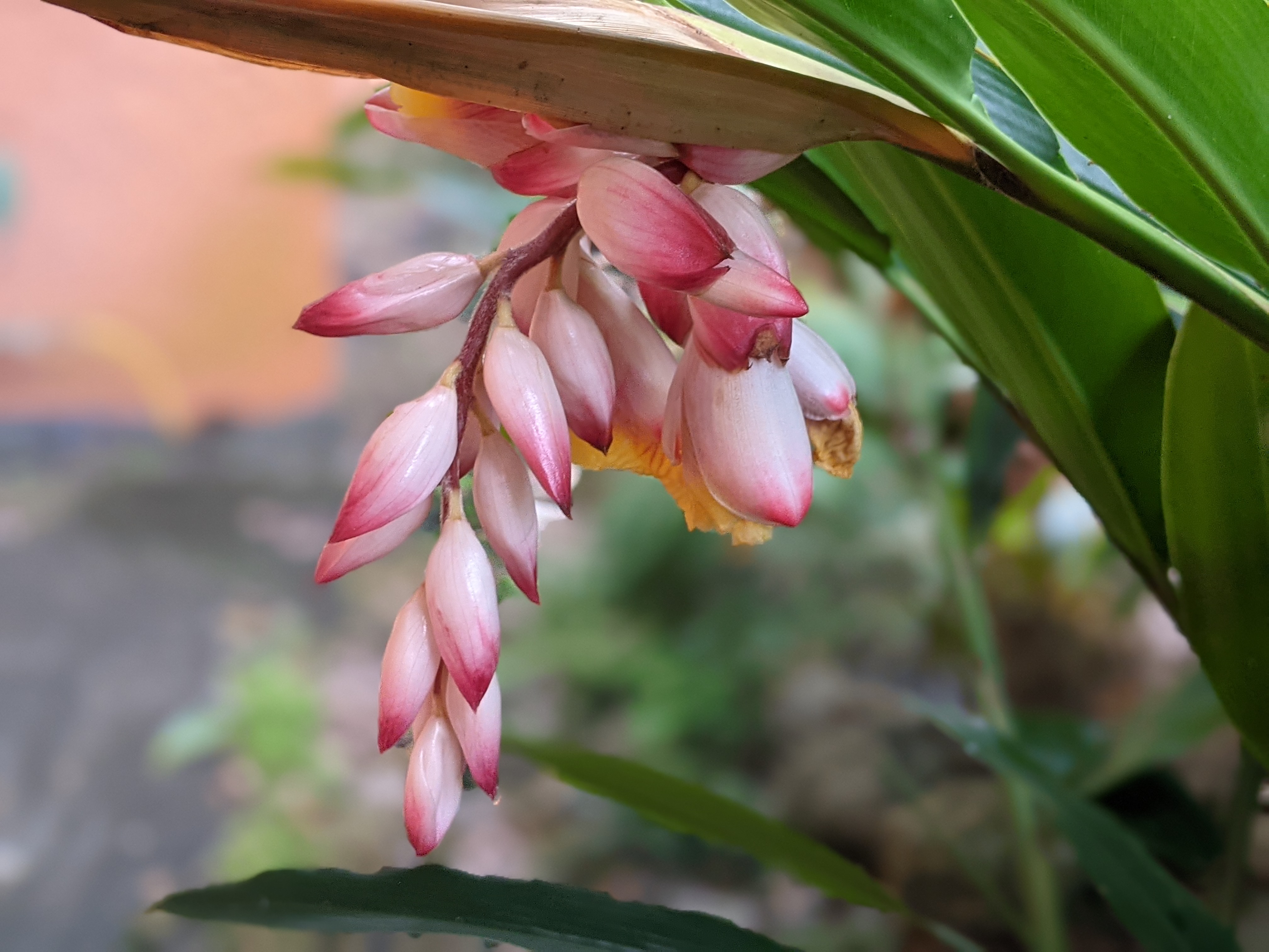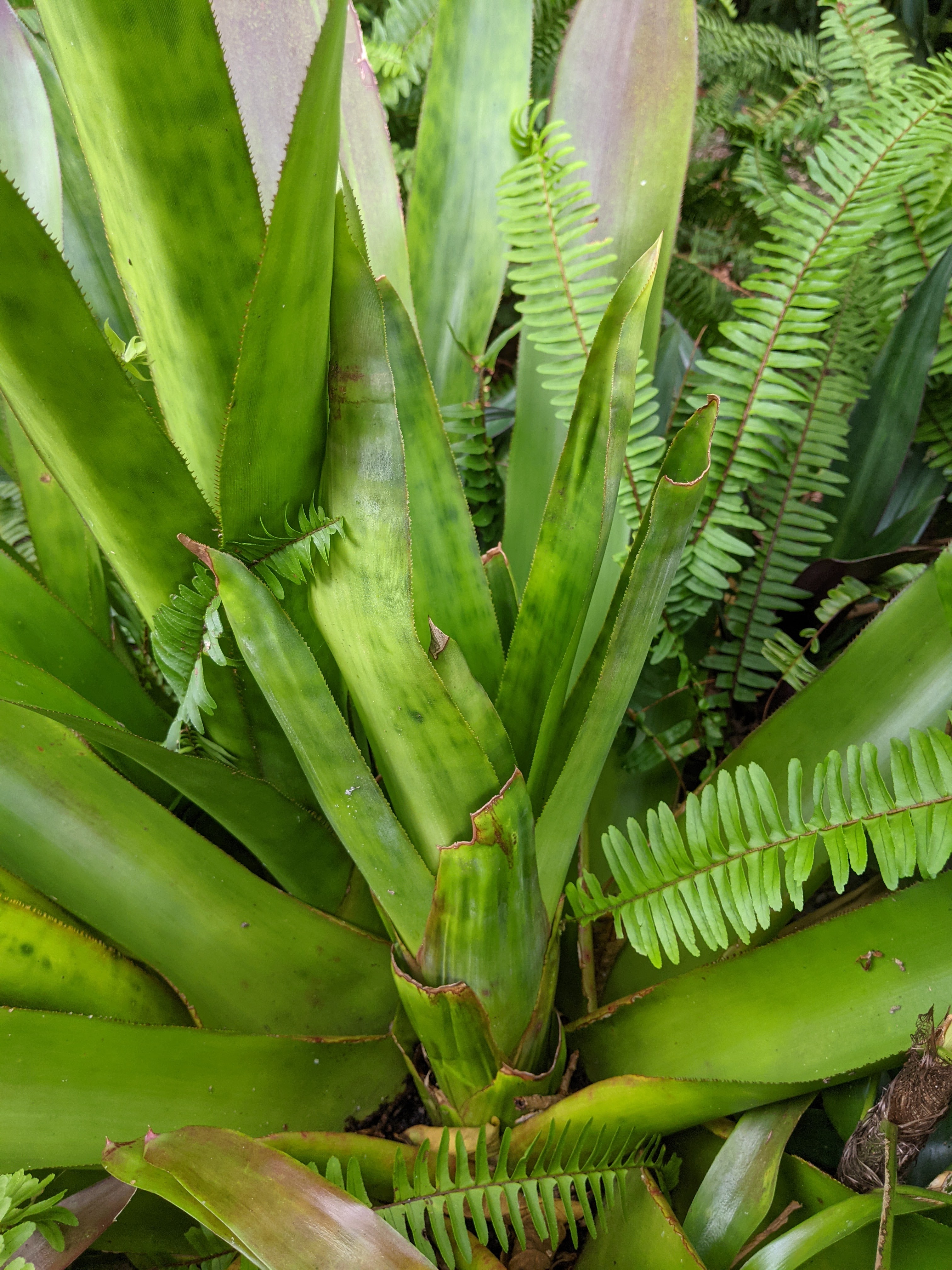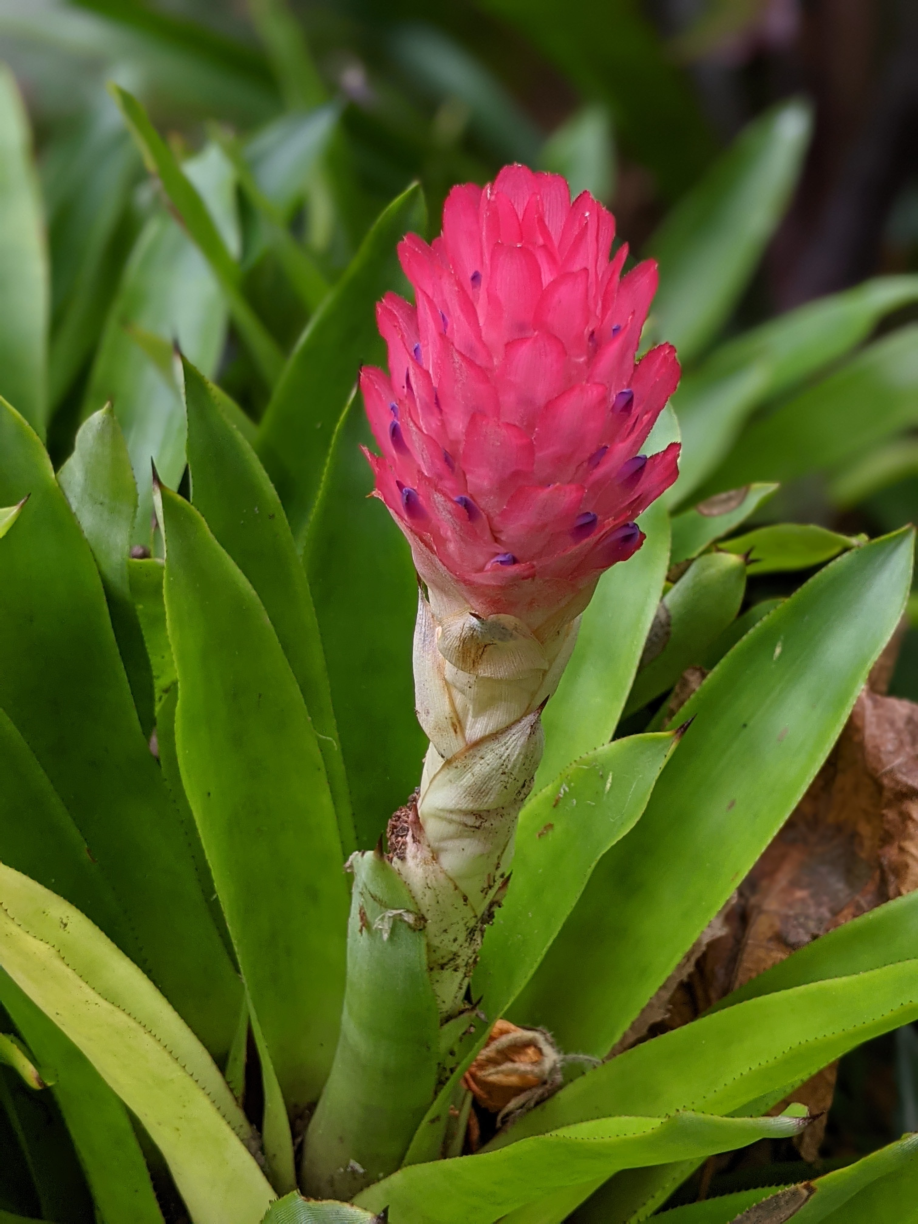 In the foreground, pink Globe Amaranth followed by Green Envy Zinnias; the blue spikes are Mystic Spires Salvia (these have been flowering since March 2021!, amazing); white flowers are ‘Miss Alice’ Bougainvillea; pink balls are Tropical Hydrangeas (Dombeya wallachii)