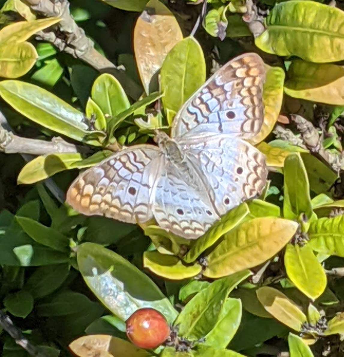 White Peacock on Ixora berry..