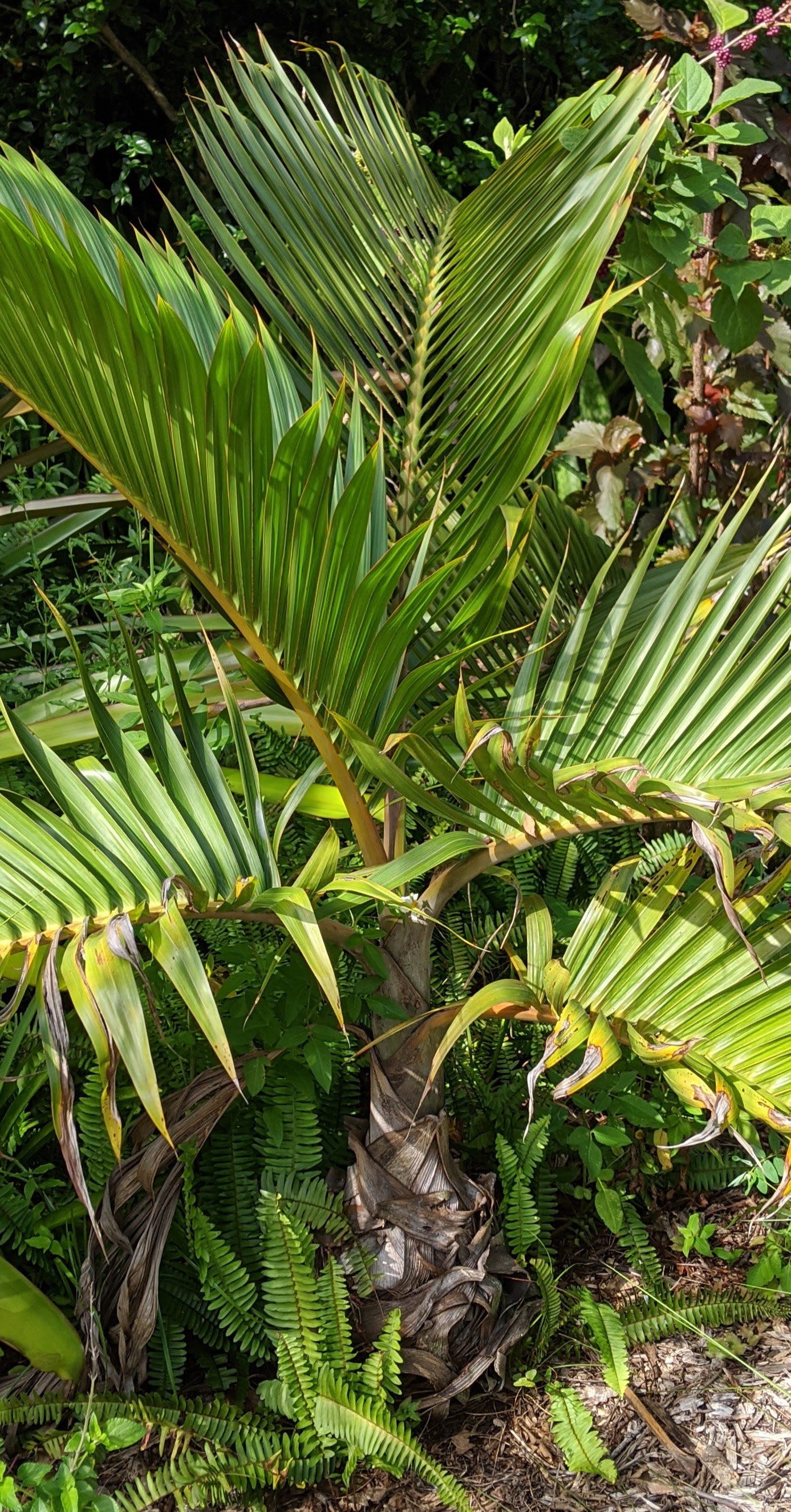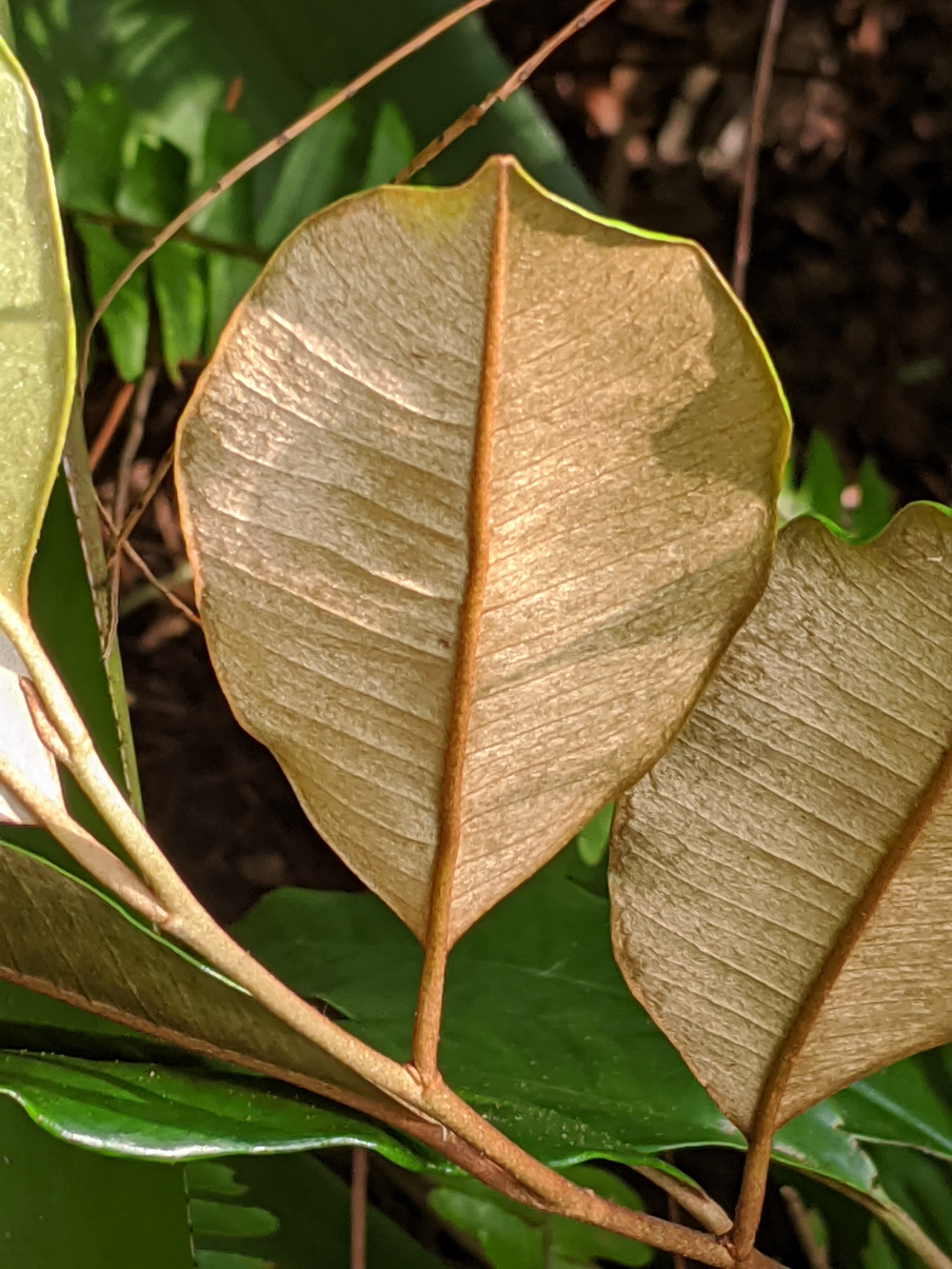 Sea Grapes seemingly grow everywhere in South Florida. Native to South Florida and the Caribbean, this tree will grow in sun to semi-shade, is very drought once established, grows on the Oceanfront, shrugging off salty winds and hurricane, and provides food for wildlife. They can be pruned into privacy screens or trained into multi-stem trees. The maintenance is a Sisyphean task if you dream of a rectangular privacy screen. Sea Grape is evergreen and it’s big, shiny green leaves with pinky red veins provide year-round tropical ambiance.