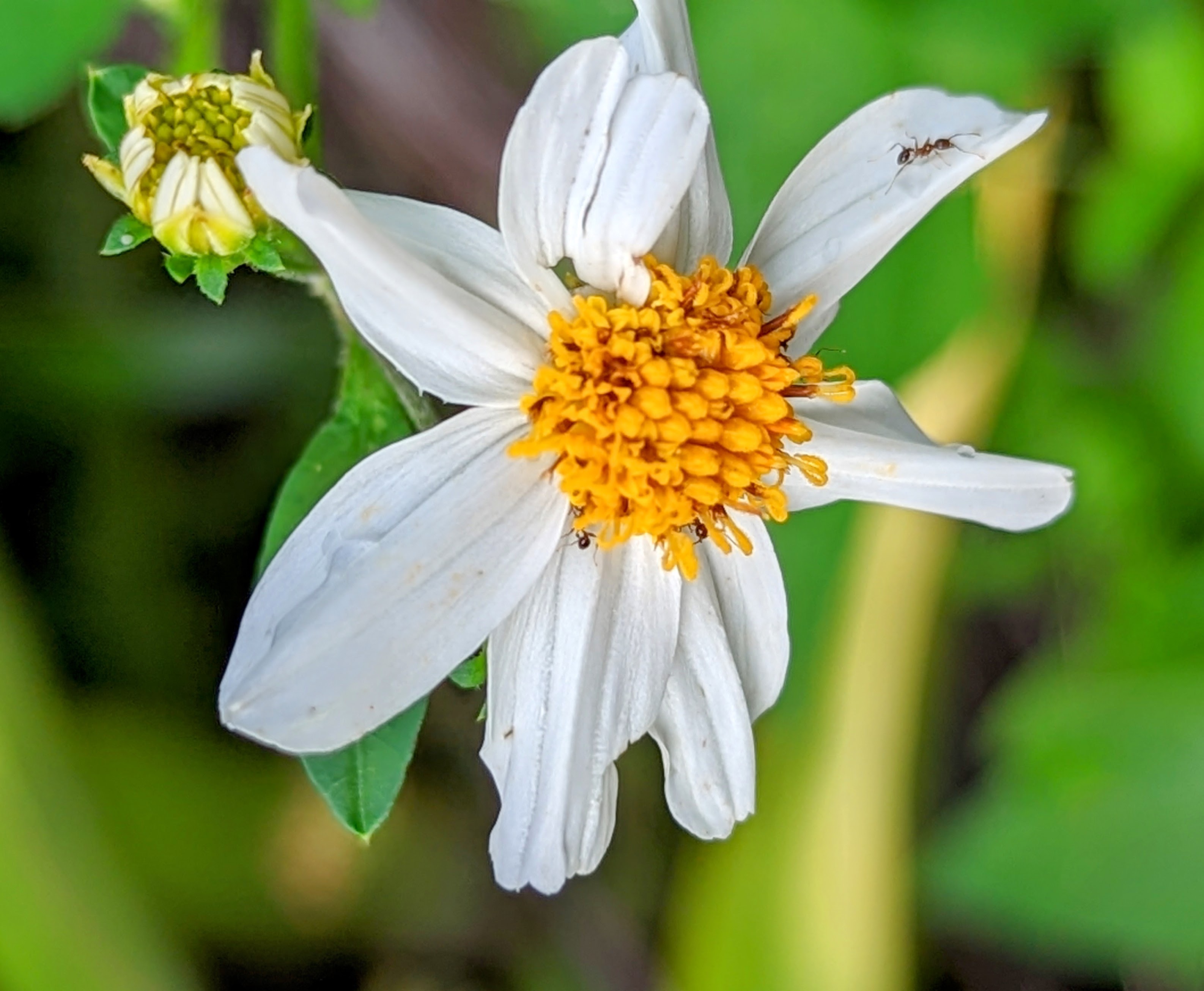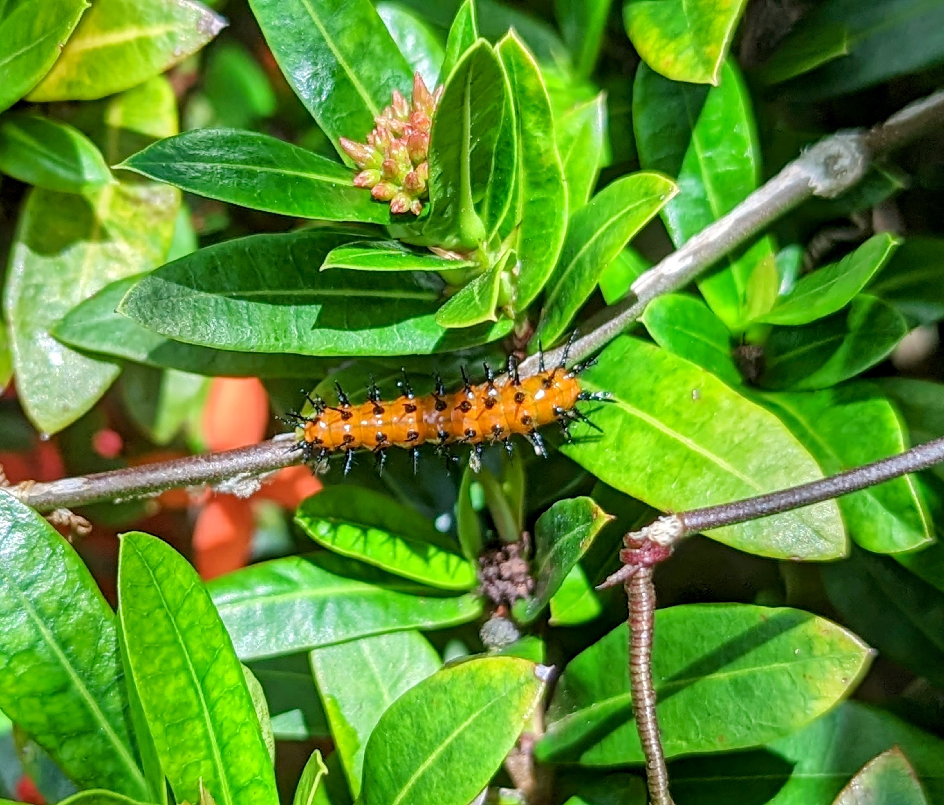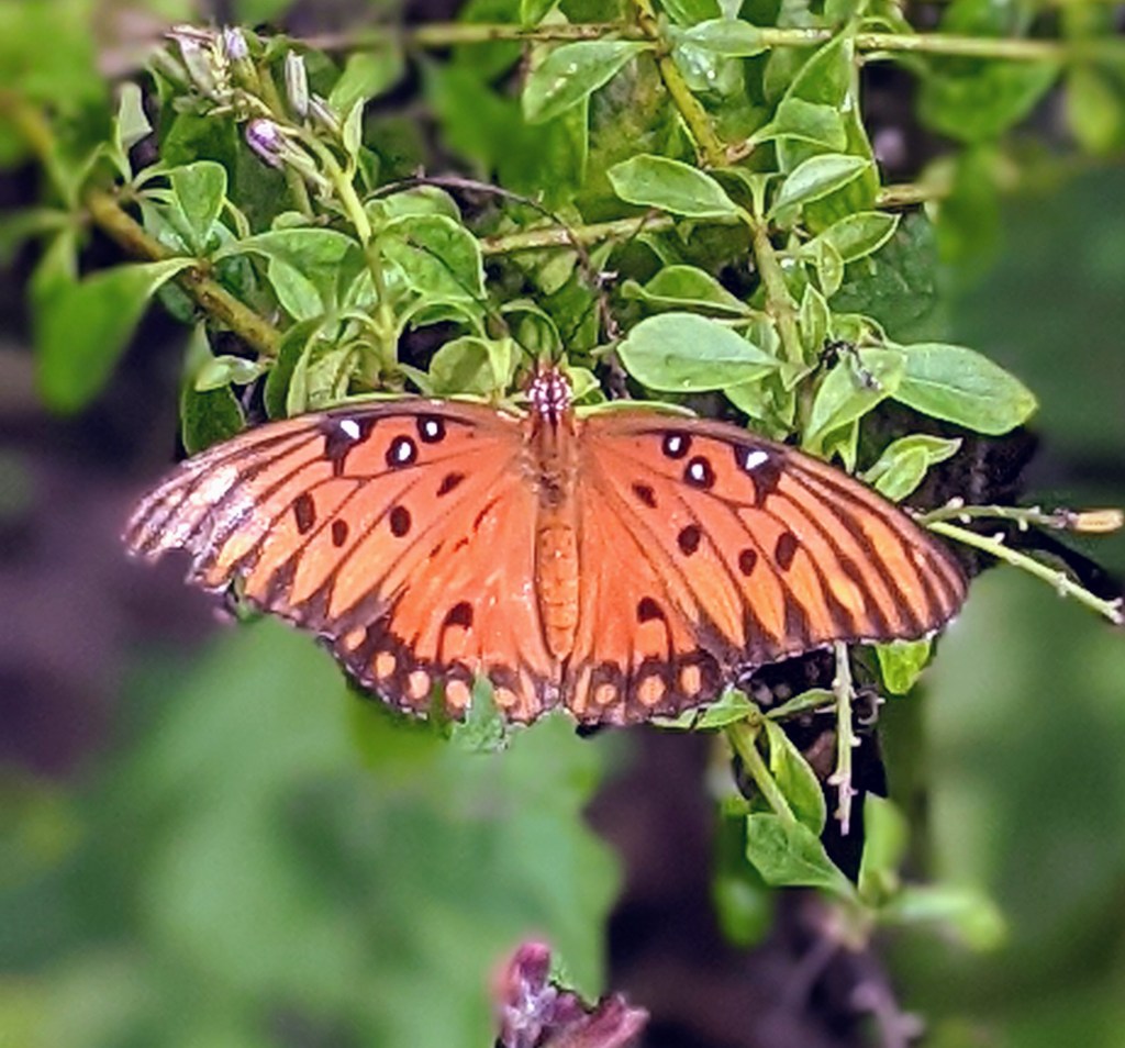 The curated weeds are still growing in and host three types of butterflies. I have only seen one type, White Peacocks, but there are usually 4 or 5 flying around the TTFF. A closer view.