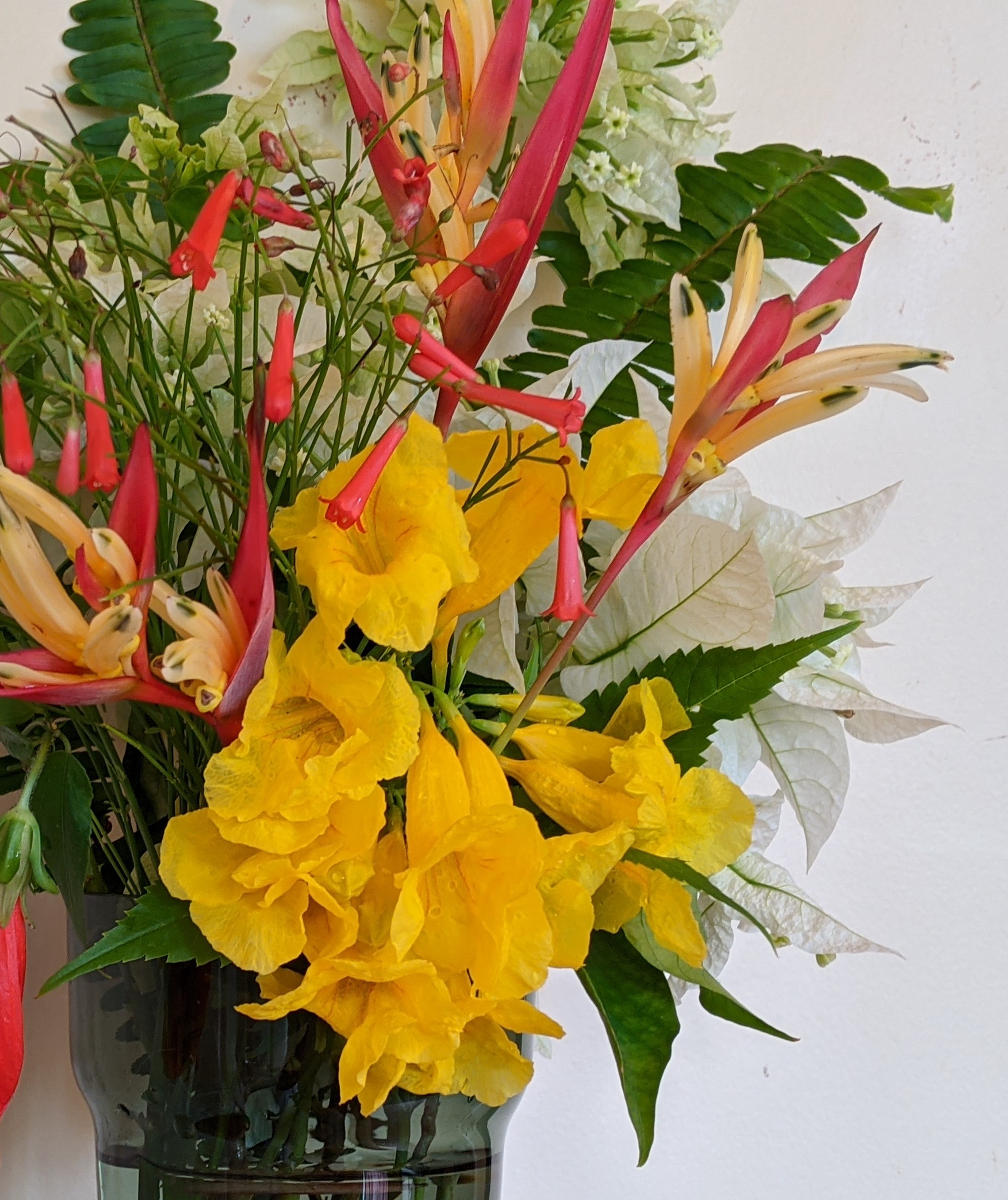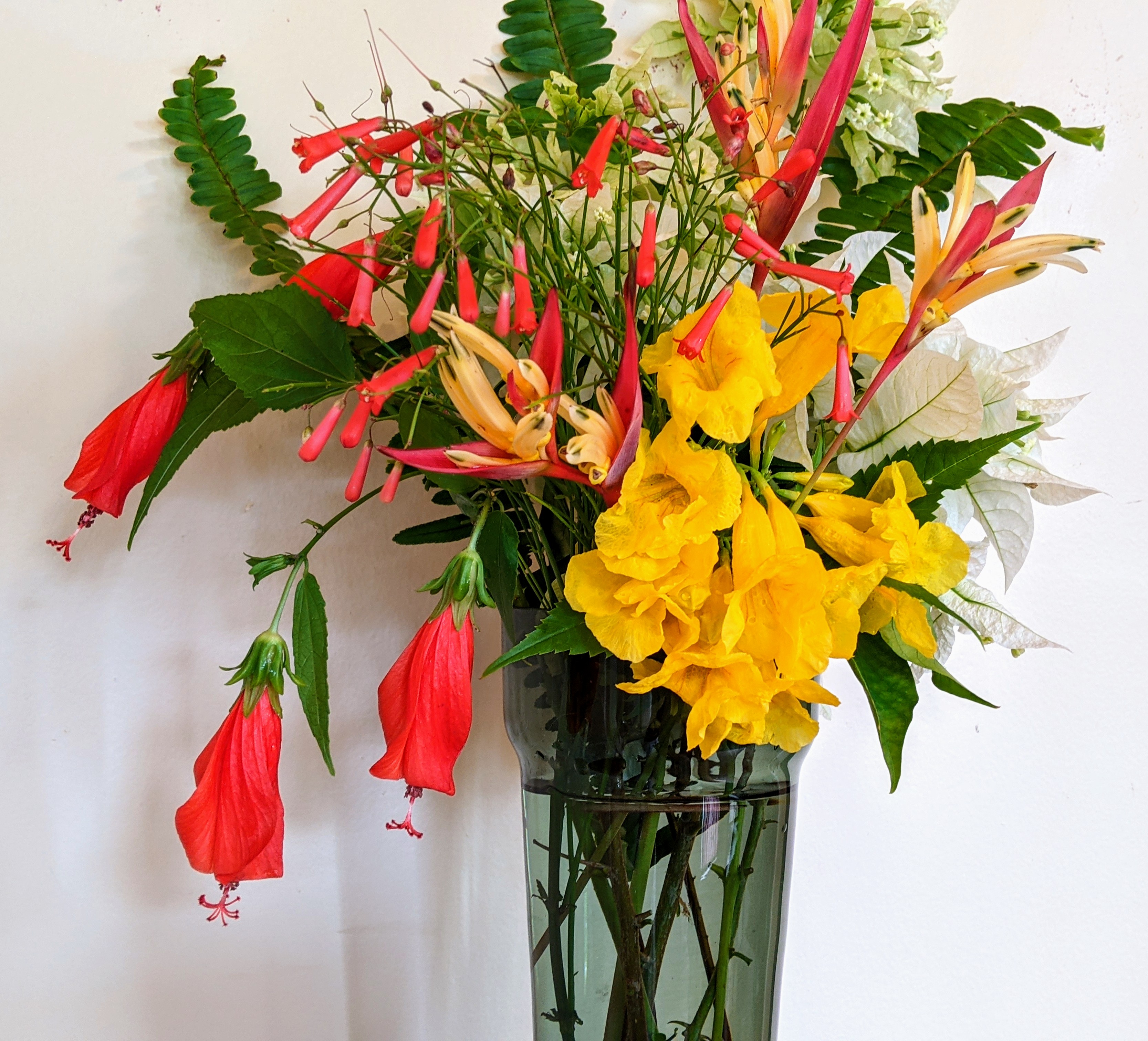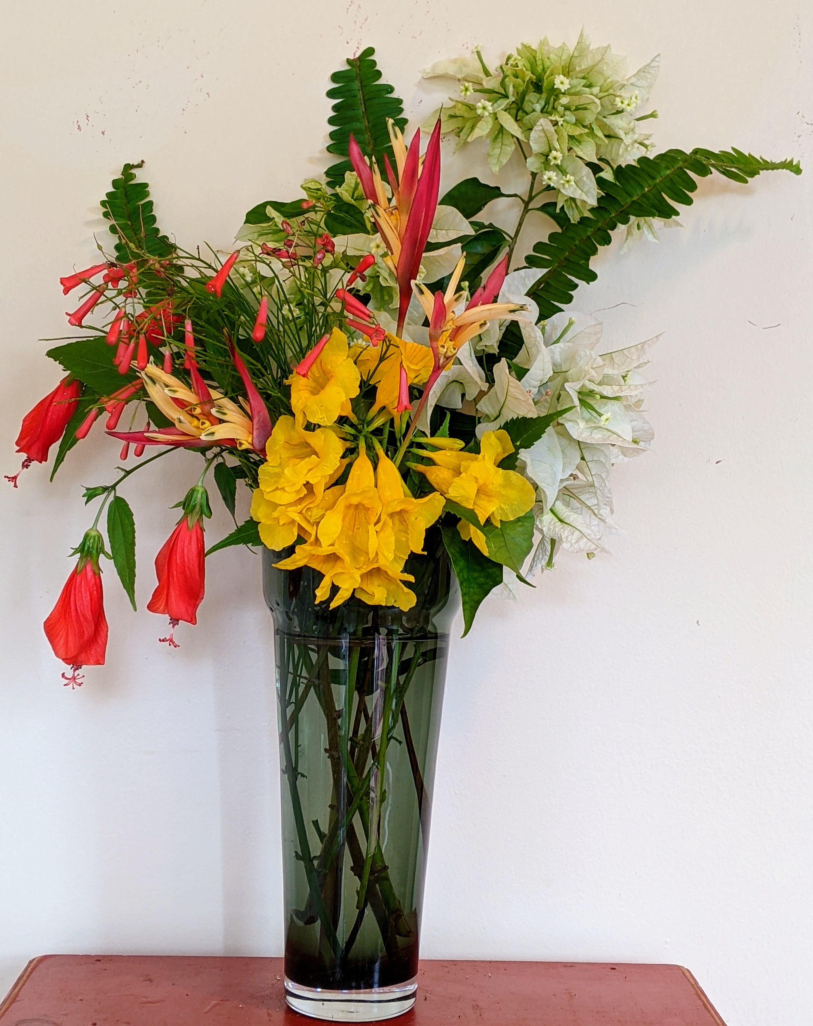 Maybe I should say Hurricane Post. It is inevitable when a hurricane hits Florida I hear from a lot of people who are wondering if we are okay. Which is great, I am glad people think of me. This particular hurricane, Helene, hit the opposite coast of Florida with devastating results and is still continuing to wreak havoc two days later. In my garden, about 8 dried palm fronds came down. The storm passed about 2 or 300 miles to our west, the wind field was huge and we were barely on the edge of it. There was a fairly consistent 25 mph wind Thursday and Friday with a few downpours from the outer bands of the storm, but that was about it. The garden is intact and well watered.