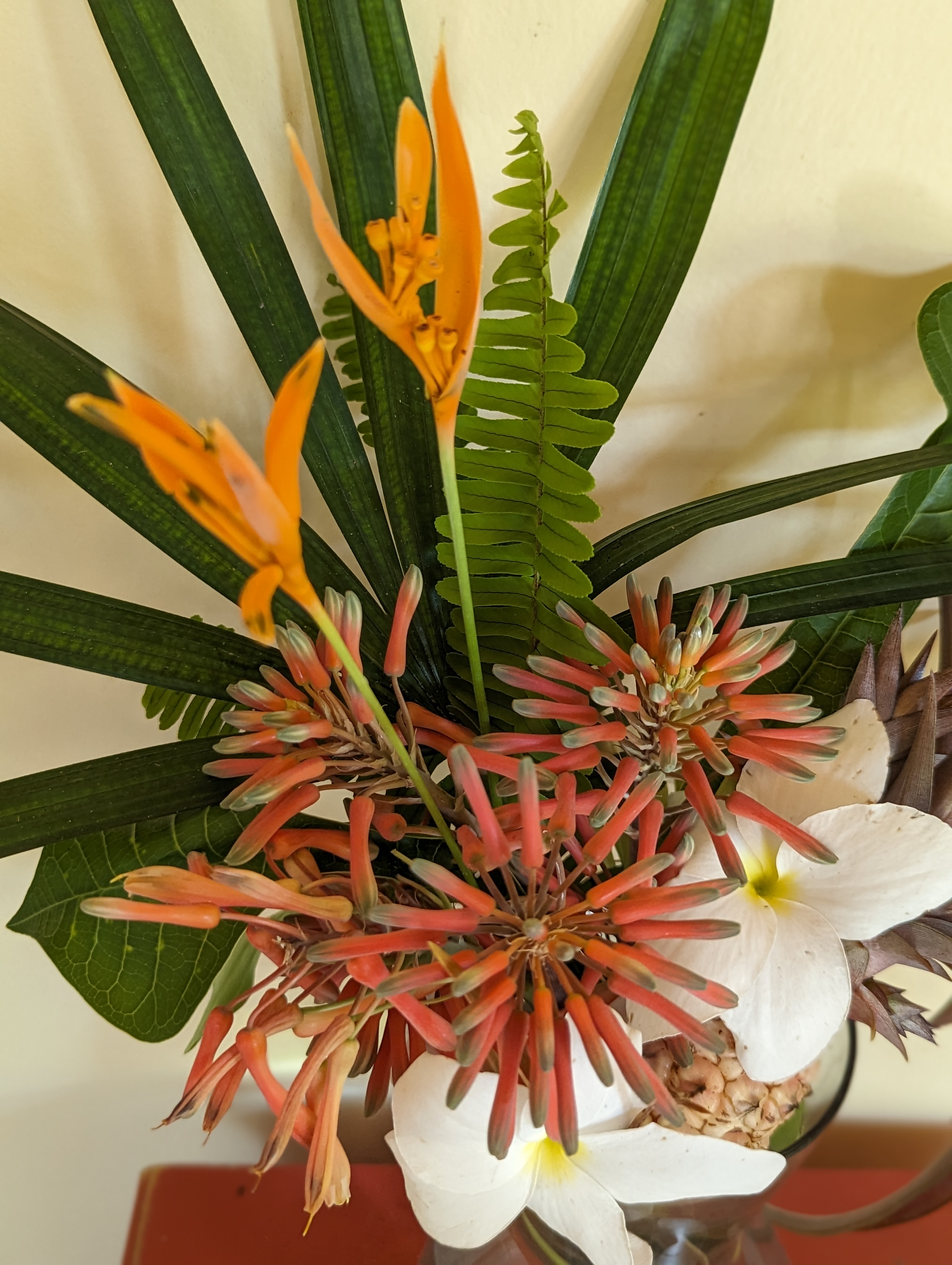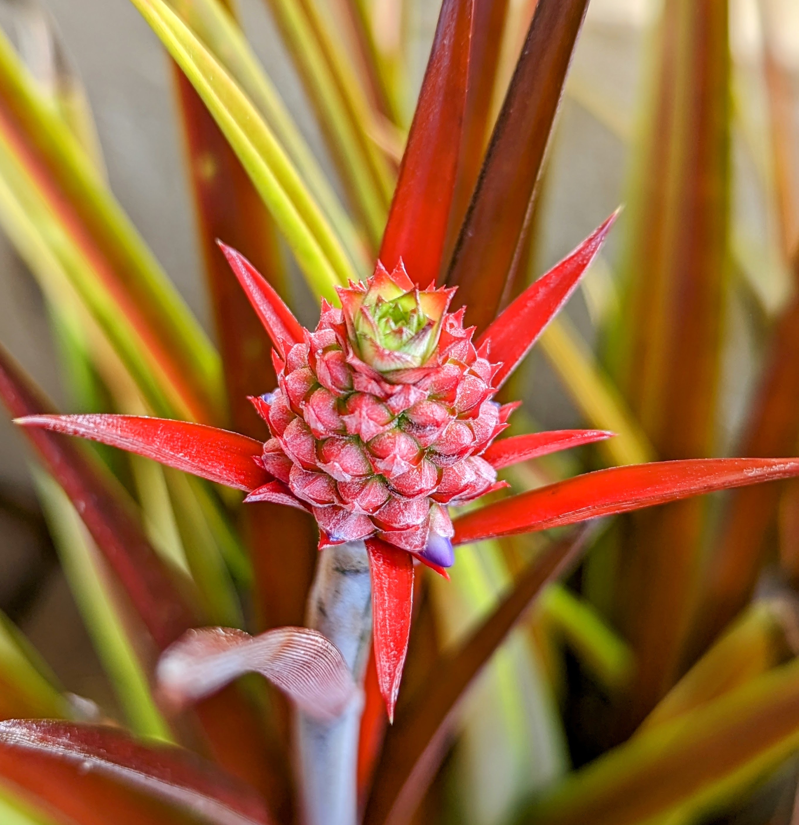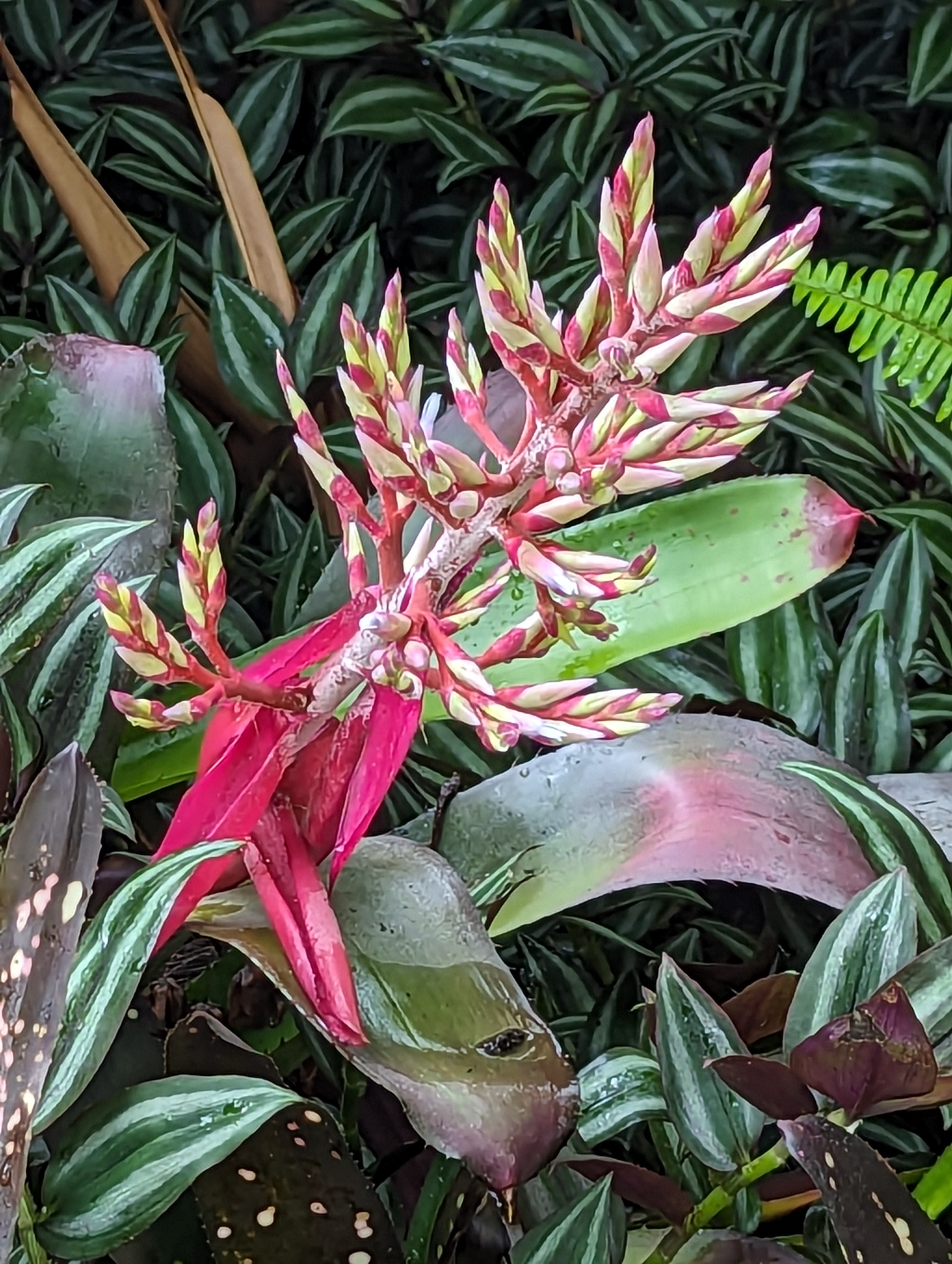Second, another mad bromeliad flower. This is from Aechmea ‘burgundy’. They do not flower often, but it is an interesting bloom.