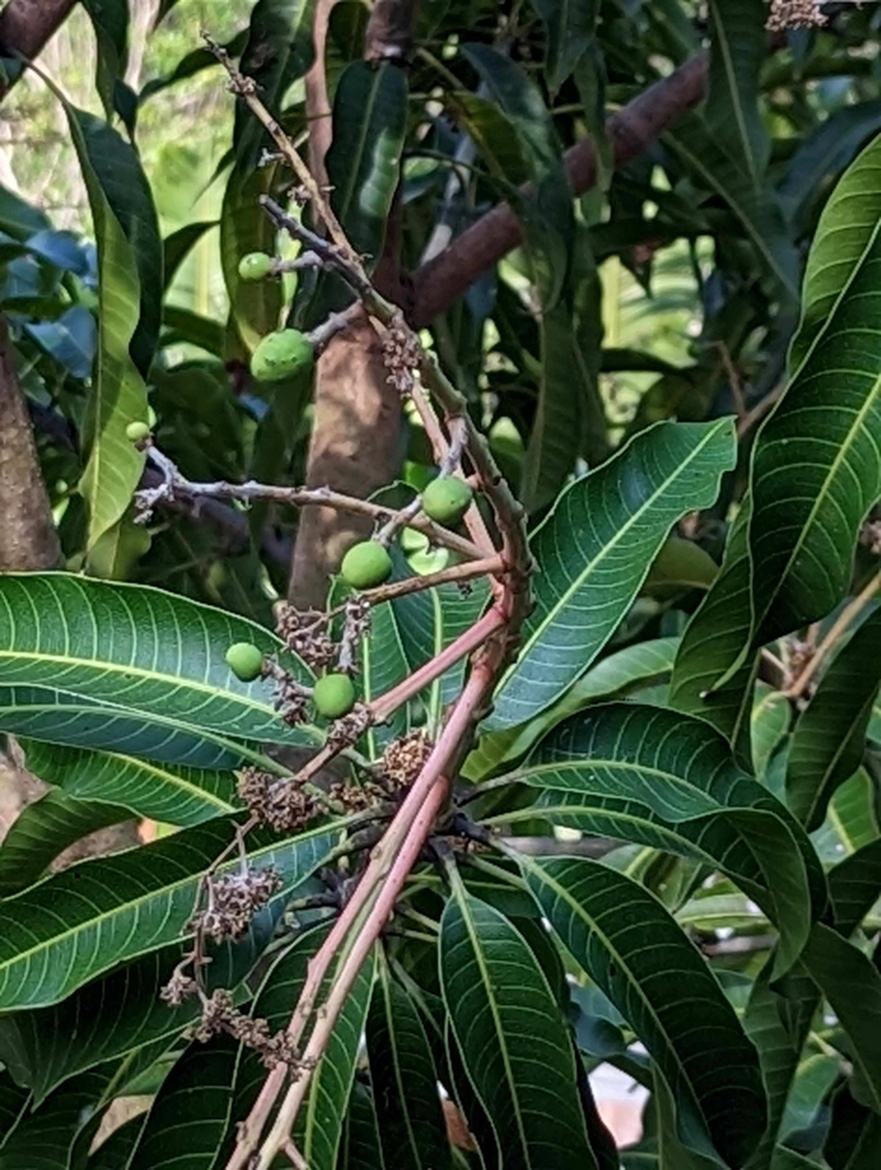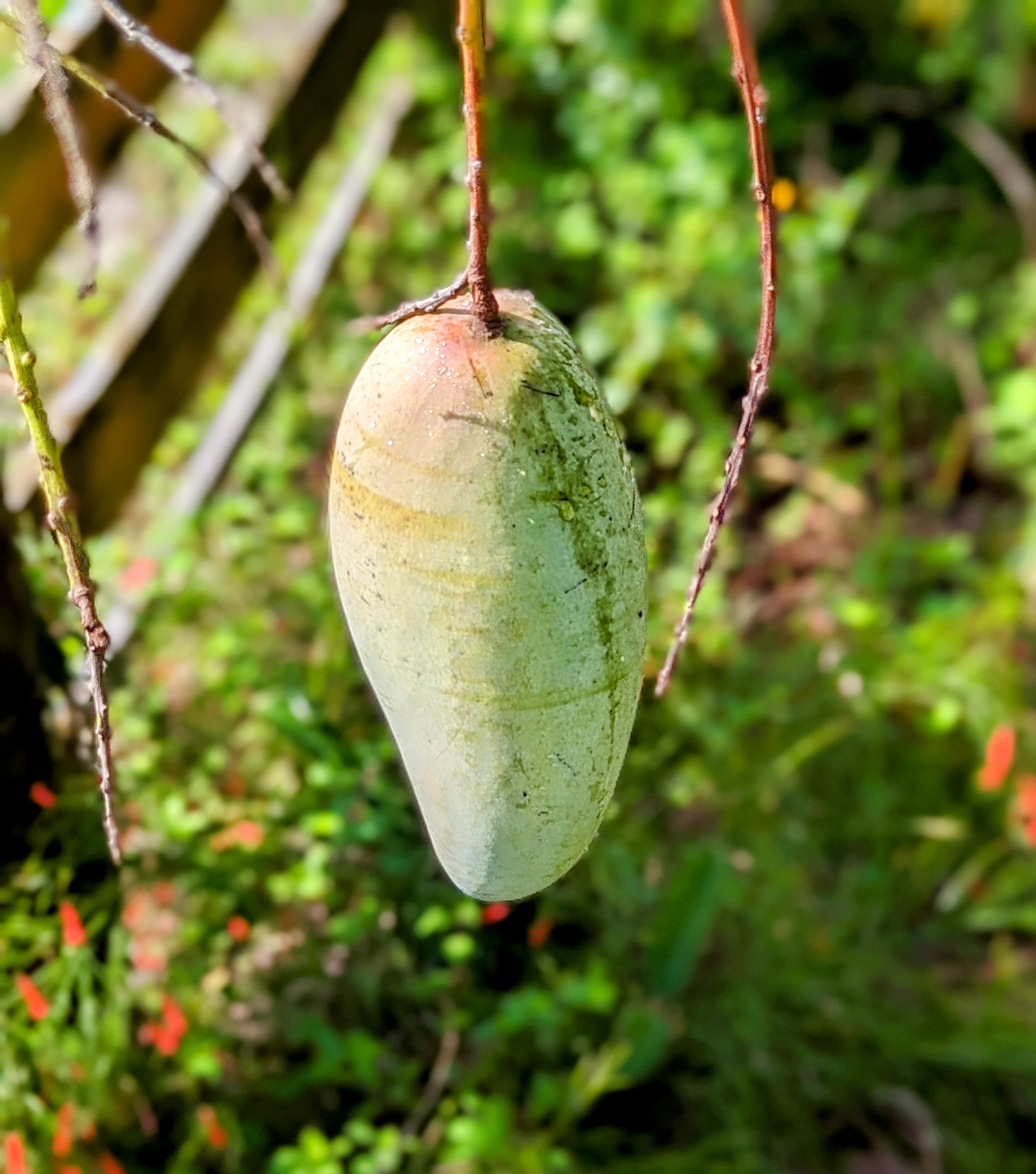 More fruit in the garden. The Thai dessert mangoes are coming along.
