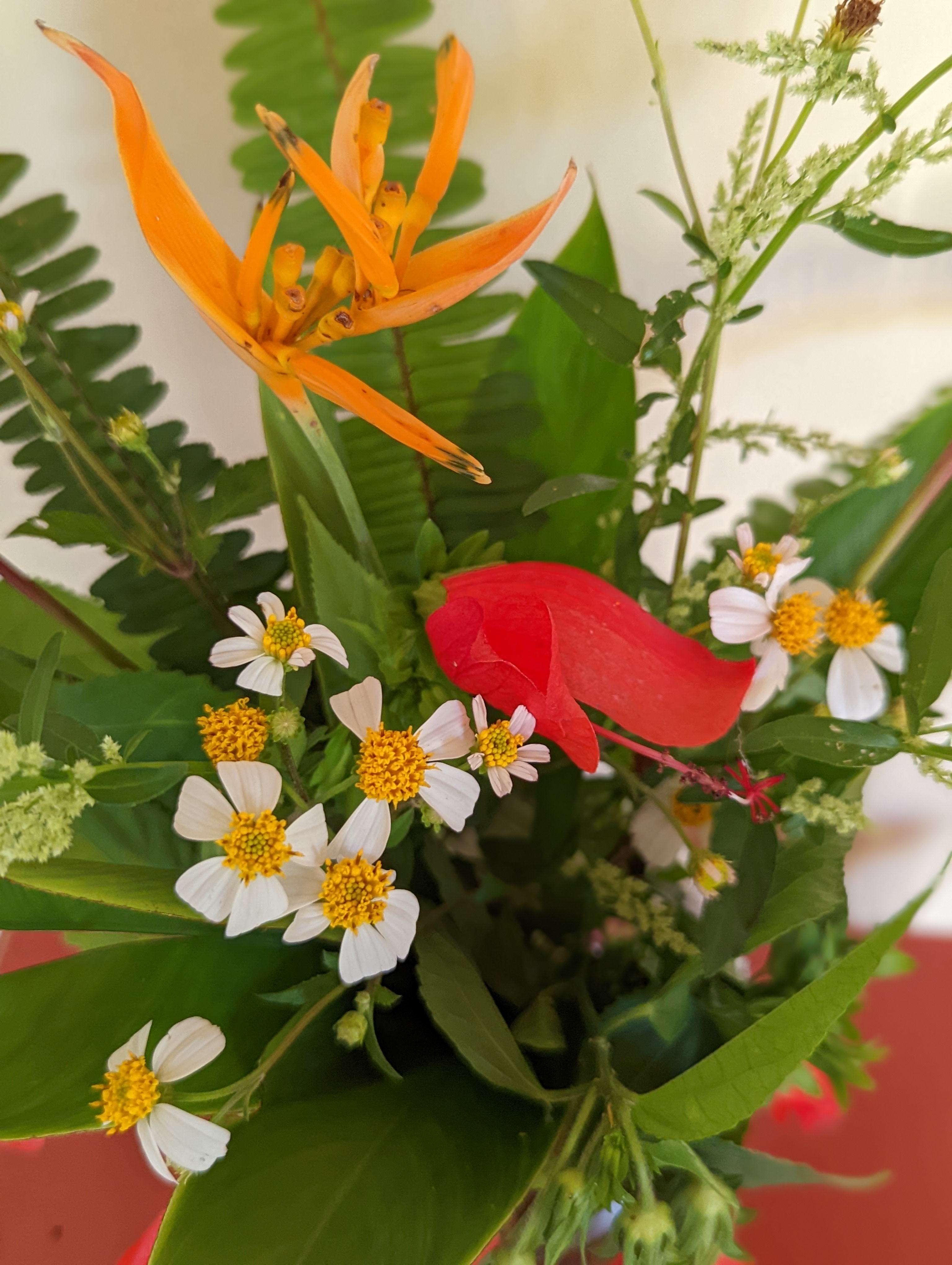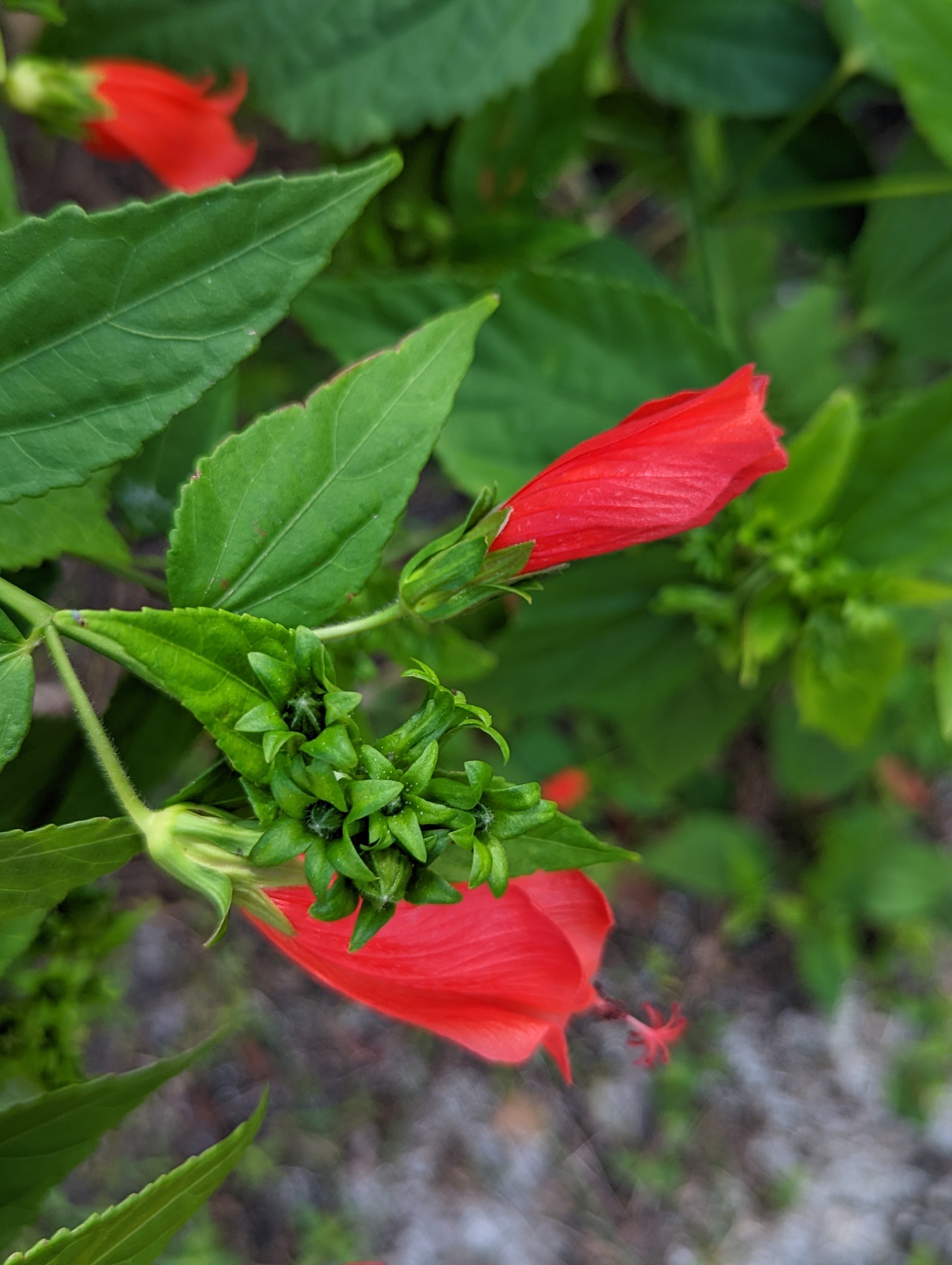 Tropical Red Salvia (Salvia coccinea) is showing up in shades of Coral this week. White daisies are Bidens alba.