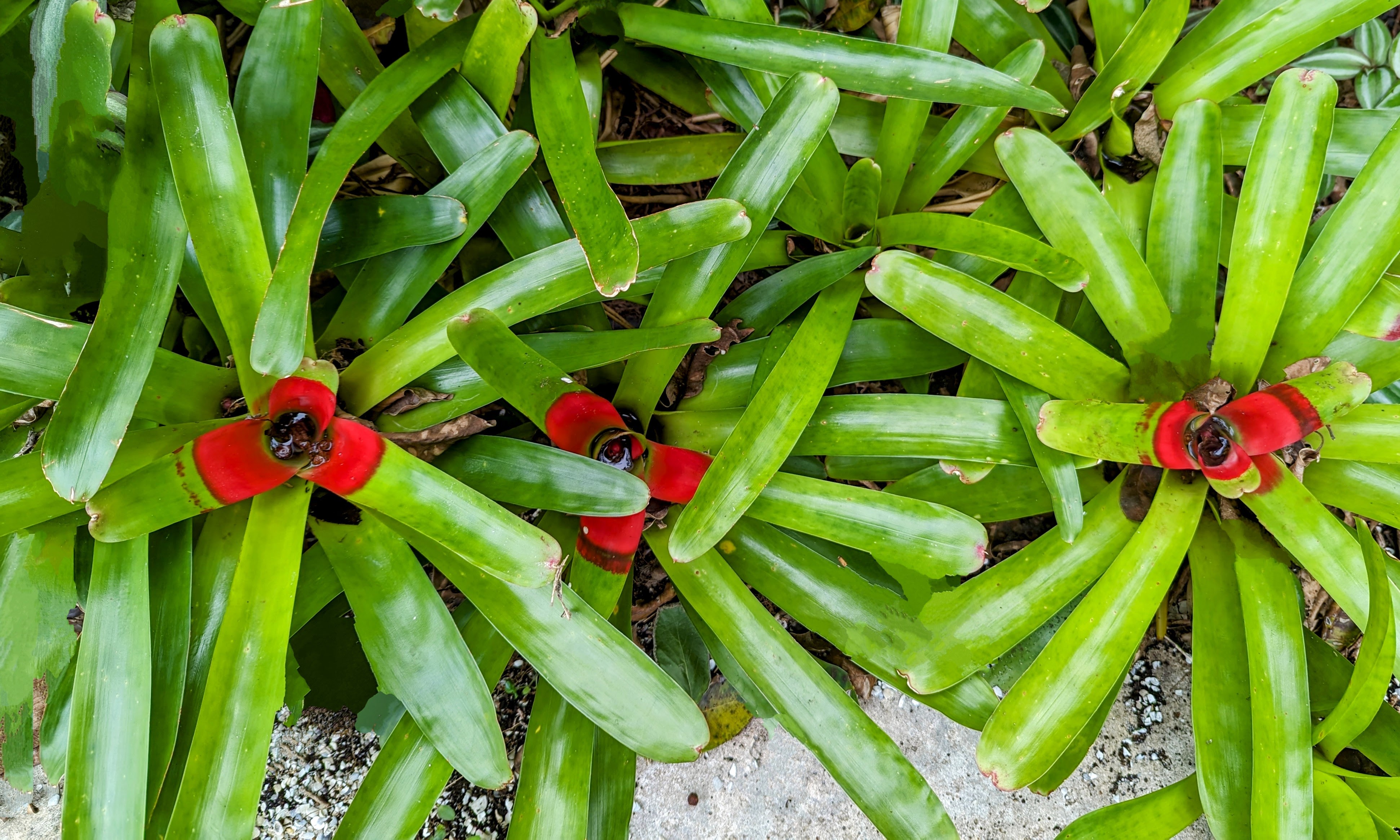 Here’s a mad flower from Bromeliadland. This is a Quesnelia testudo. I am not sure of the common name. These do well in my garden and are reliable winter color.