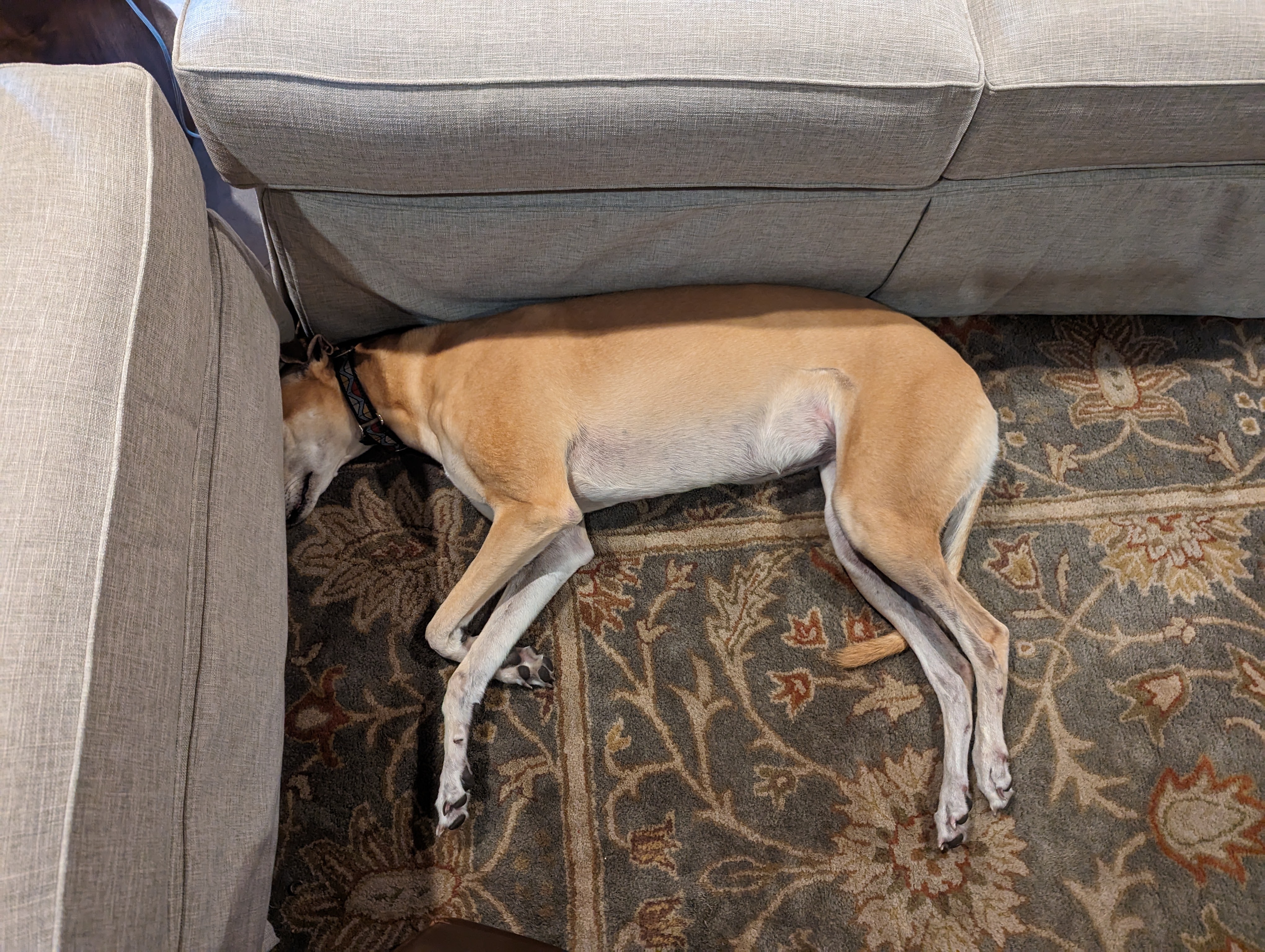 I think Fiona had the right idea about how to deal with the weather. On the other hand – the foolish human went out and snapped a few pictures of new colors and textures in the garden she is enjoying. The underside of the sofa can wait until the storm gets here.