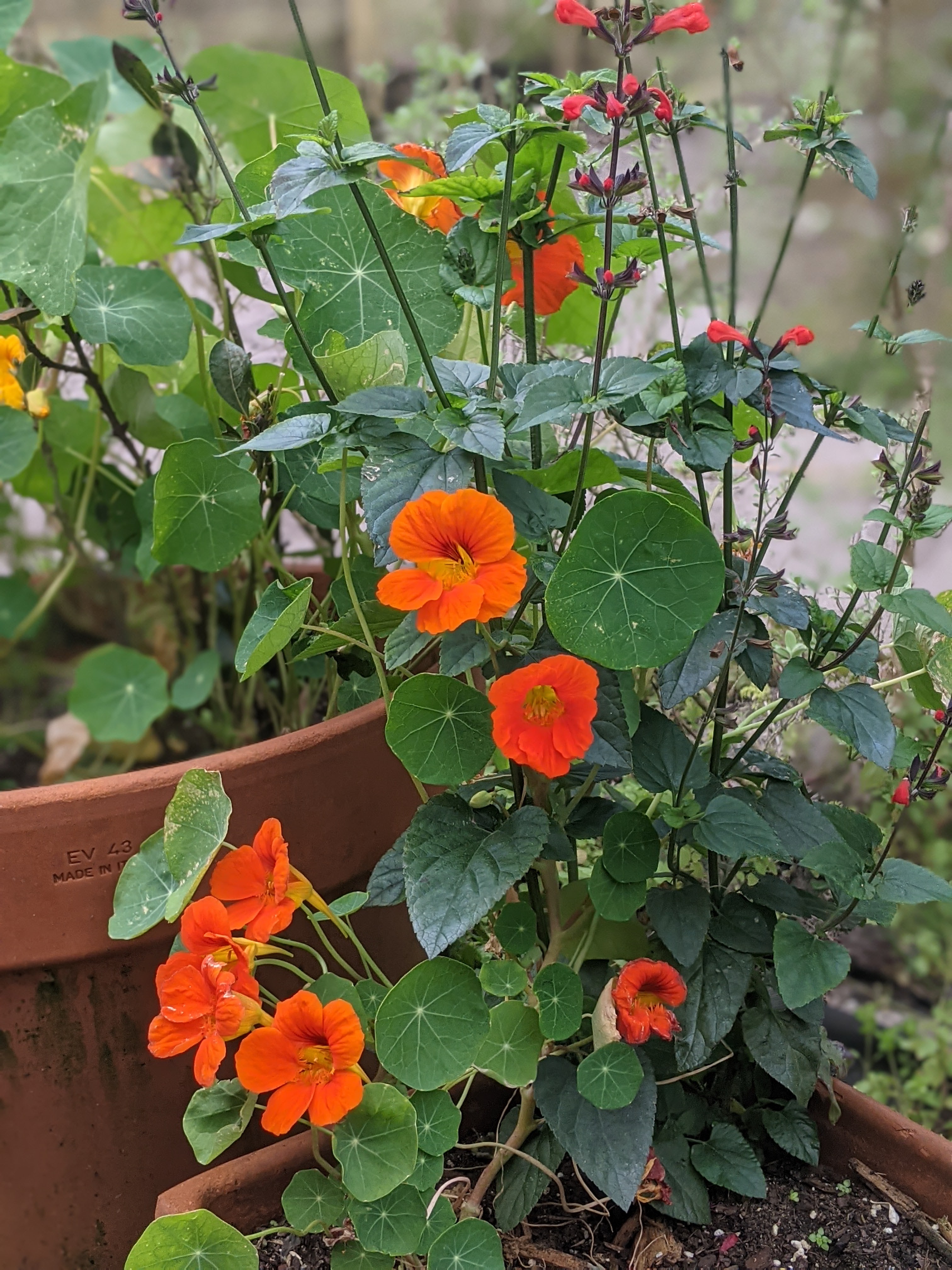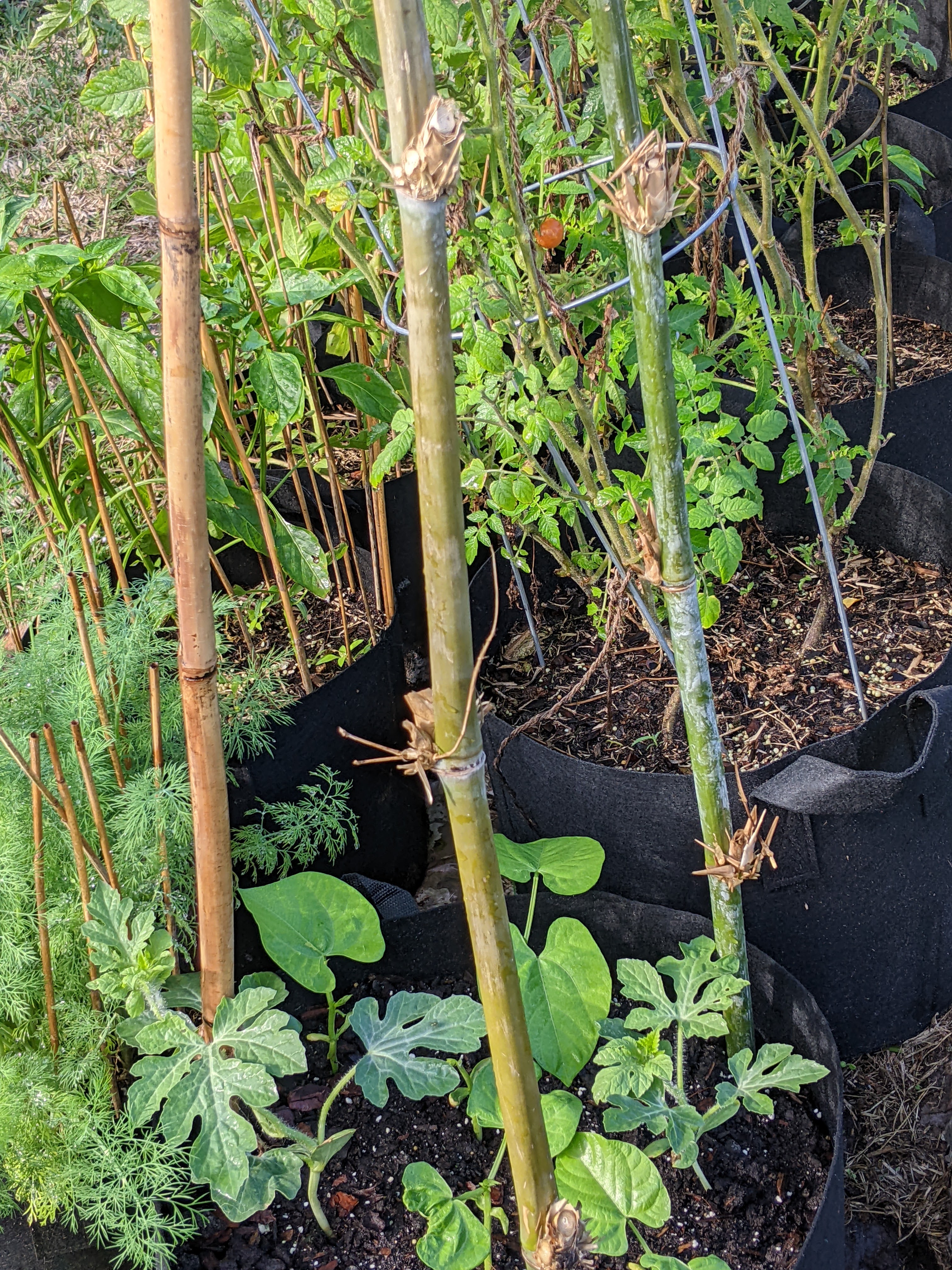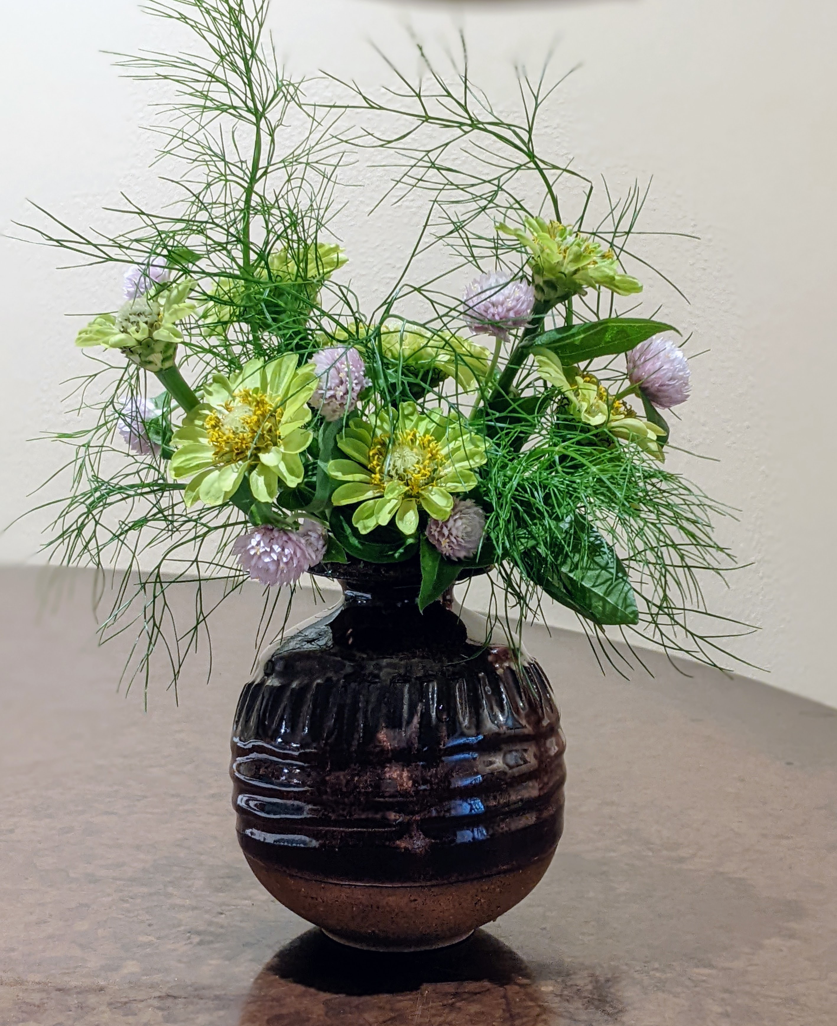 Another sign of cooler weather. Turk’s cap Hibiscus (Malvaviscus penduliflorus). These just seem to appear in the garden. I enjoy the flowers and cut them to hang over the edge of vases. Floridians call these Nodding Hibiscus. I guess there are hats like this in Turkey?