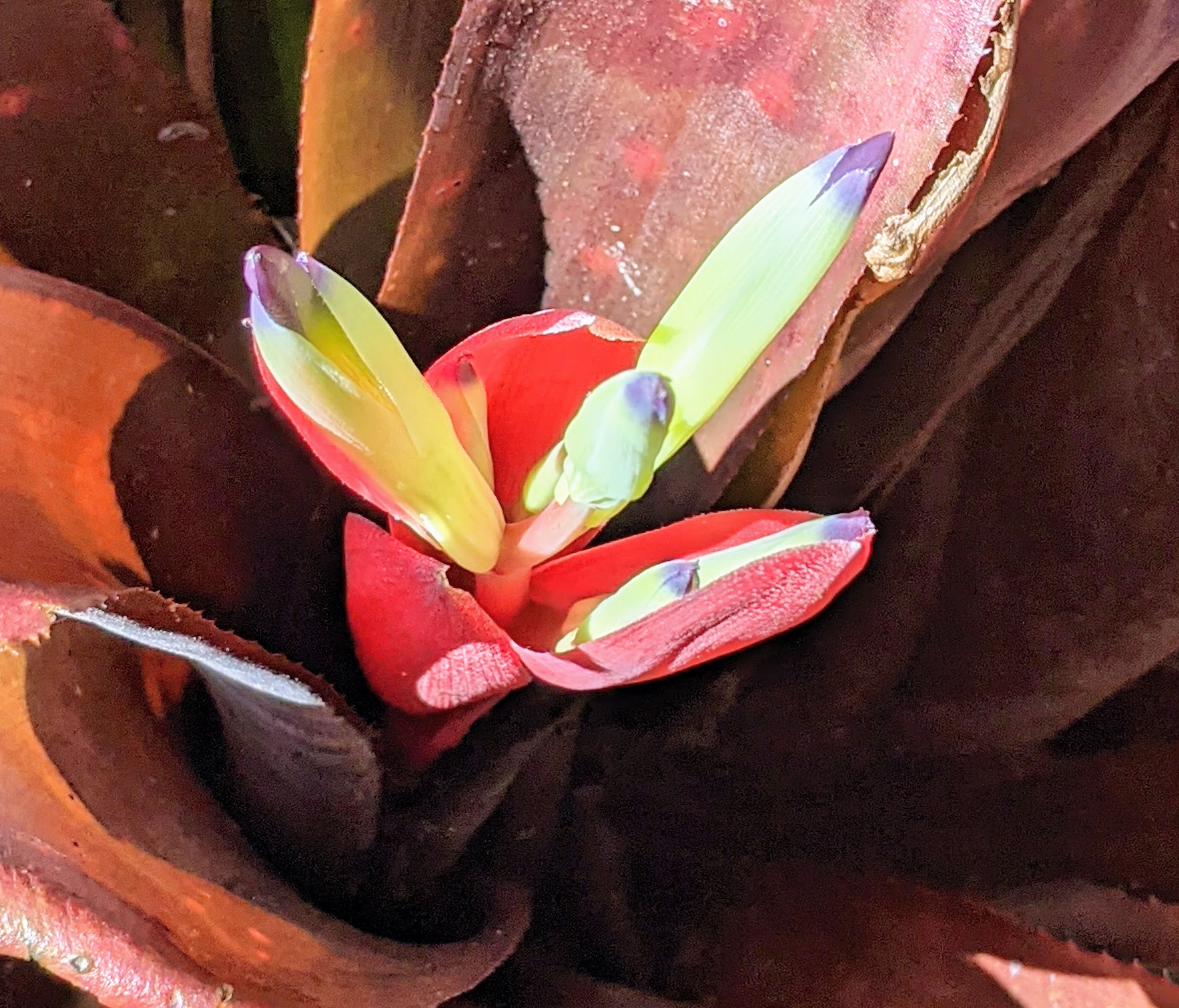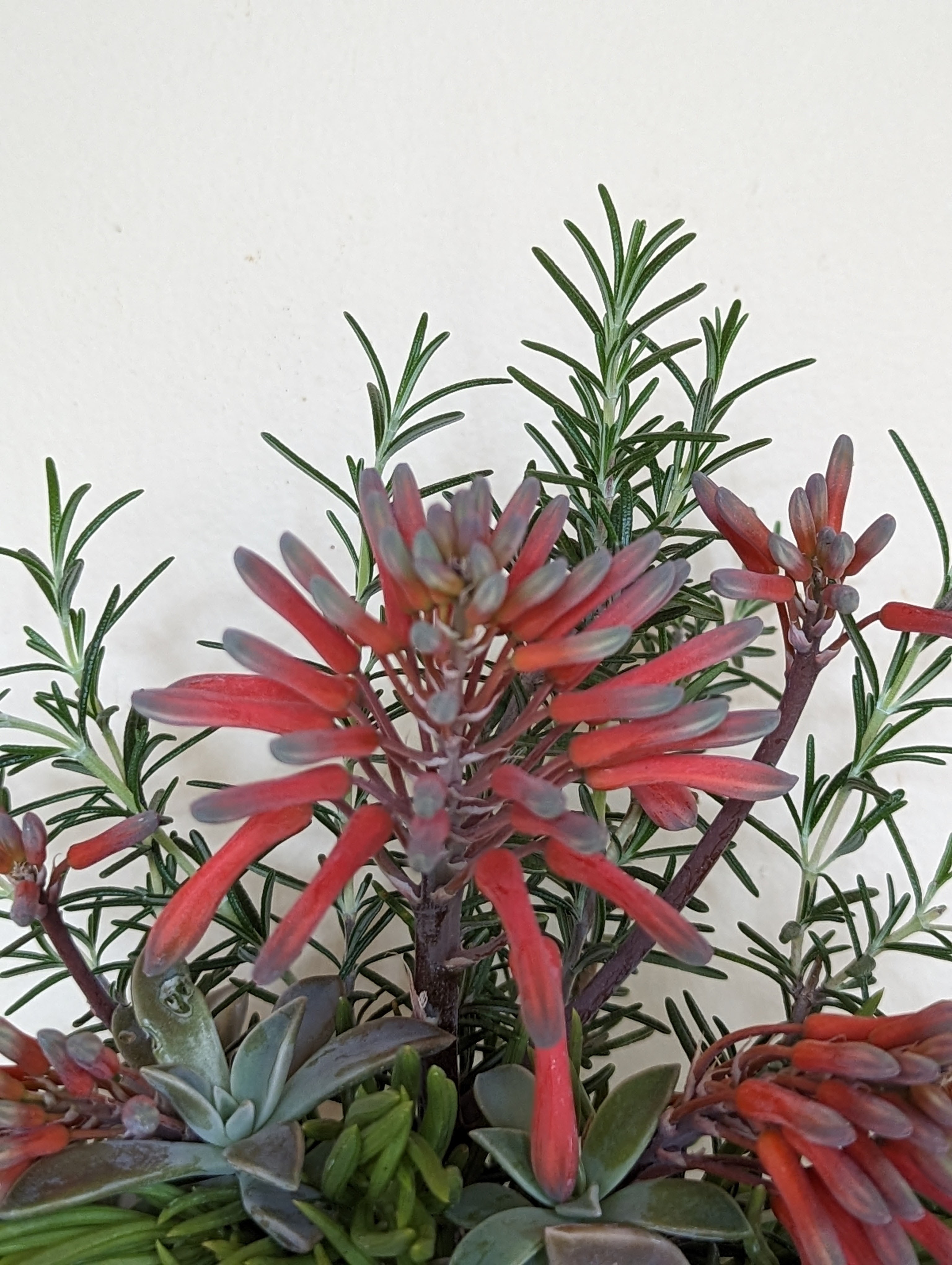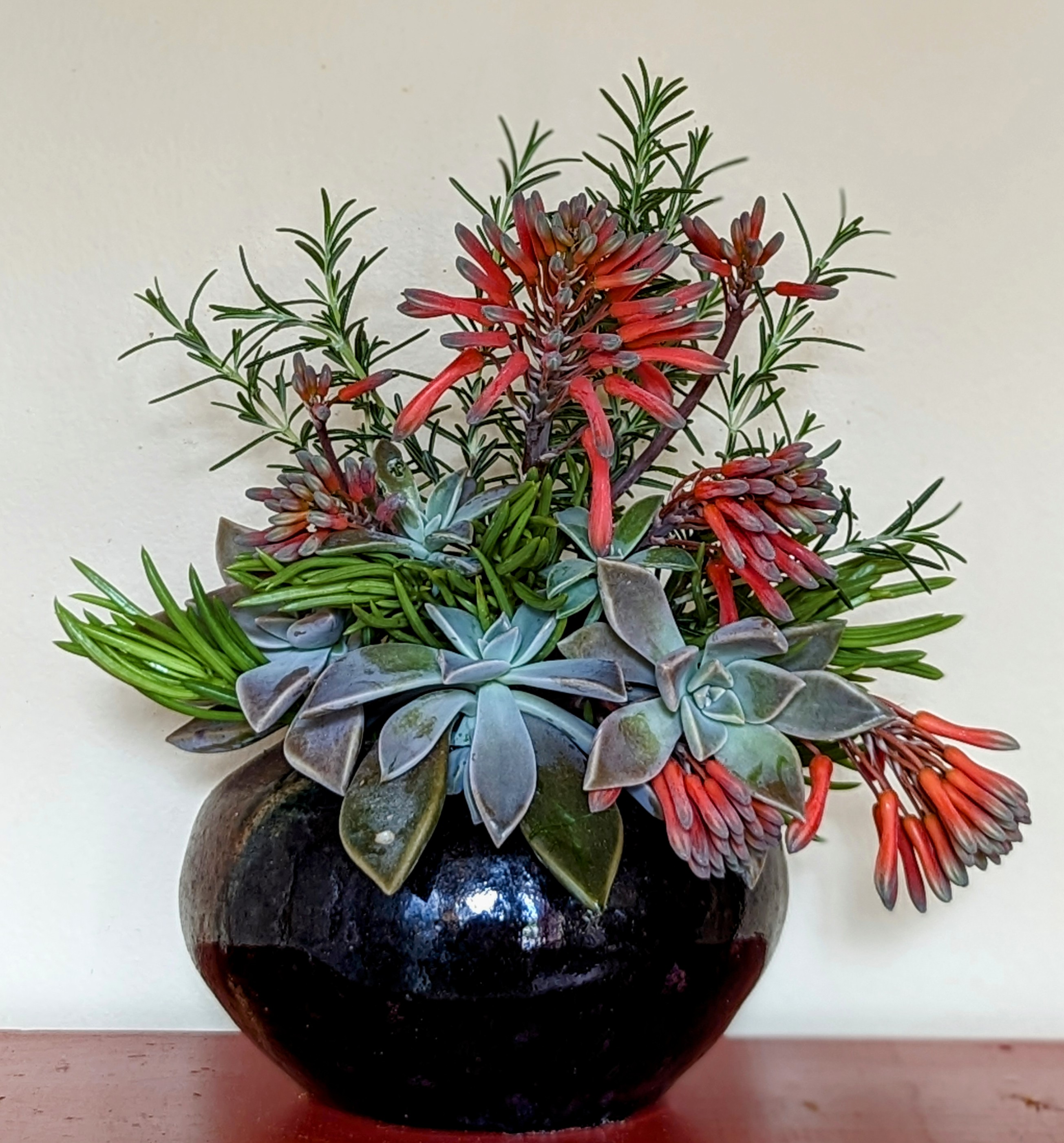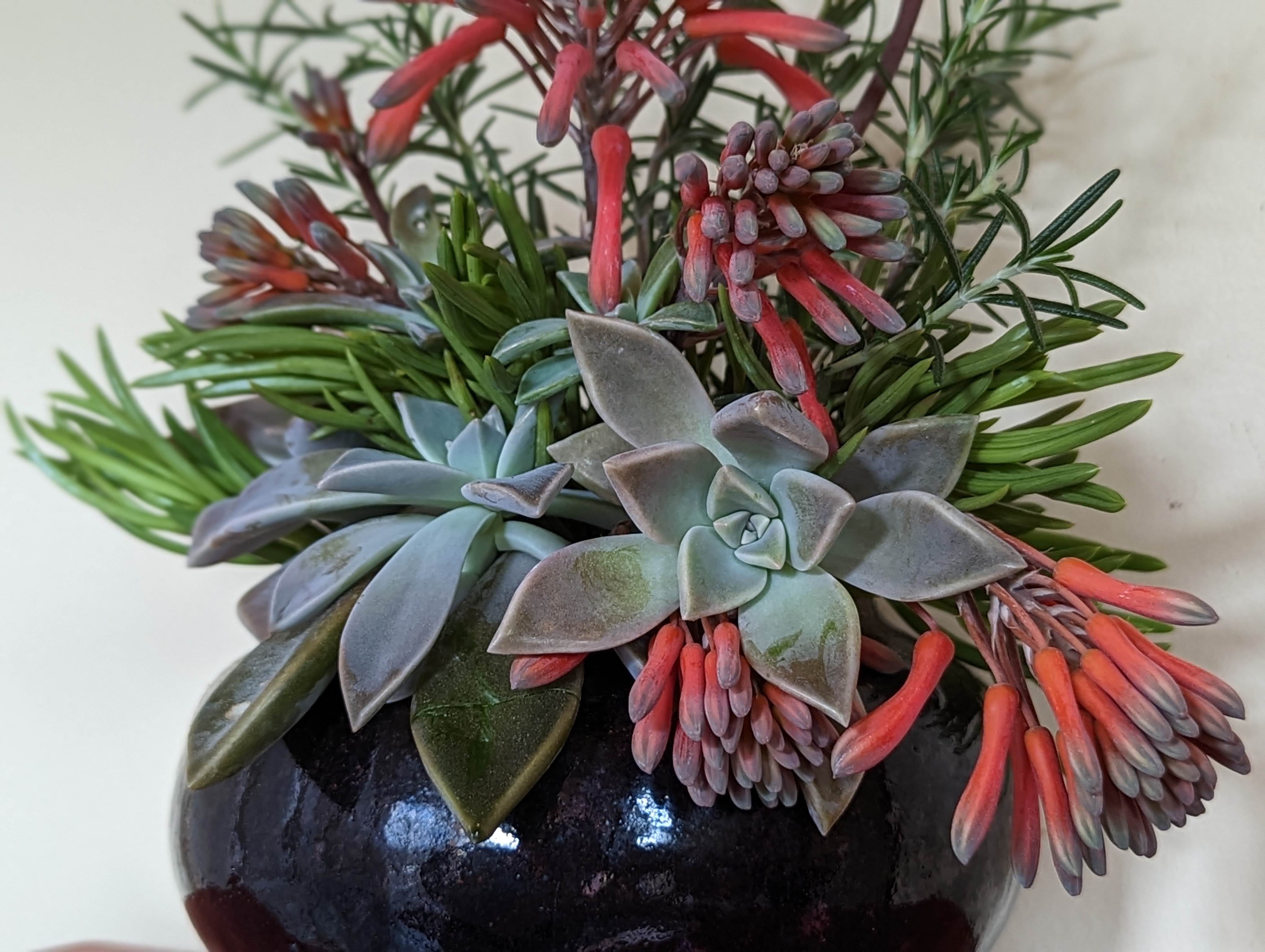 Another sign of cooler weather. Turk’s cap Hibiscus (Malvaviscus penduliflorus). These just seem to appear in the garden. I enjoy the flowers and cut them to hang over the edge of vases. Floridians call these Nodding Hibiscus. I guess there are hats like this in Turkey?