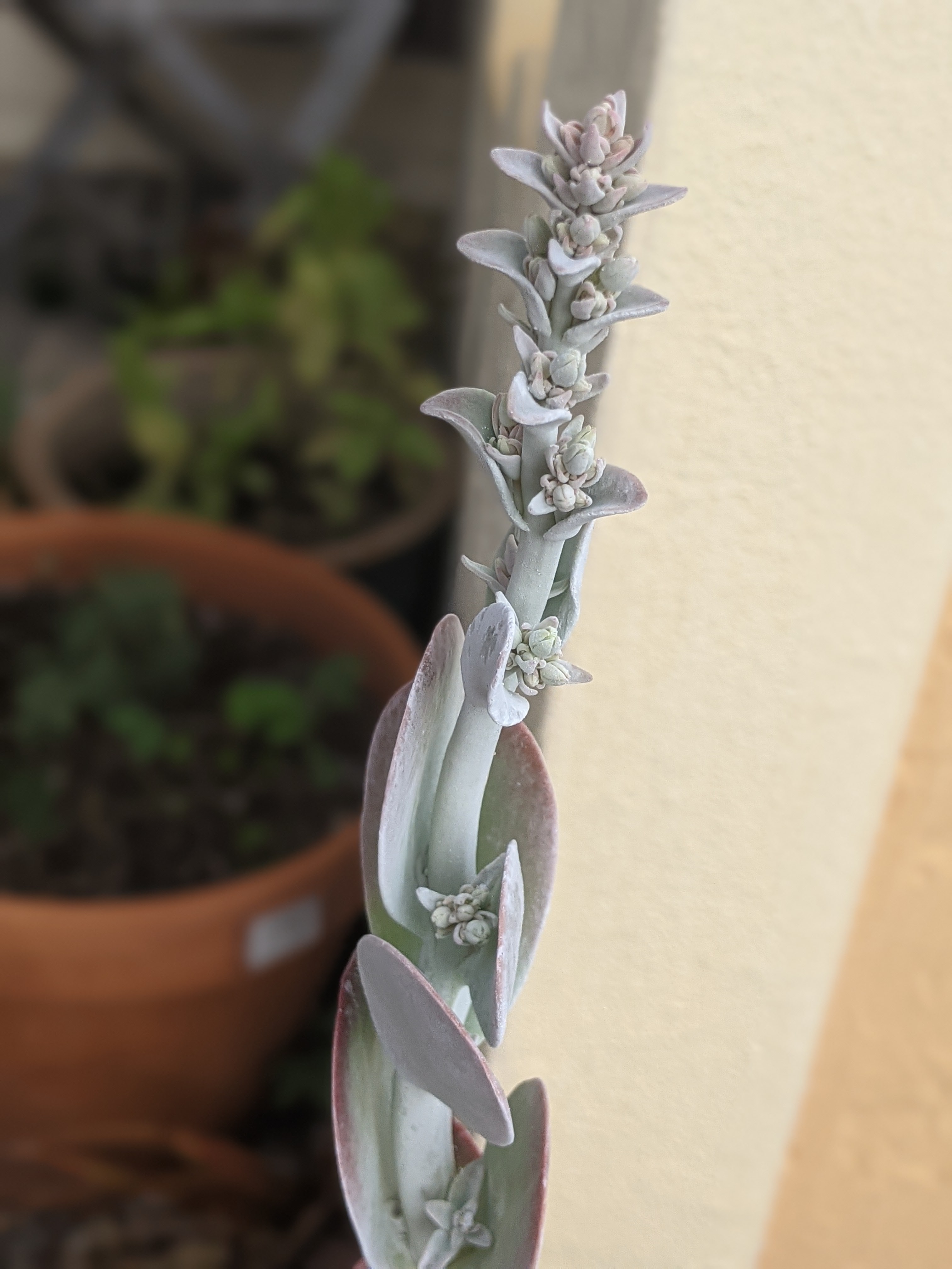Pups on the Flapjack Kalanchoe. I cut these off and put them in pots to root.