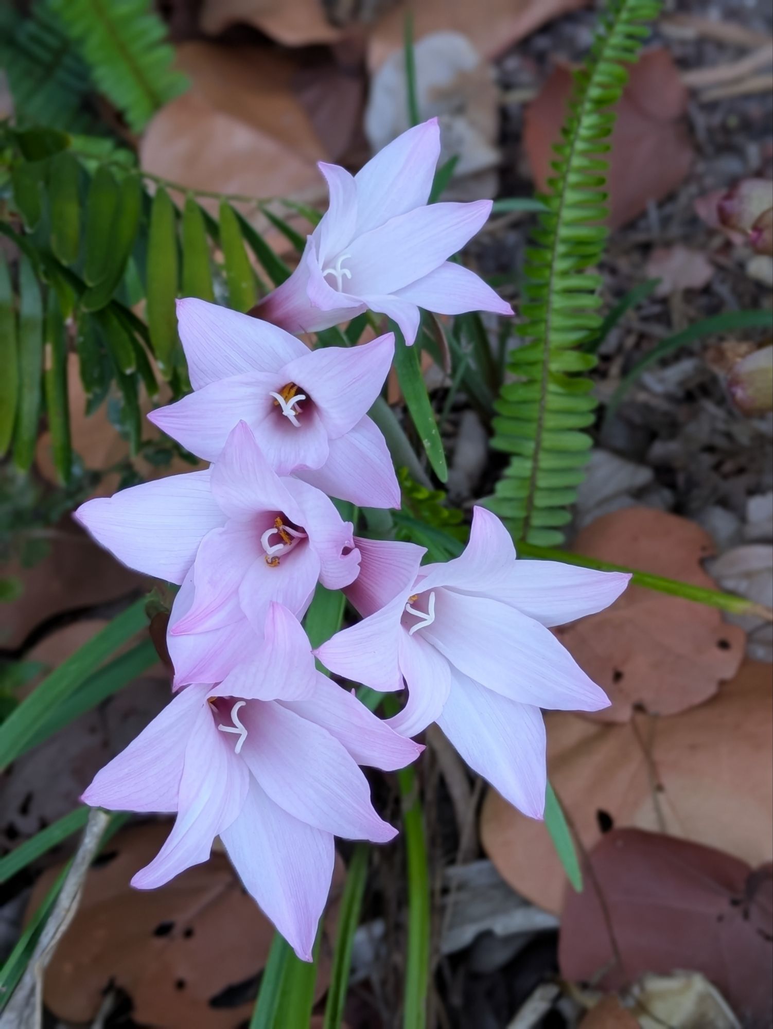 The hunt was on for holiday mood flowers with skinny stems. In South Florida! A challenge, to say the least. My garden provided several selections. Not one of them was planted by me. Where did they come from?? An unanswerable question.