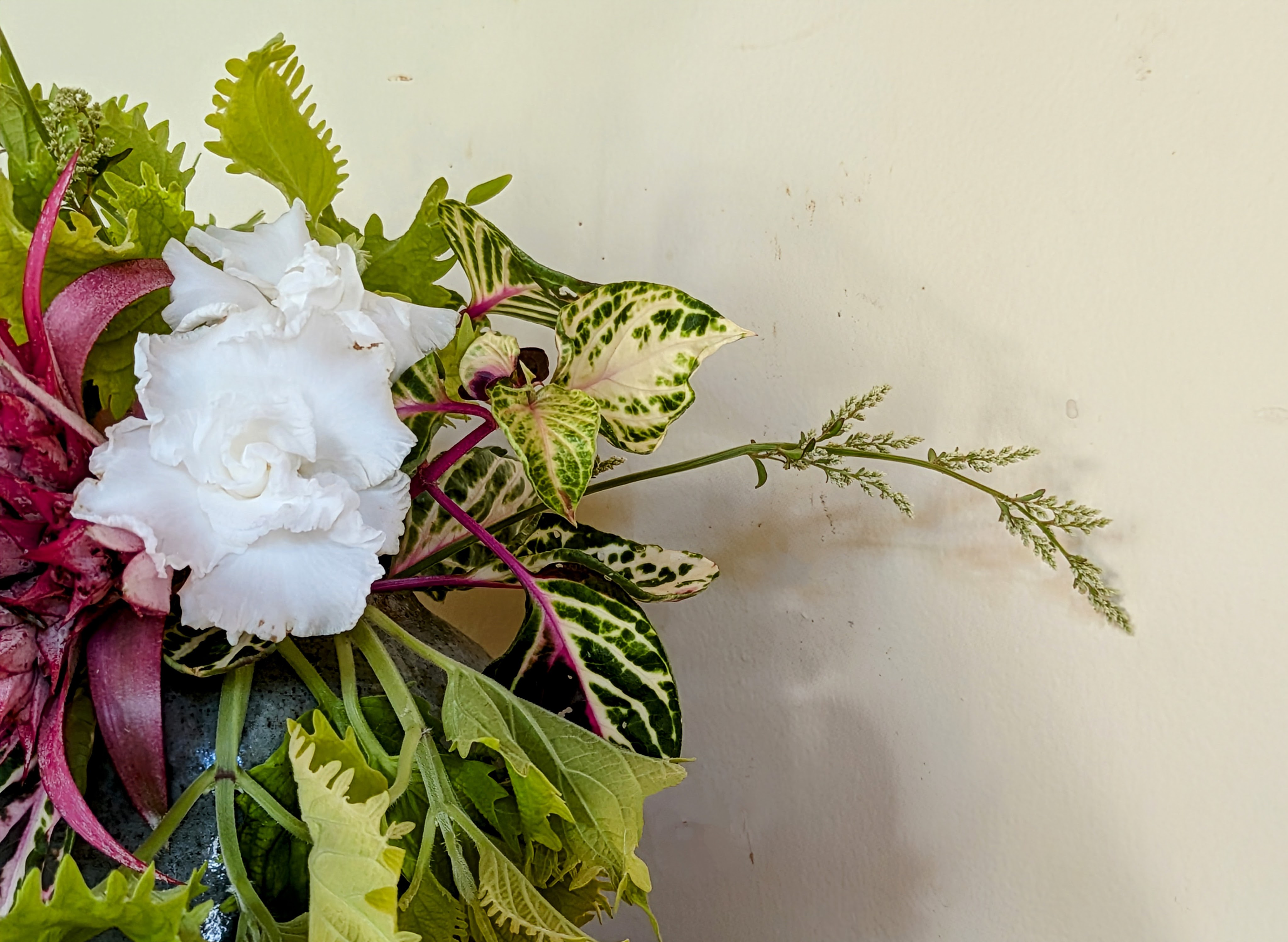 The vase is a stoneware ‘pineapple’ found on a long ago Hawaiian vacation.