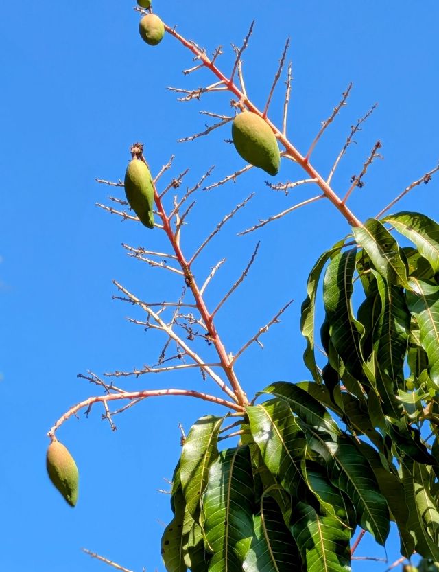 A sure sign of a quenching rain. New growth on Mango trees. This happens when the fruit is nearly ripe. It reminds me of fall color, a rare sight in South Florida.