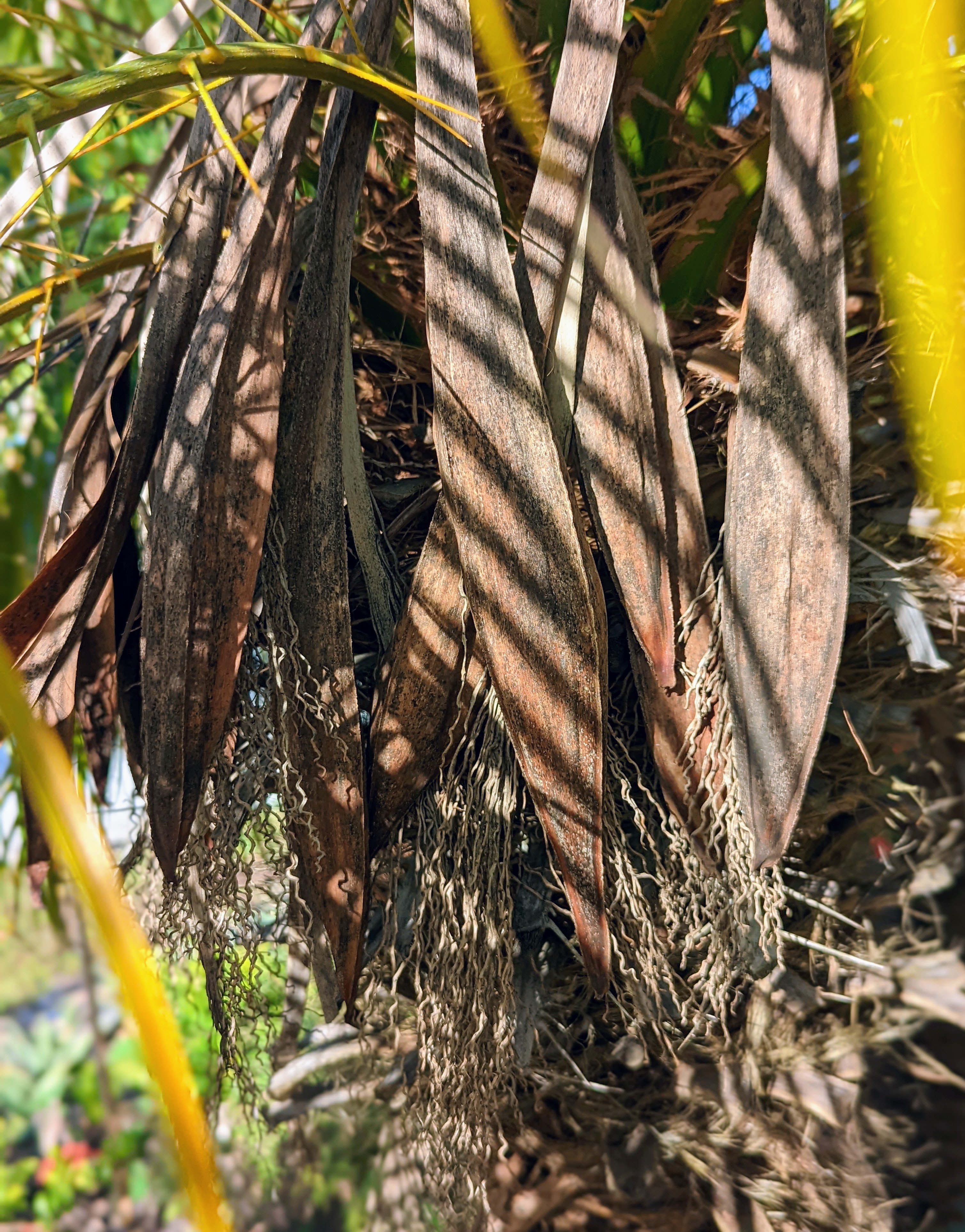 It has been a rainy, overcast, blustery weekend in my garden. Feeling like a somewhat warmer and more humid version of fall further north. I went searching for some vegetation to fit the moody weather. The plants in the arrangement speak of fall in Florida – fruits from flowering and shade trees and “fall” leaves.