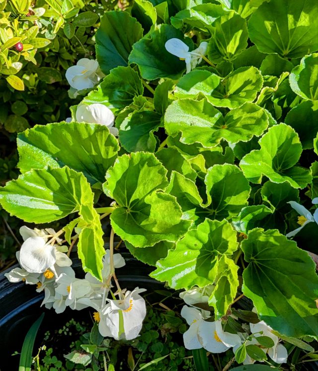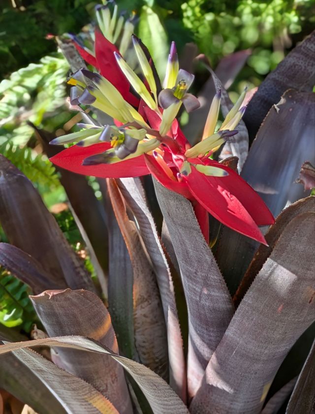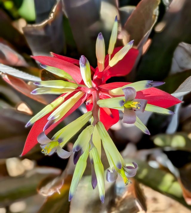 Bringing up the rear of the arrangement is the lovely fragrant “Aztec Gold” Frangipani. The lavendar spikes are from Arabian Lilac (Vitex trifolia). This doesn’t have a fragrance, though it sounds like it should. I like the purple backed leaves.