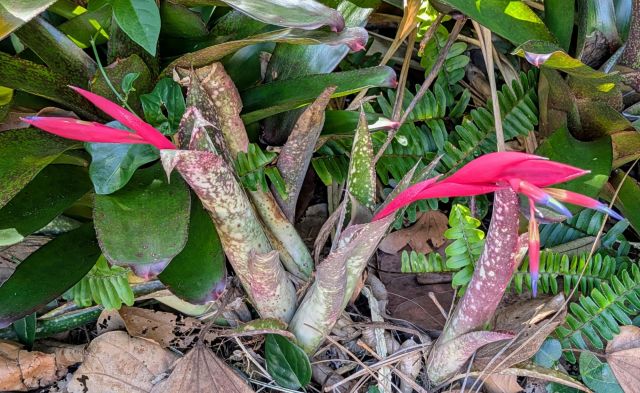 I decided a little fun was in order this Monday and selected my cow vase to contain my beguiling tropical flowers. I dodged soaking rain showers while selecting flowers then stopped to dig up and move a Heliconia in the rain. Upon returning to the house drenched and bearing cut flowers; the dog looked at me like I had lost my mind. The Heliconia doesn’t seem to have noticed its new location. Rain is predicted all week, so it is a good time to move tropical plants.