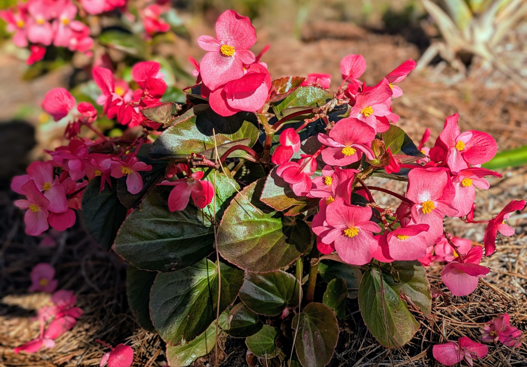 Bringing up the rear of the arrangement is the lovely fragrant “Aztec Gold” Frangipani. The lavendar spikes are from Arabian Lilac (Vitex trifolia). This doesn’t have a fragrance, though it sounds like it should. I like the purple backed leaves.