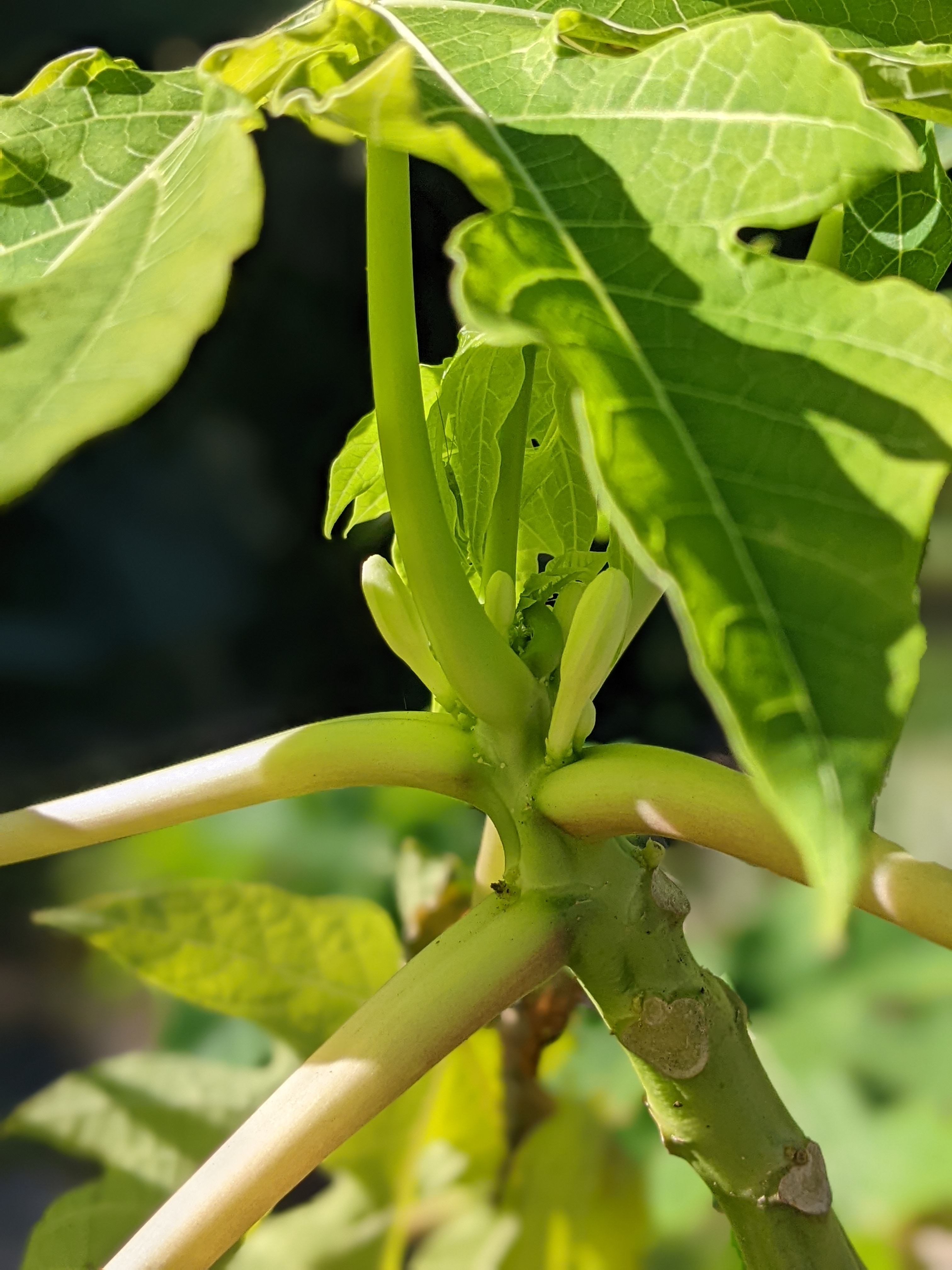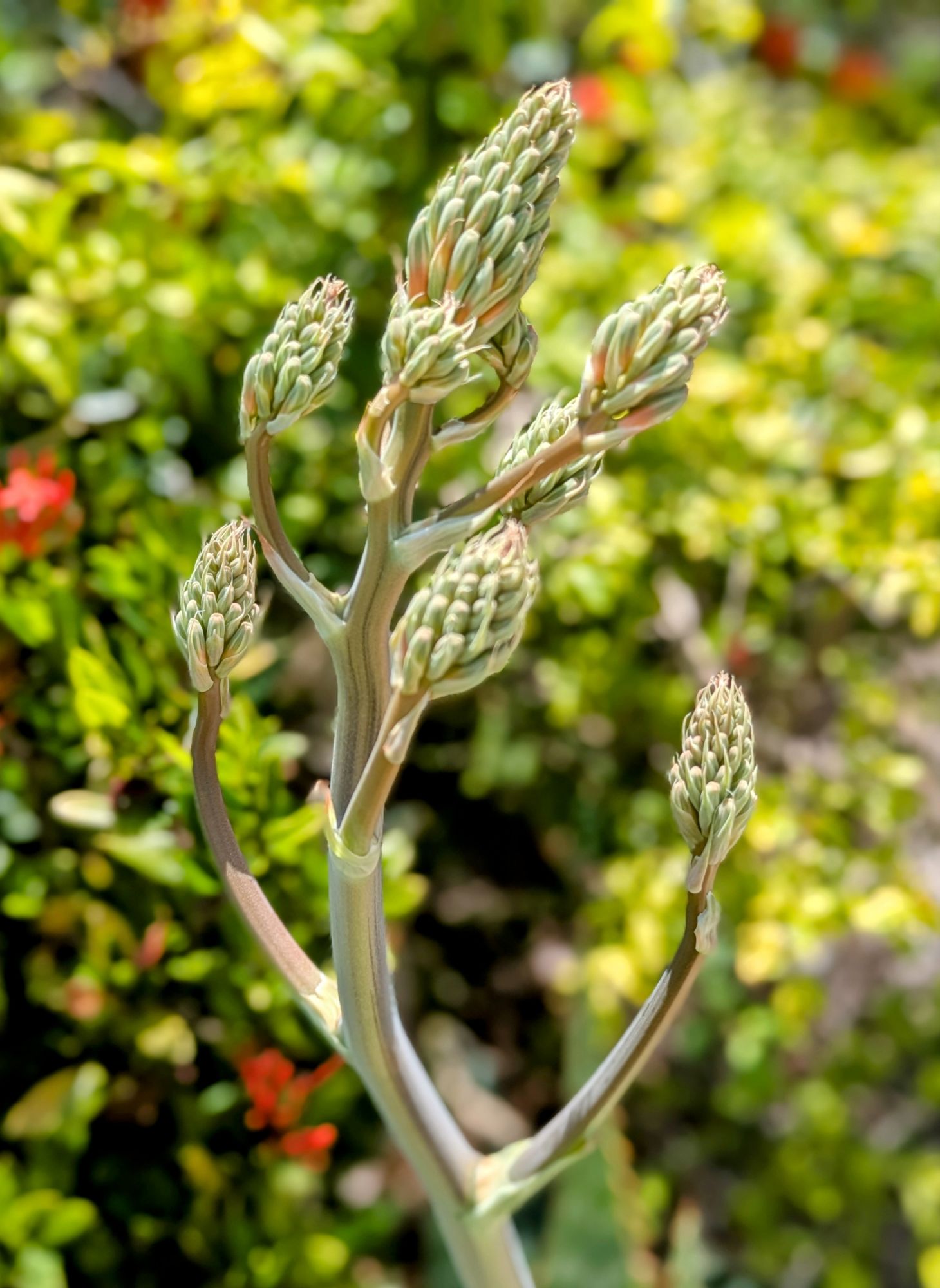 Buds are shooting up on the Soap Aloe (Aloe saponaria). I love these buds, so architectural. They are taking over the garden and have thorny foliage, so I leave them be for the most part.