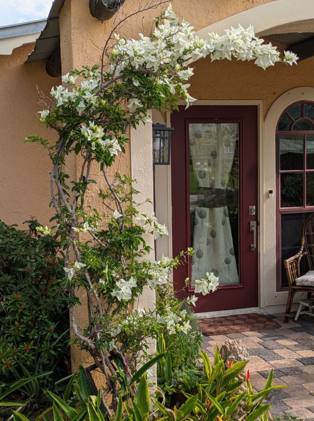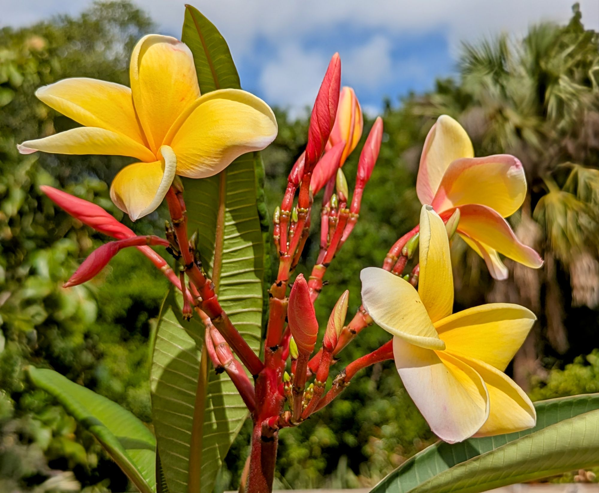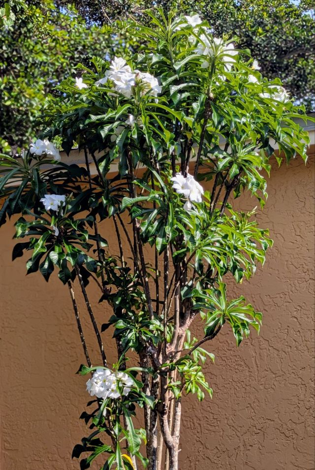 The Bridal Bouquet Frangipani (Plumeria pudica) is ready for June brides. I may cut a bouquet for myself as I think this one is a bit too tall.