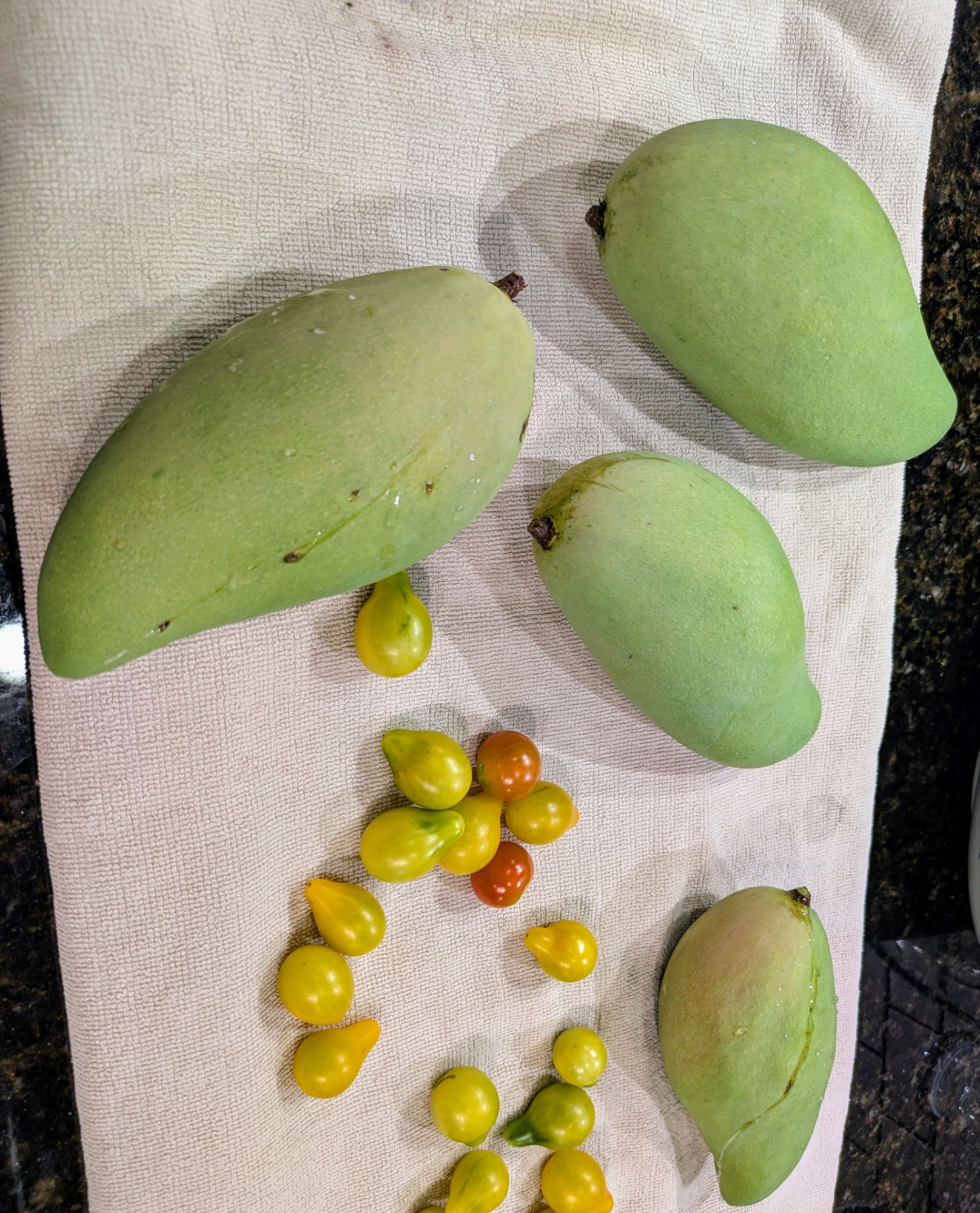 I’m still harvesting Nam Doc Mai mangoes and have pounds of mango in the freezer. Also doing rain dances. Things are looking more promising for next week.