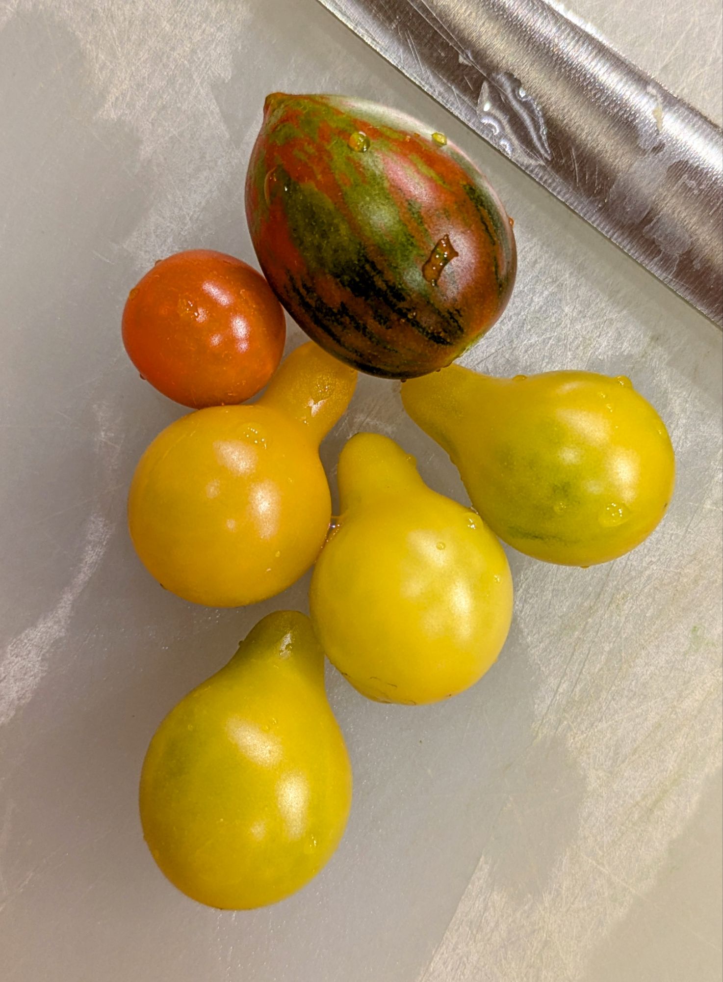 More garden joy. This is as late in the year as I have ever had tomatoes. Many South Florida gardeners grow tomatoes October through May. I planted a second crop and will plant another crop in August. Hoping for year round cherry tomatoes. These are yellow pear, sweet 100, and Brad’s Atomic. Brad’s is off the list for the next crop, just a bit weird tasting and not very prolific.