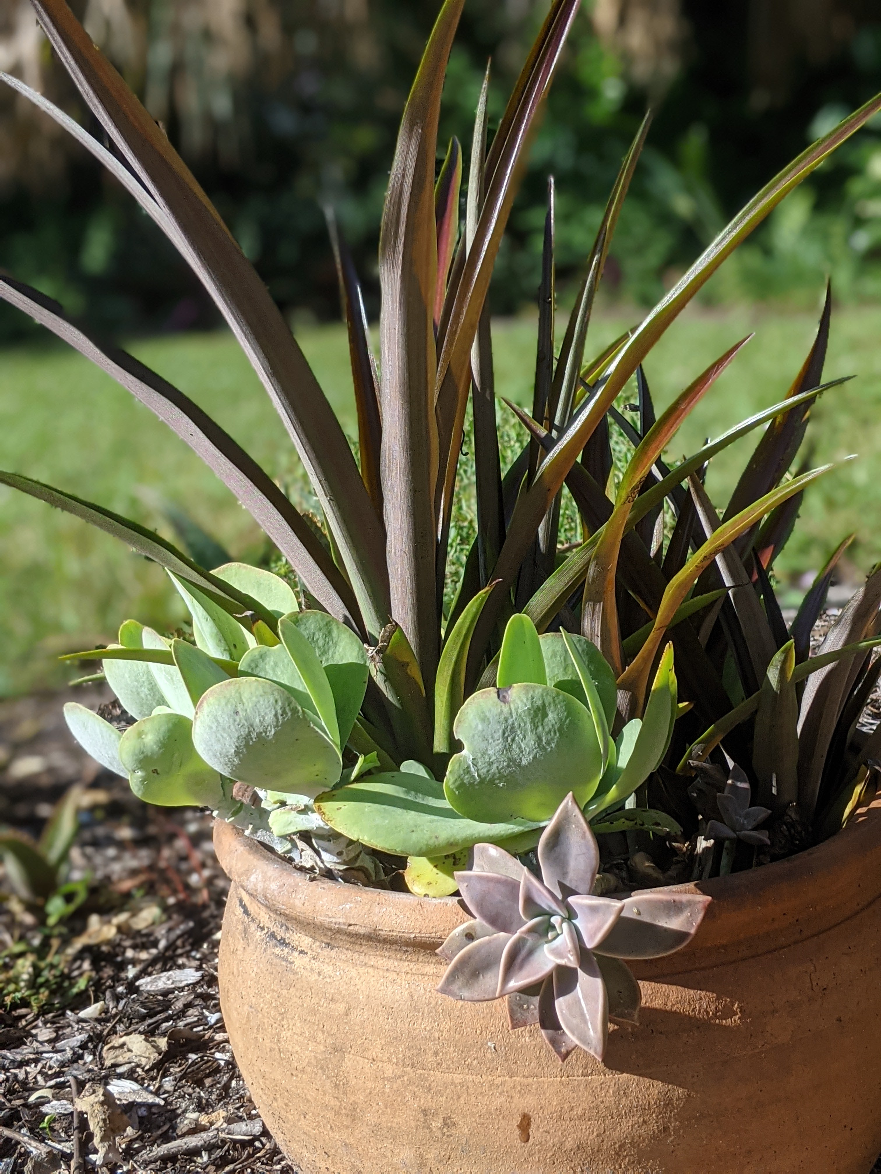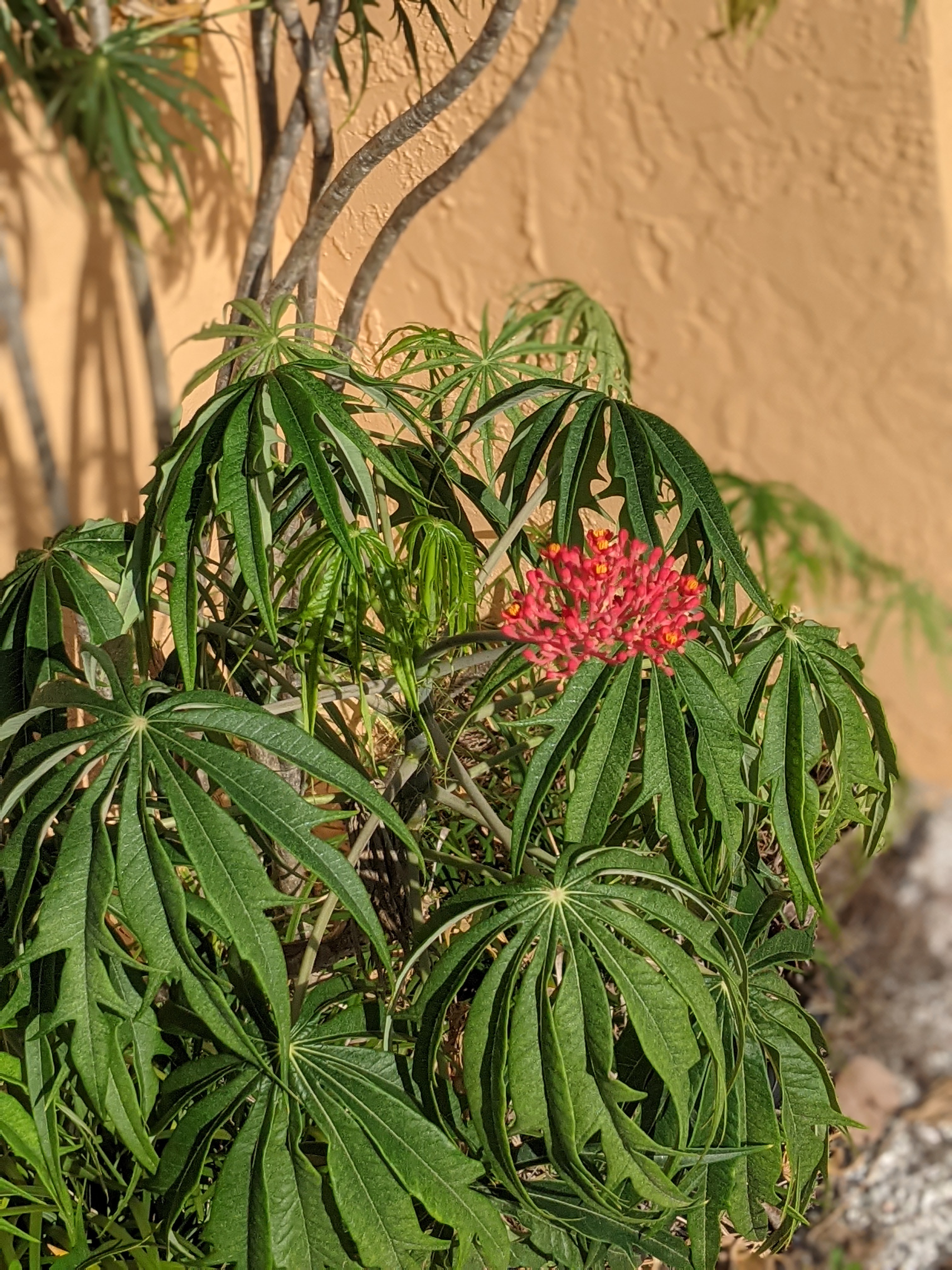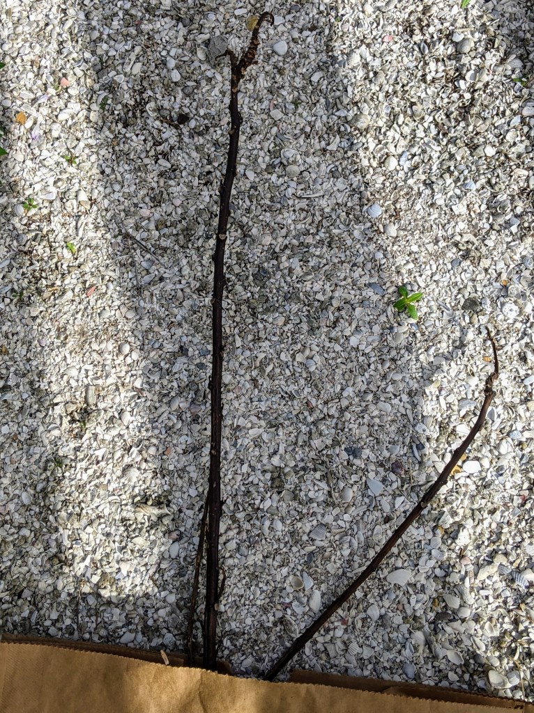 A new shoot on the Dragonfruit. The lawn maintenance guys mangle these every time a new shoot appears; this one wised up and went away from weed eater range. Time will tell if I ever actually harvest a Dragonfruit.