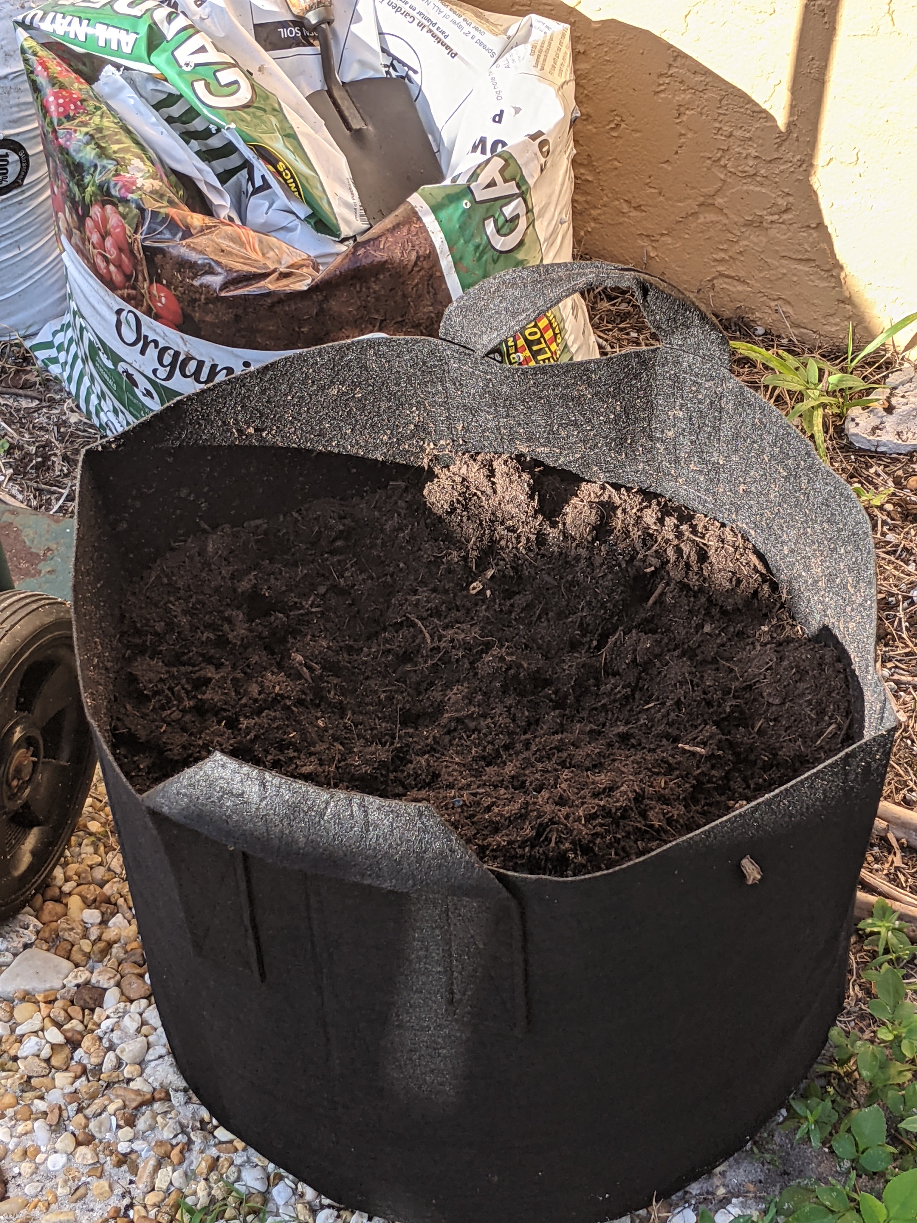 First green beans harvested, made me wish I had planted more bags!