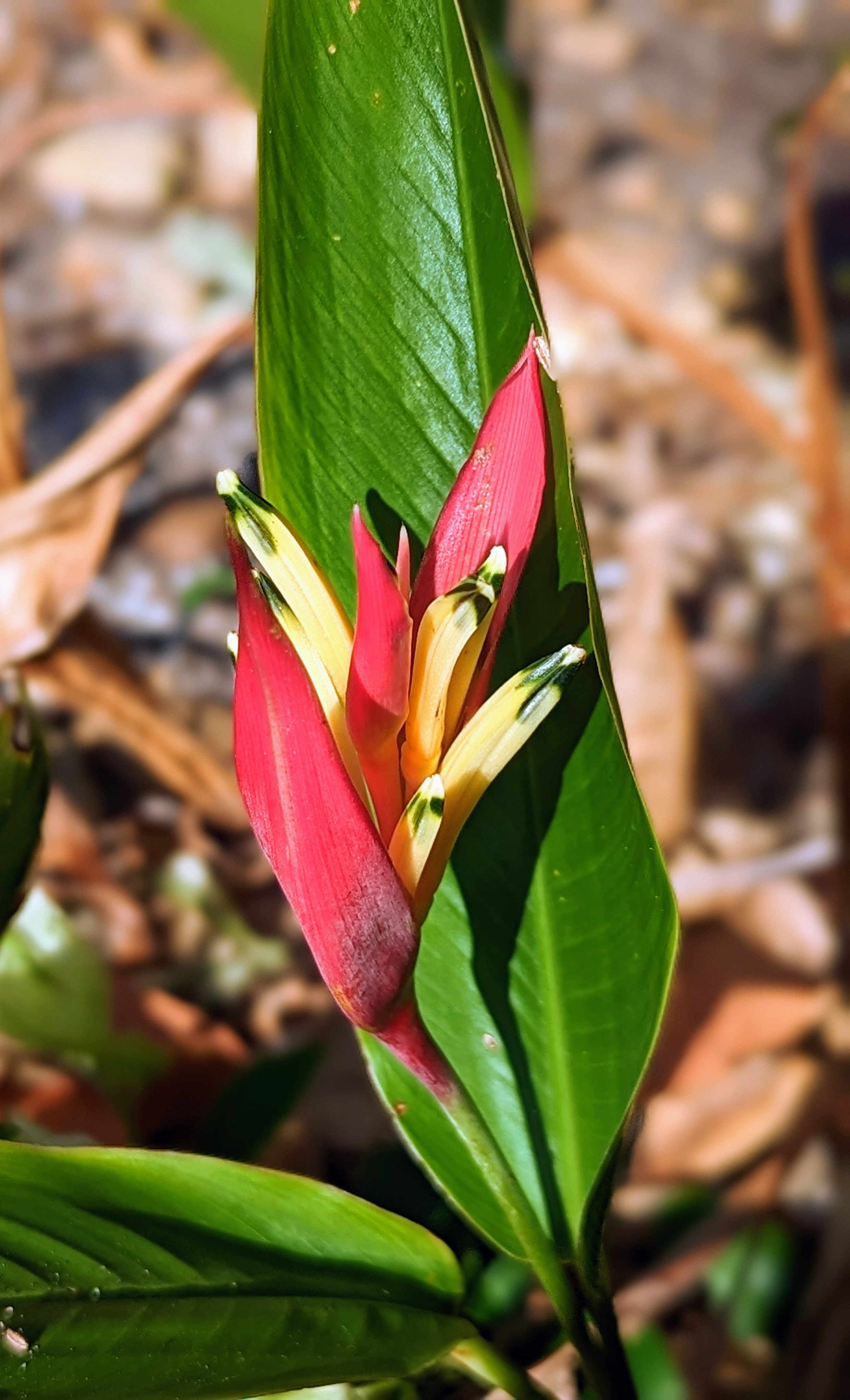 The back of the vase has two colors of foliage from Pie Crust Croton, a mad tropical shrub about five feet tall currently. The yellow and green foliage is new growth and the darker is the mature foliage. The shrub resembles a psychedelic Aucuba. White flowers are from the stalwart Tropical Red Salvia (Salvia coccinea, the white version)