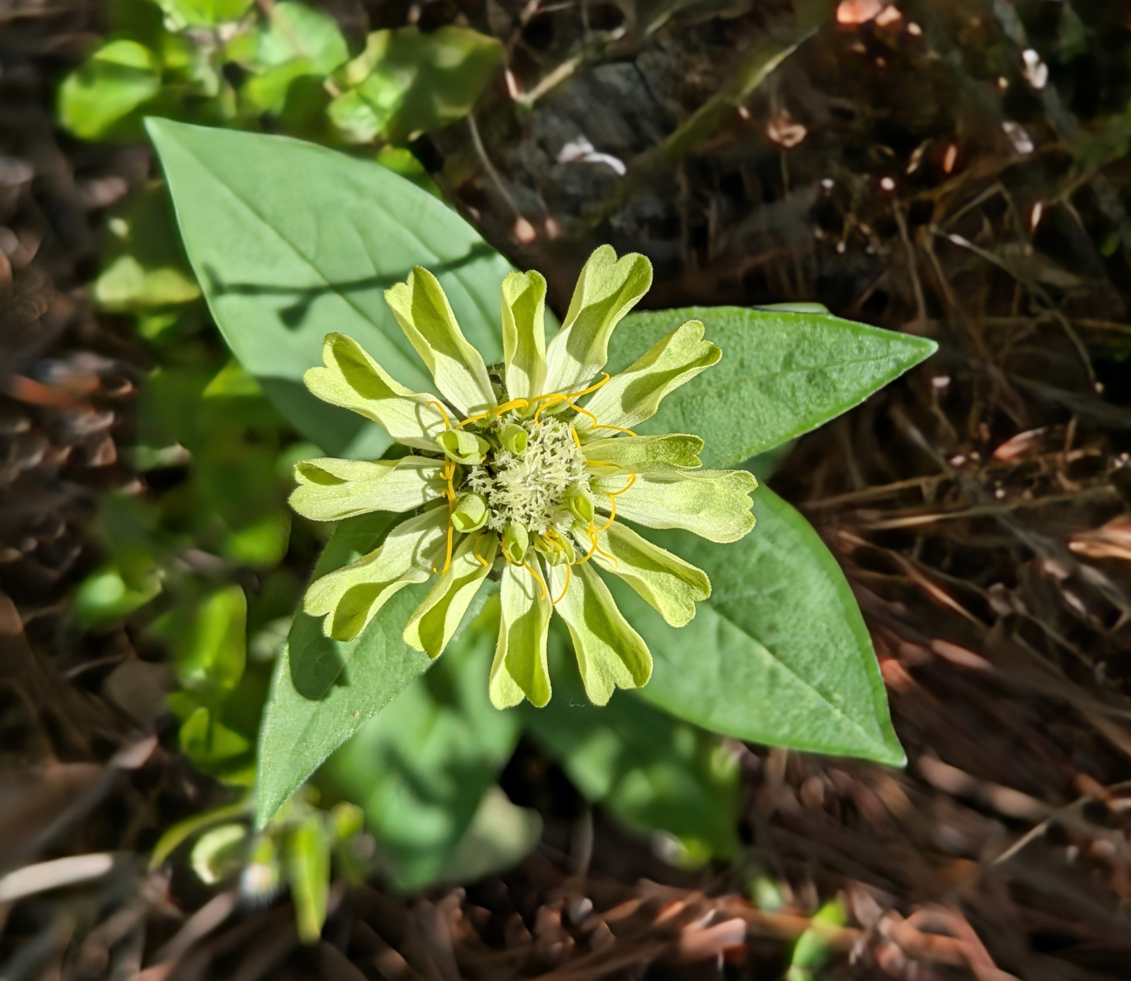 There seem to be several of these. I am wondering if I planted a batch of Envy zinnias. The rain washed away the labels..