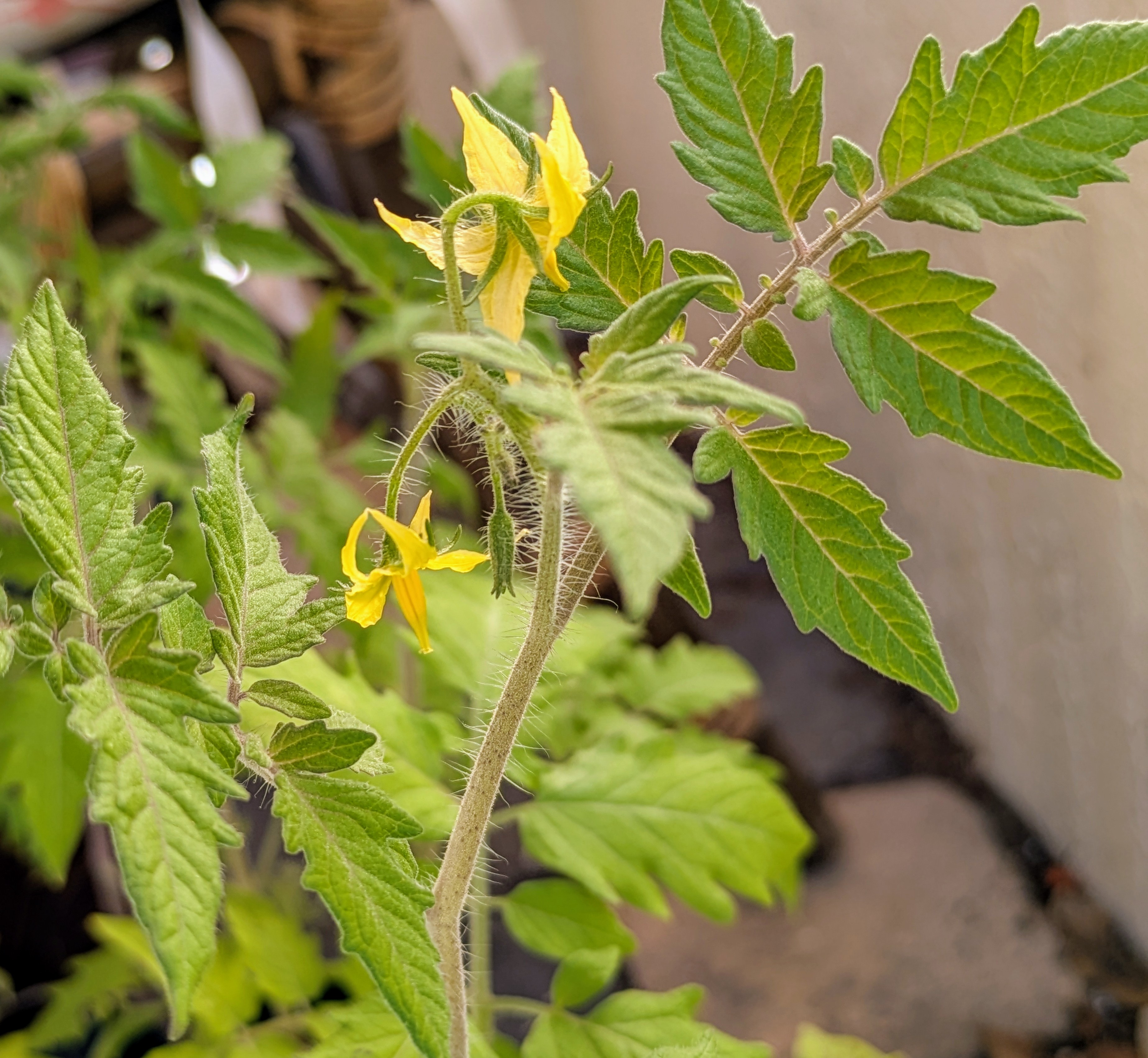 First flowers on the cherry tomatoes. It seems to take much longer this time of year to get fruit.