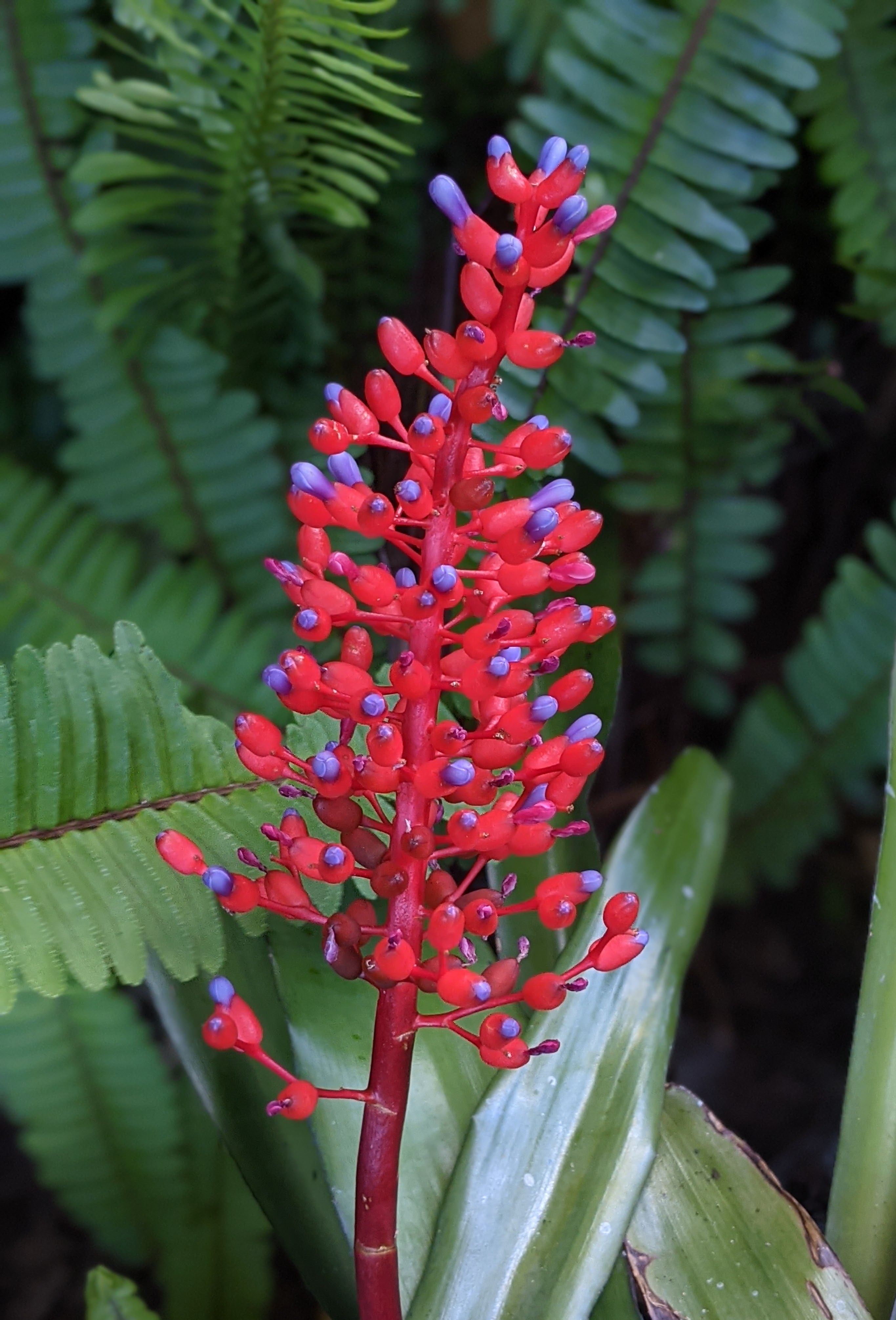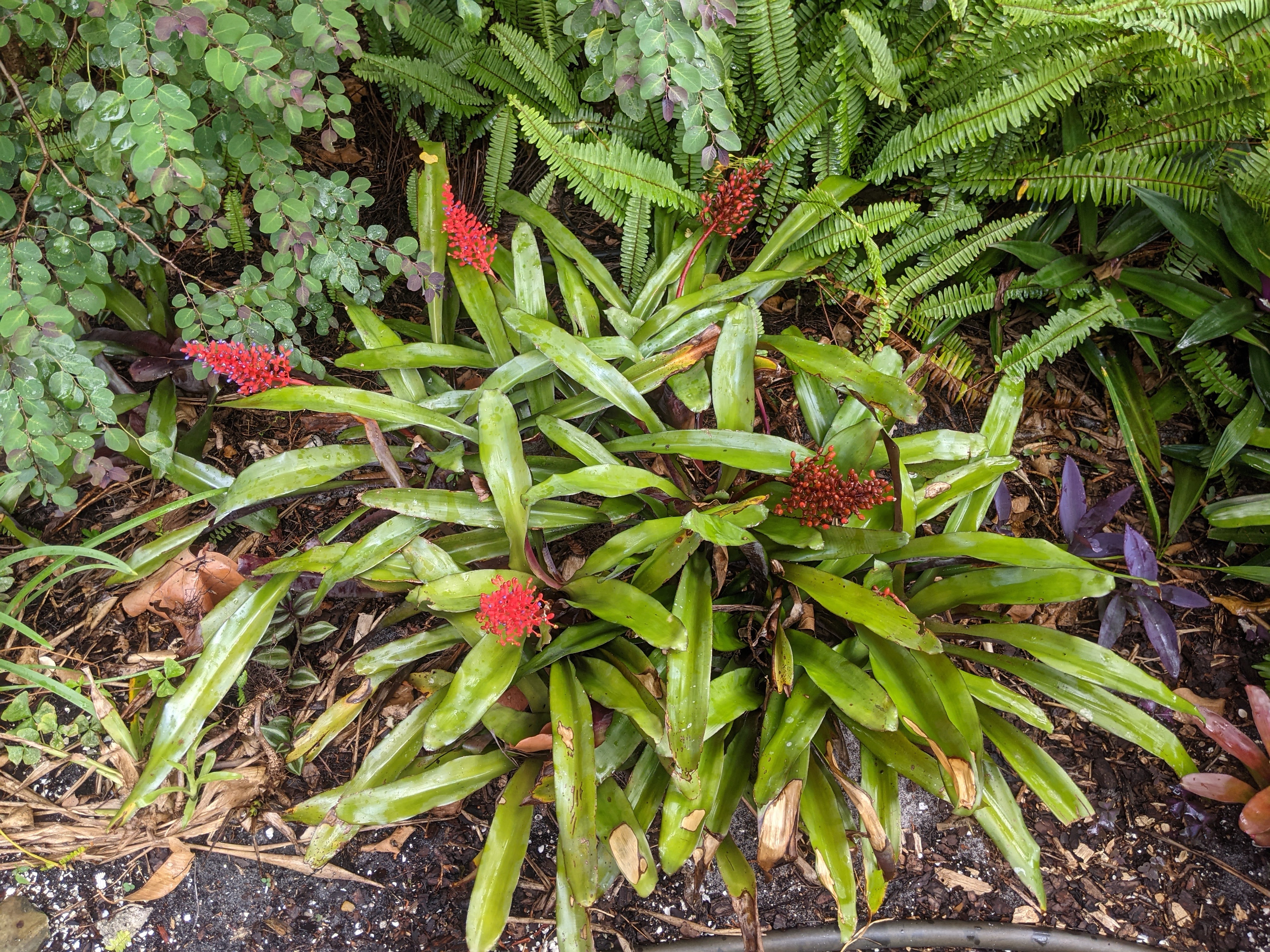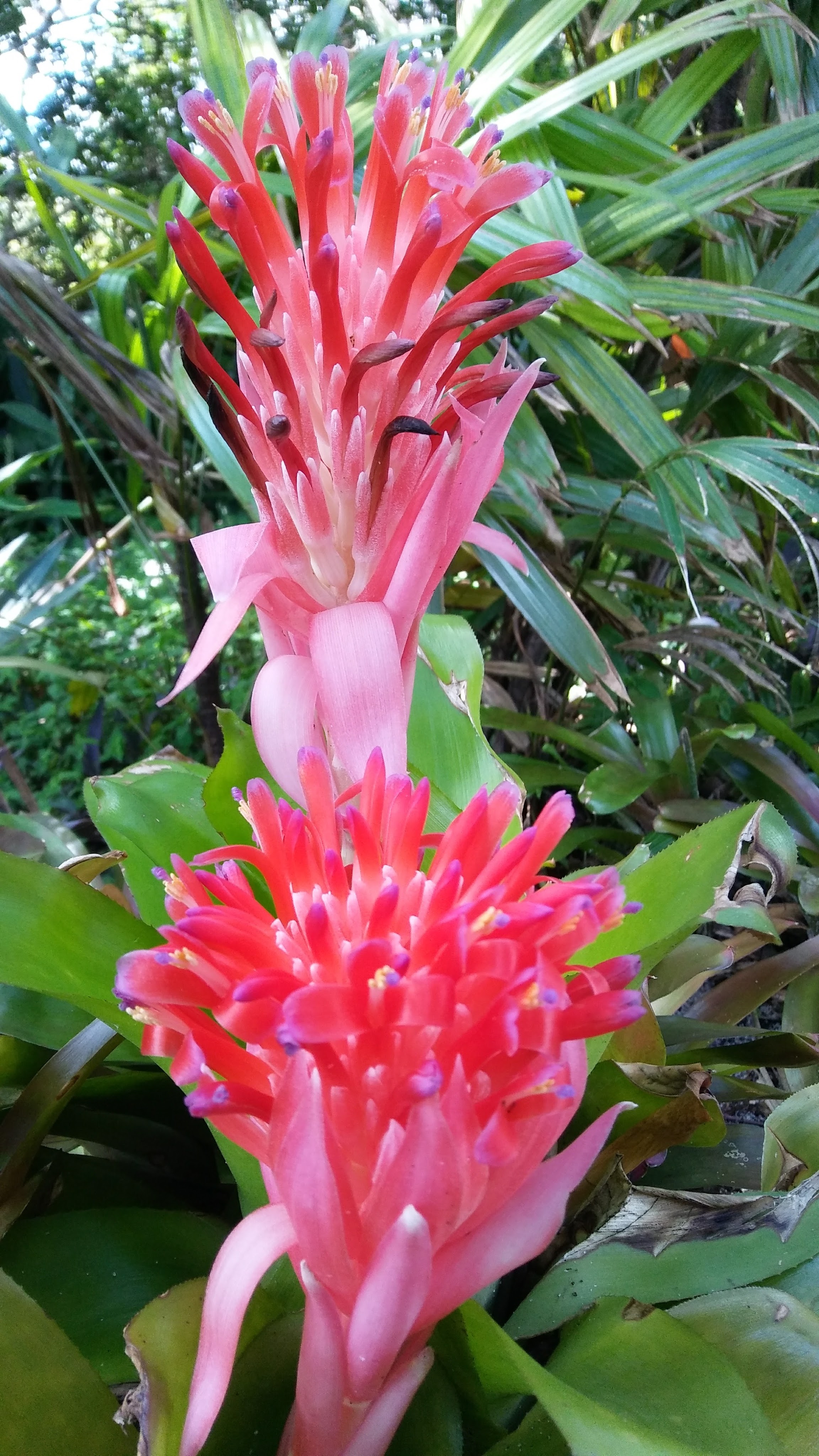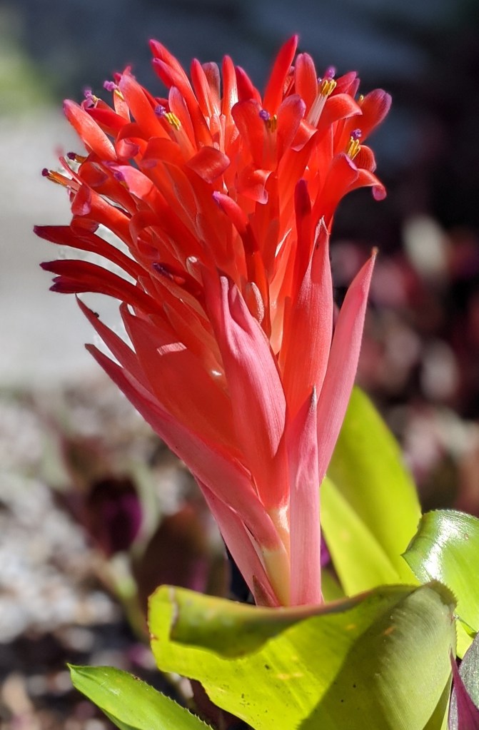 Another harbinger of the rainy season. These are either called Flaming Torch or Hurricane Bromeliads (Billbergia pyramidalis). I prefer Flaming Torch, if the light hits them just right – that is exactly what they look like.