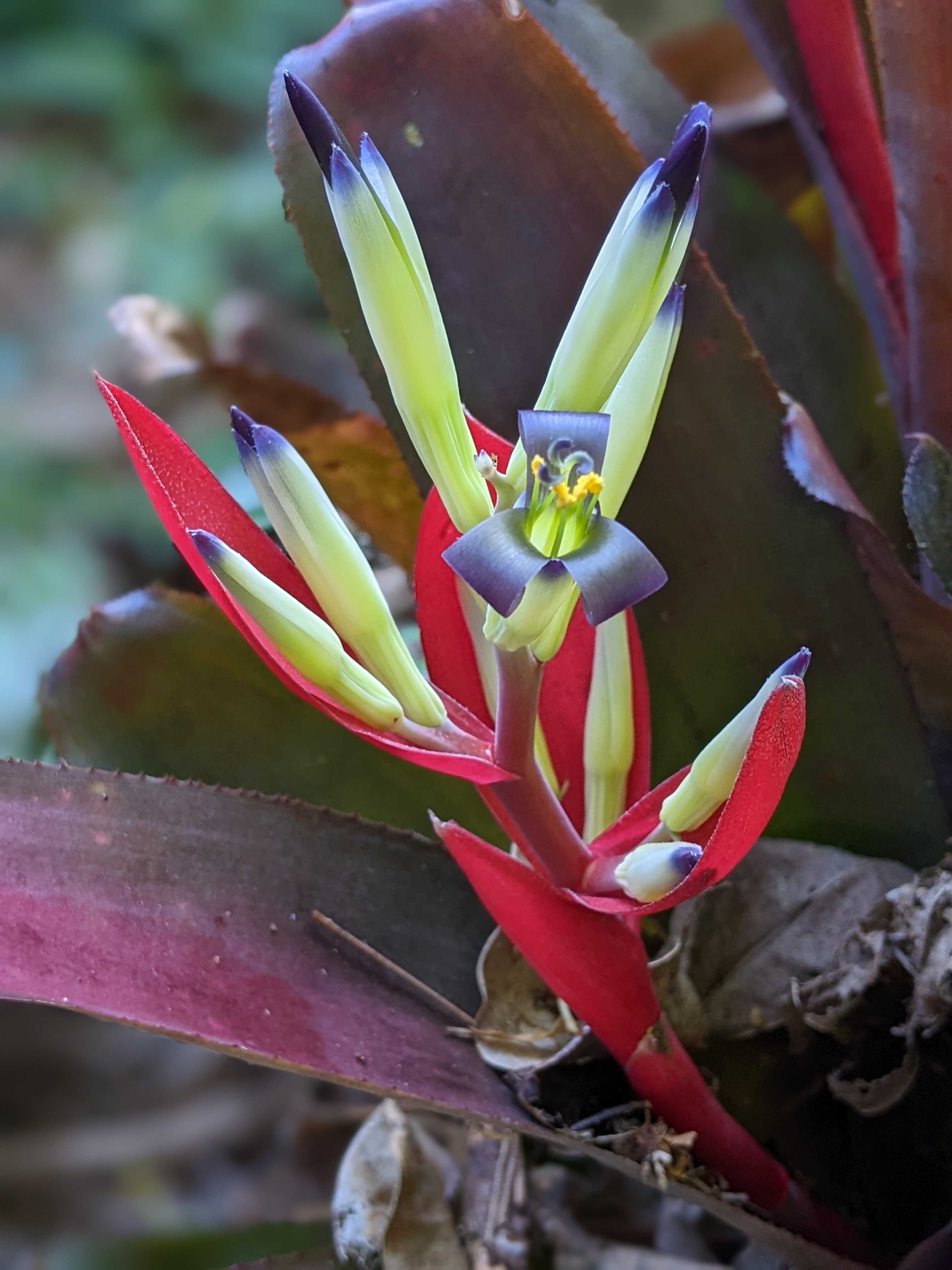 The “Lady Di” Heliconia (Heliconia psittacorum) in red and yellow; the red bells are Firecracker Plant (Russelia equisetiformis). The Russelia is amazingly drought tolerant and I love the unusual foliage texture. The rain seems to have encouraged the flowering, I have never seen quite a show like this.
