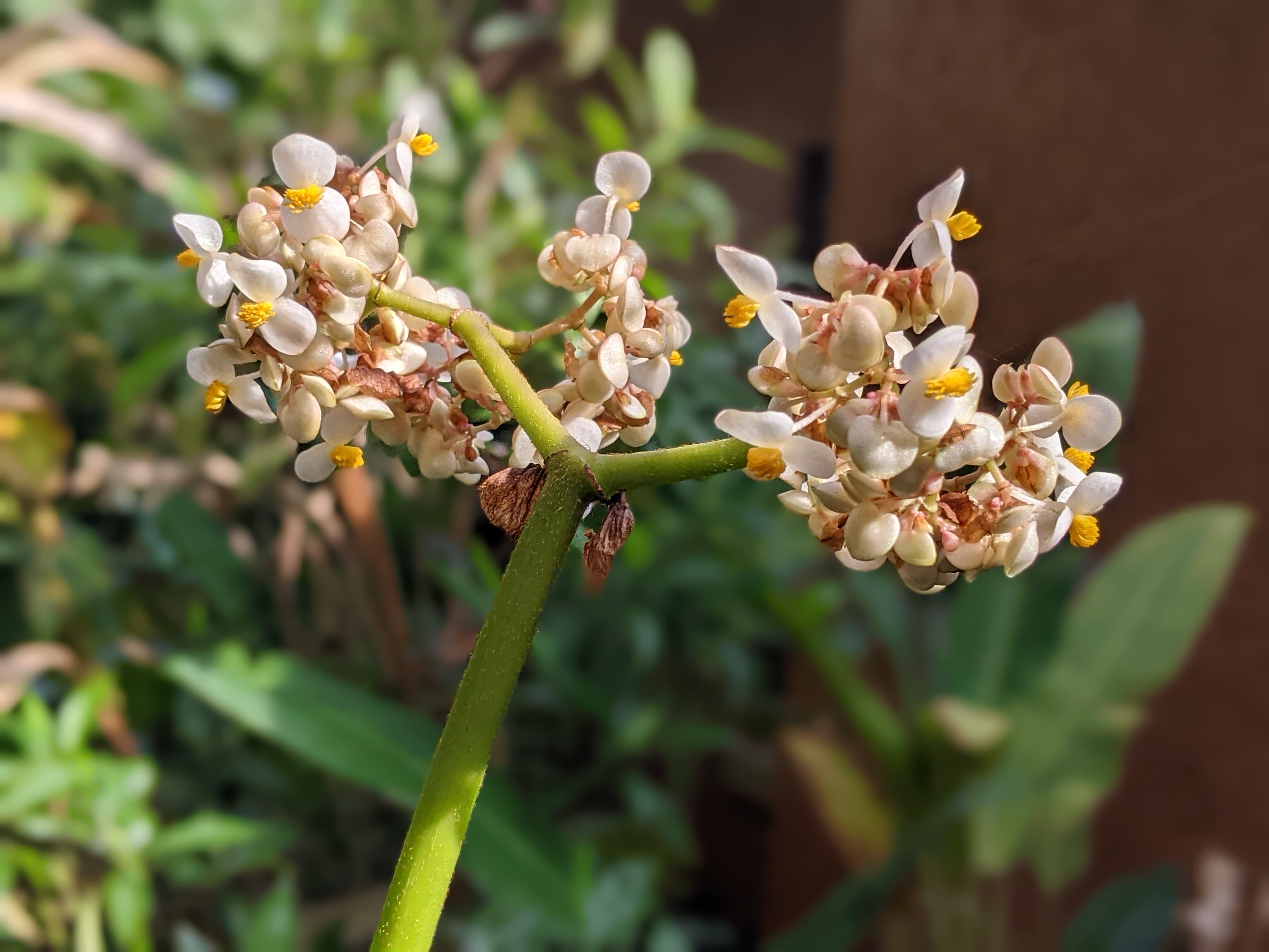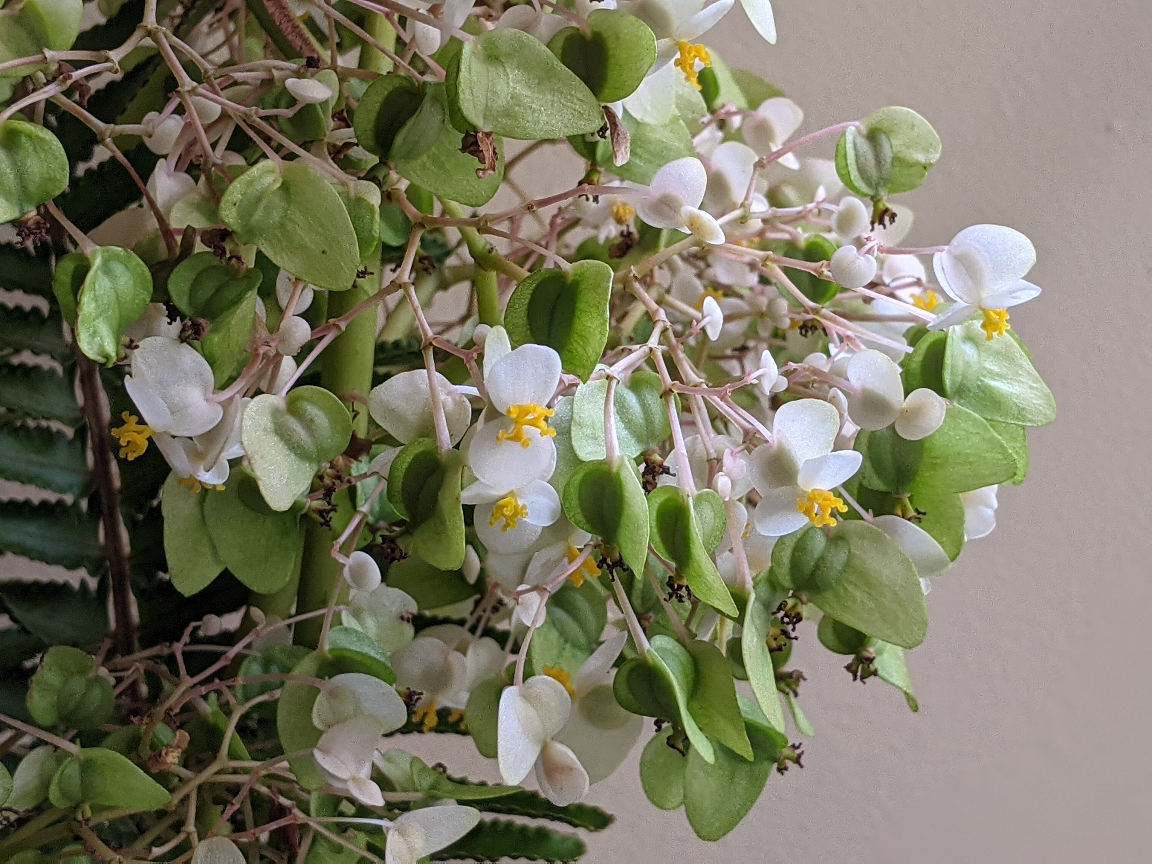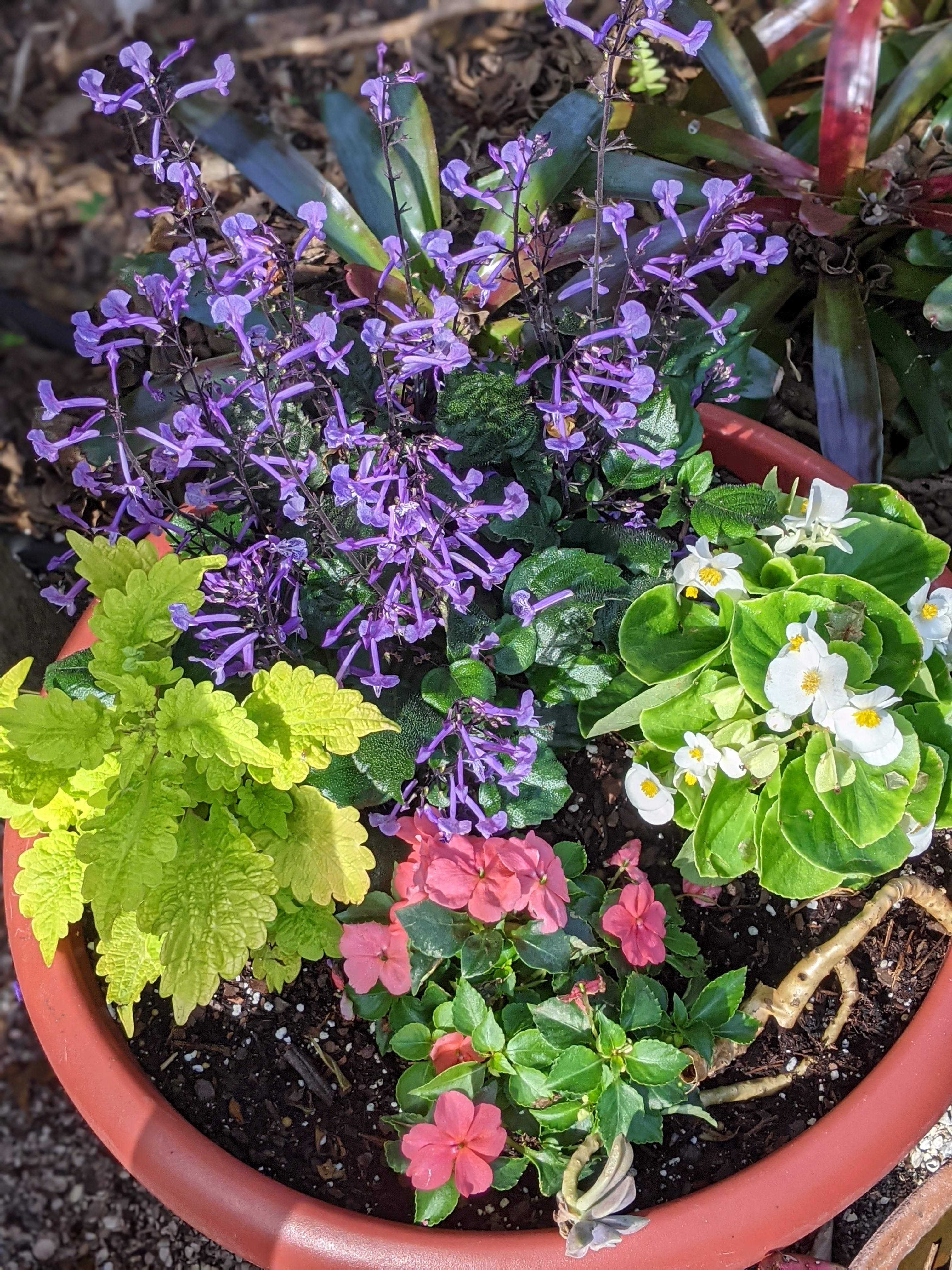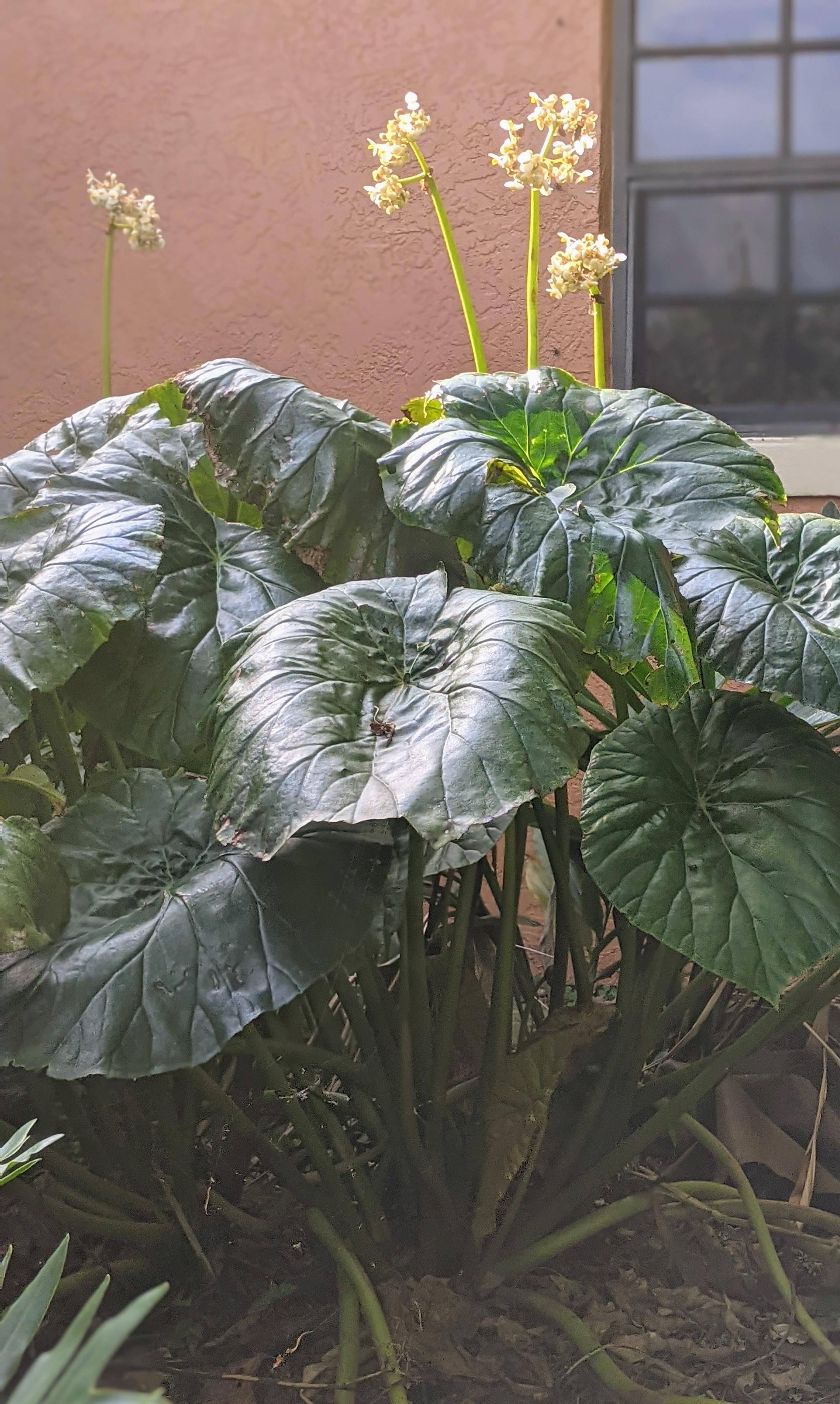 The Begonia in the arrangement is Lotusleaf. Definitely the biggest Begonia I have ever seen. It is a common roadside plant in Central America and pretty indestructible once established in my garden.