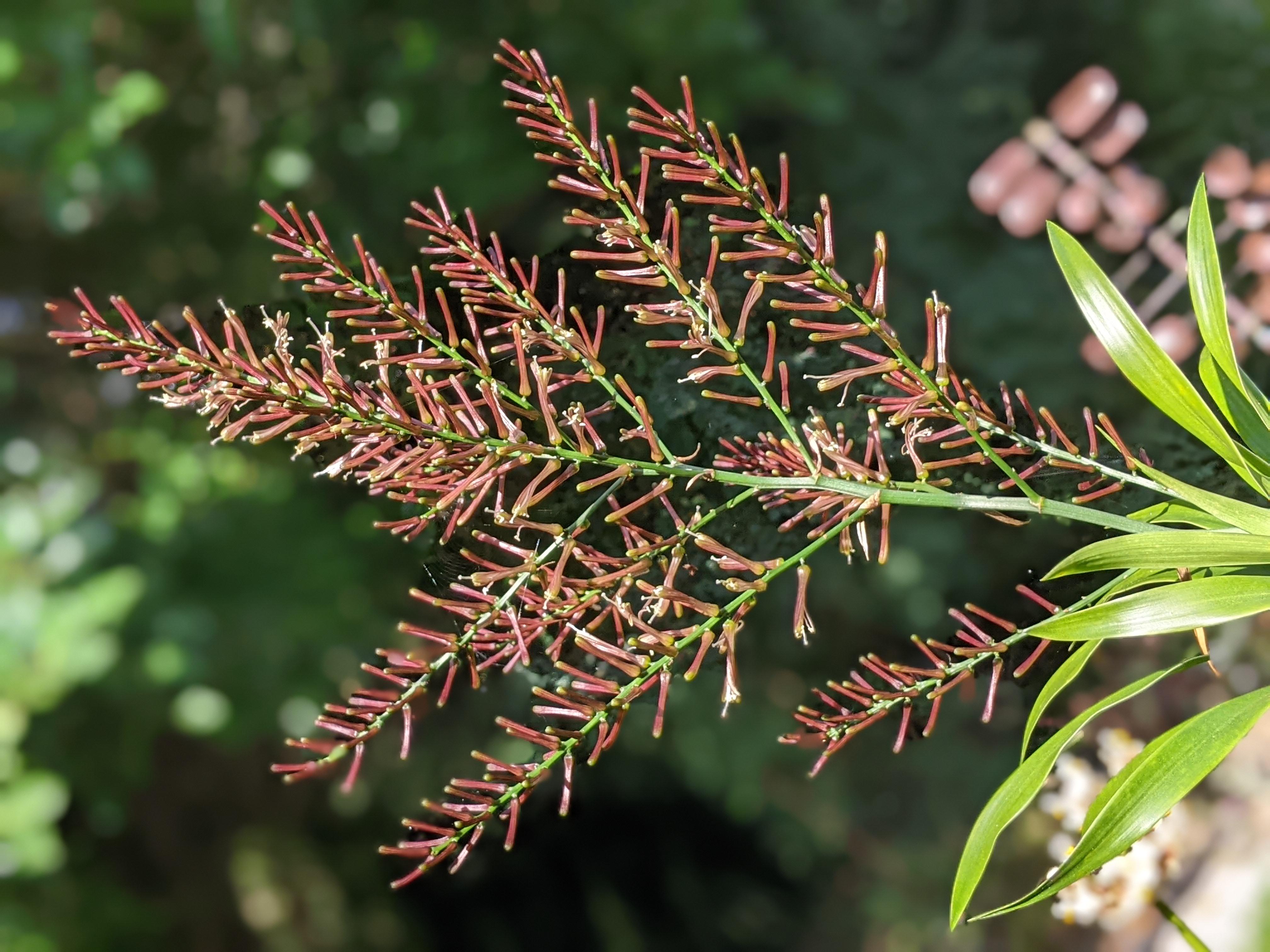 Desert Roses (Adenium obesum) are a mad thing. This is a red one frying on the pavement and finding its happy place. It doesn’t look much like a typical rose bush.