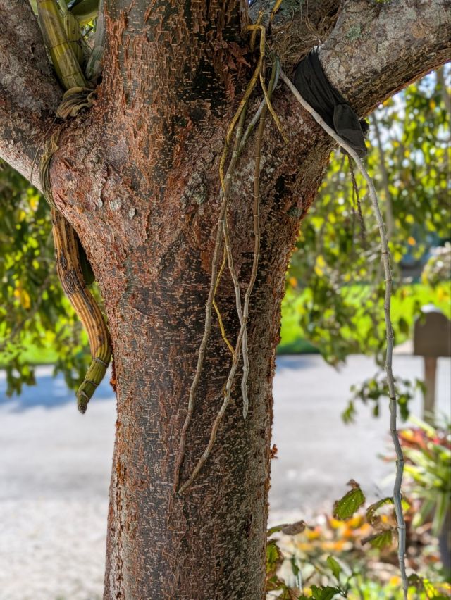 This is some kind of Dendrobium orchid. I have a friend who gives me orchids, she calls this the dead orchid. Because it looks dead and then flowers beautifully. The buds are just forming.
