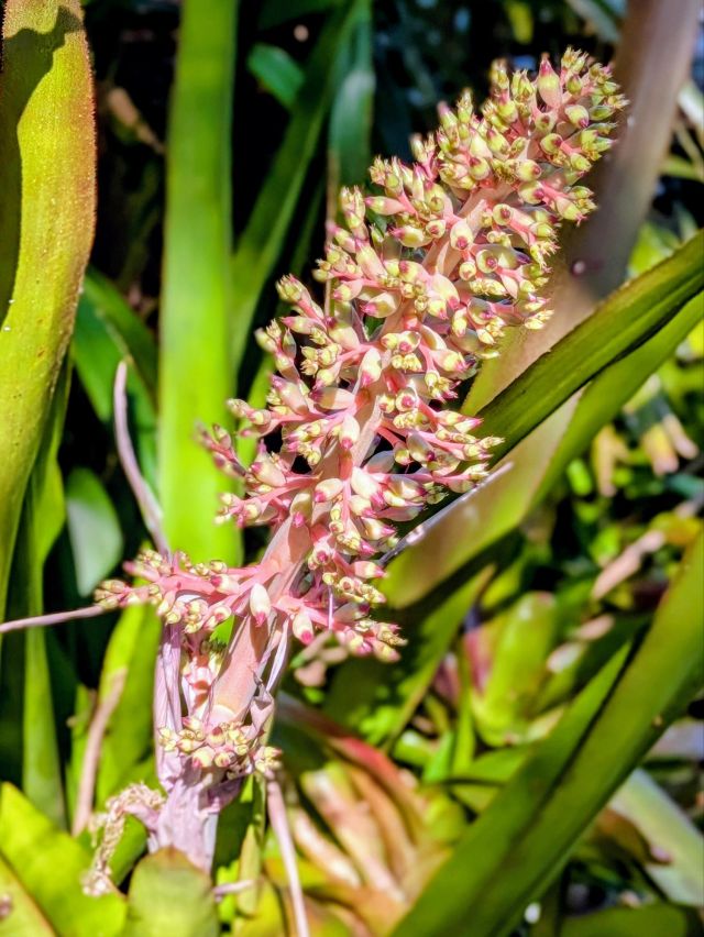 x Androlaechmea ‘O’Rourke bromeliad starting to flower. This is a big bromeliad, probably four feet tall. I would like to move it …but I don’t really want to touch it. Very sharp spines.