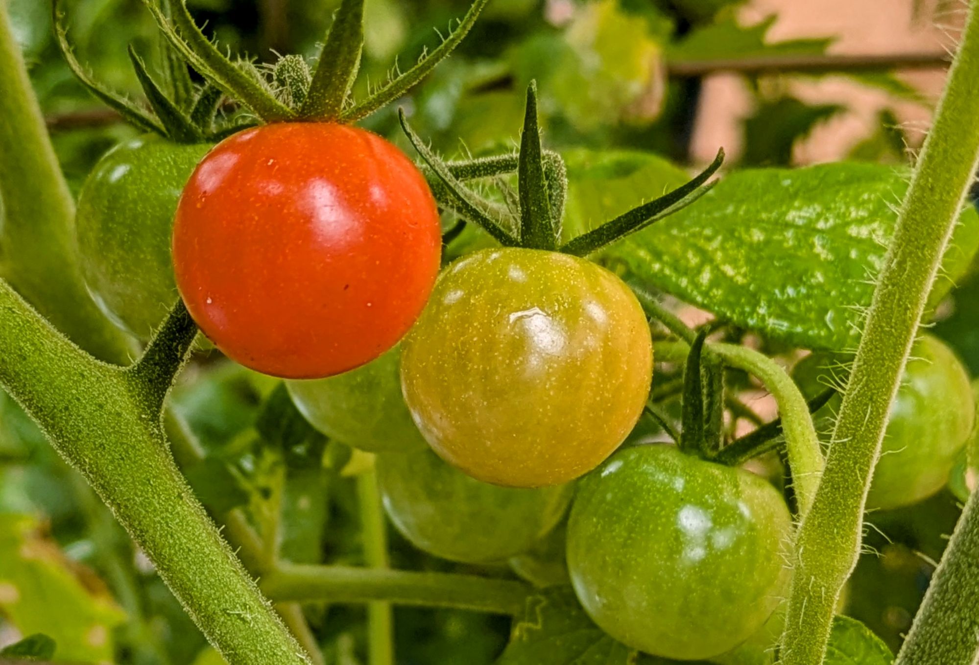 The first tomato this year is a Sweet 100. I have Yellow Pear and Brad’s Atomic Grape on the way. I gave up growing anything bigger than a cherry tomato years ago.