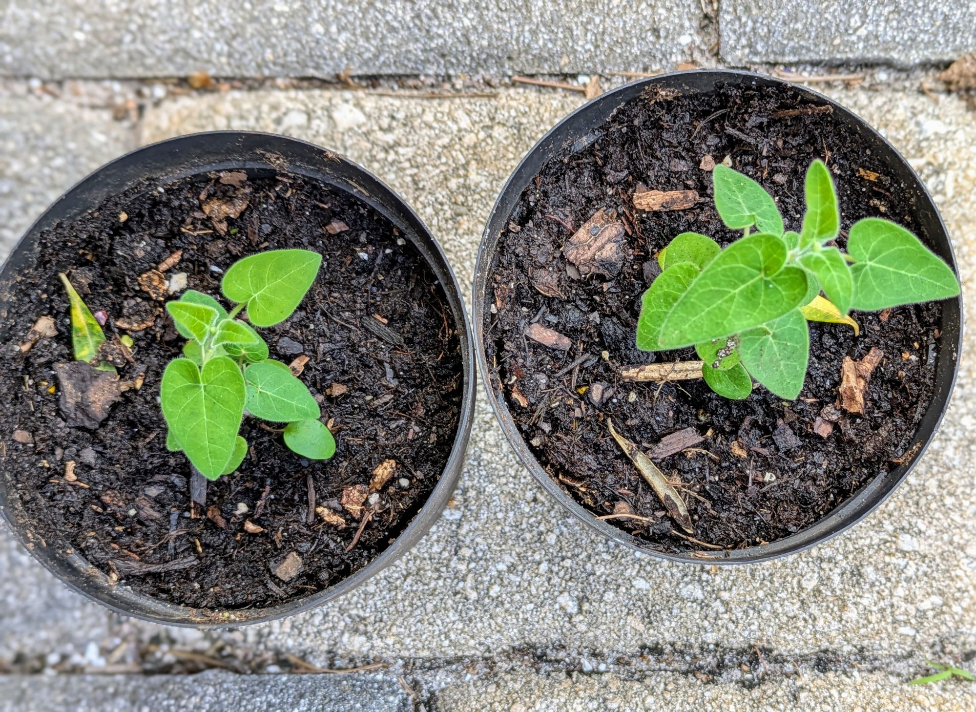 Another gift from a neighbor. Seedlings of Tweedia (Oxypetalum coeruleum) Has anyone tried this? A blue flowering pollinator plant is sometimes called Blue Milkweed. I planted these in the butterfly garden.
