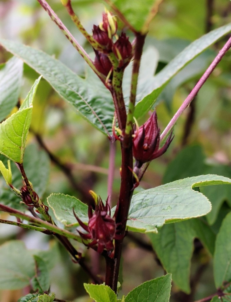 My garden is enjoying the weather cool down and making flowers and fruit for fall. I have begun harvesting the Roselles (Hibicus sabdariffa) and here is the first batch: