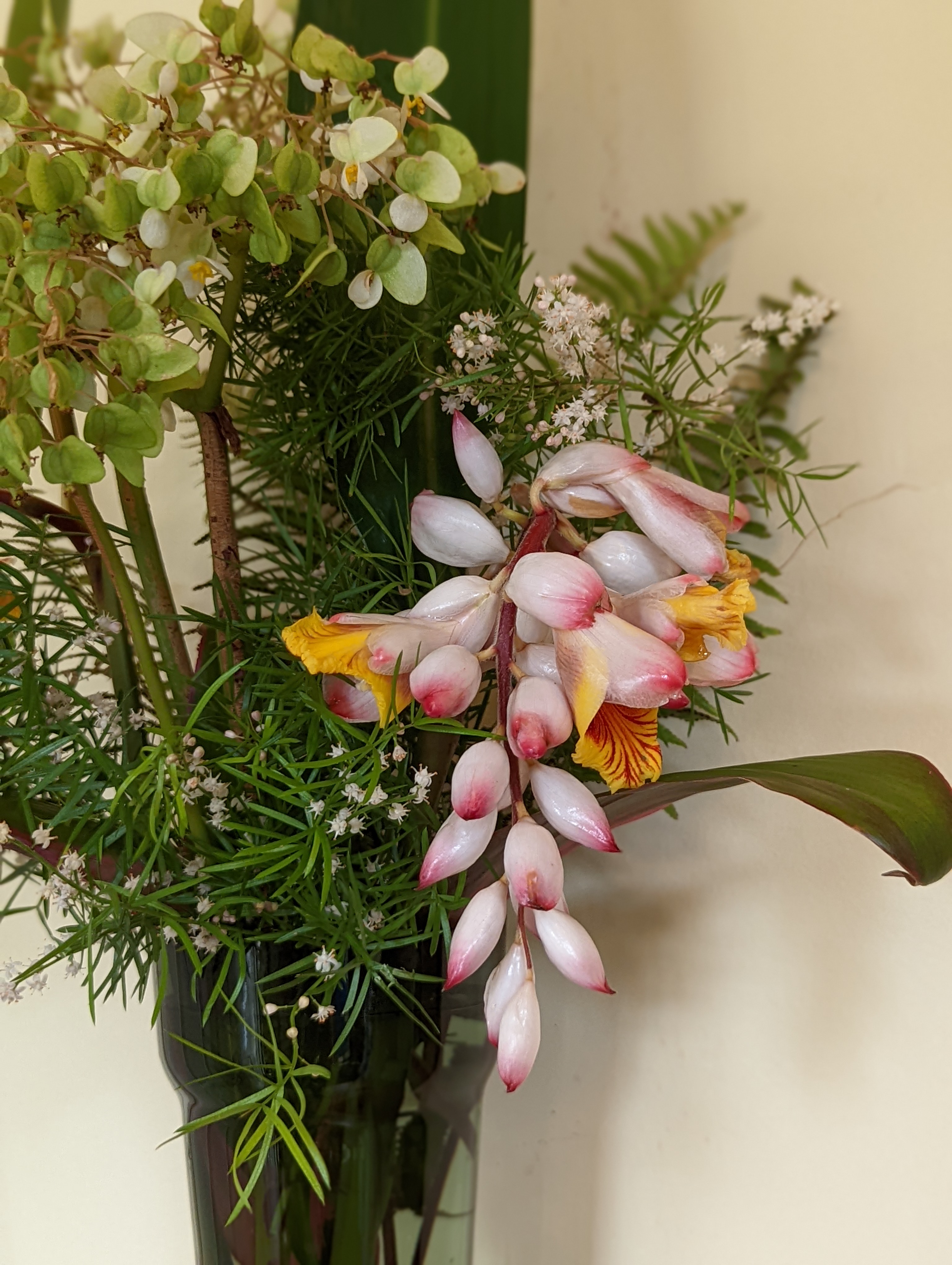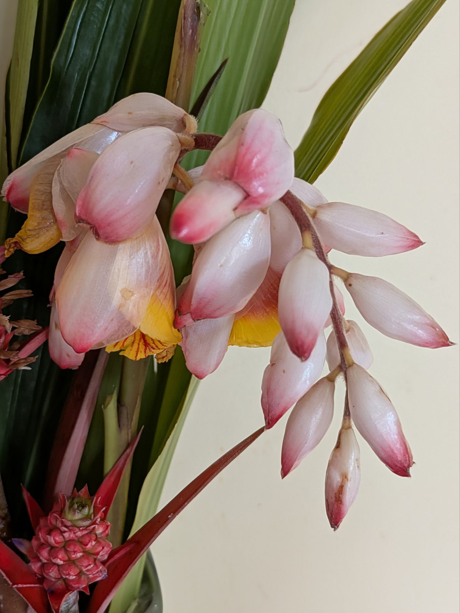 A close up of the Shell Ginger (Alpinia zerumbet). These are native to East Asia, I can only imagine the fantastic rainforest they are from. They are edible and have a wonderful gingery fragrance when trimmed. Culinary ginger is better for use in cooking, this is a bit thinner in flavor.