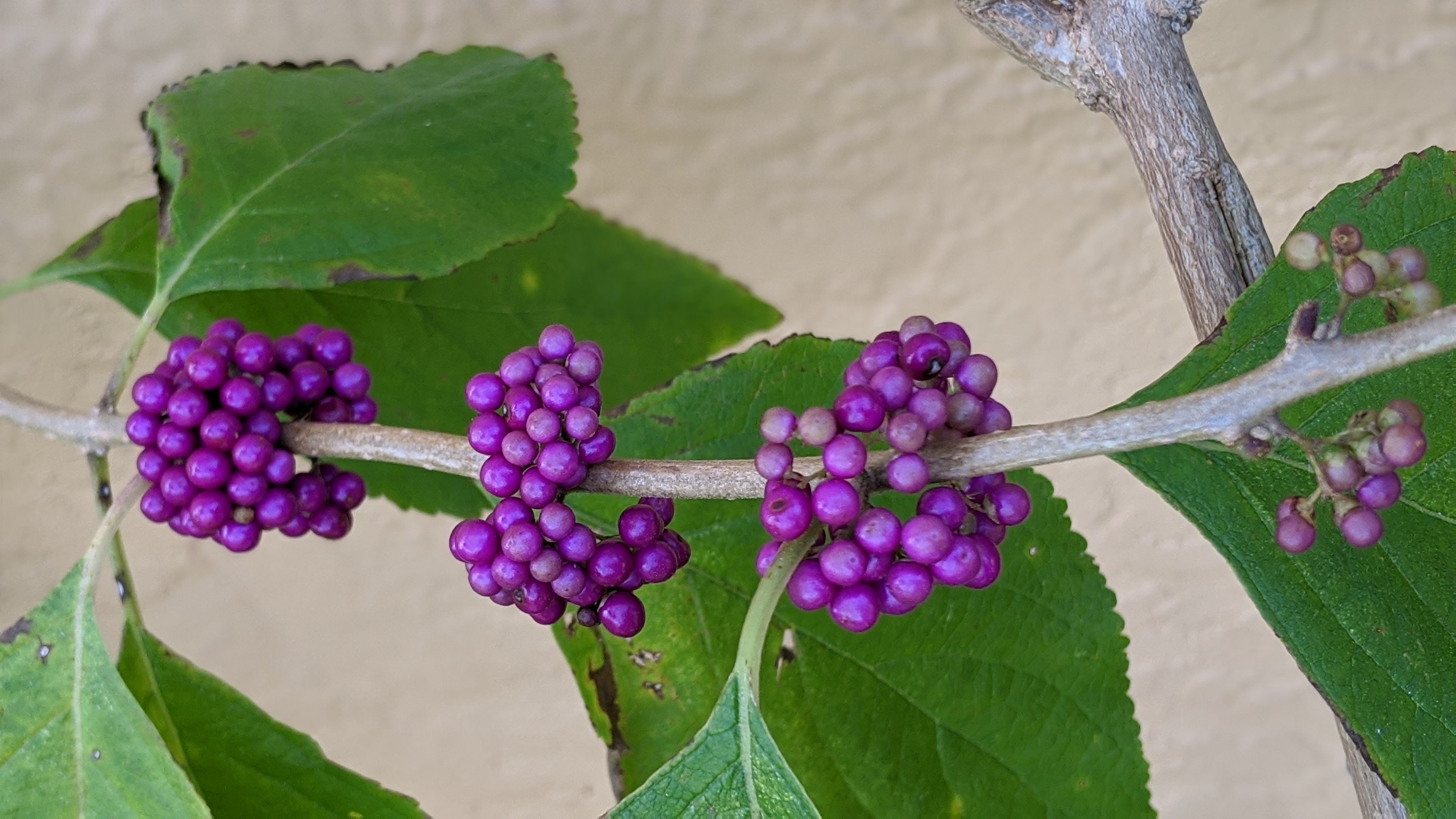 May I present a completely inedible (to most people) berry parfait from my garden. I should invite eight birds, squirrels or lizards for a feast. The lizards are big in South Florida. People can eat these berries, most would chose not too. Tasty they are not.
