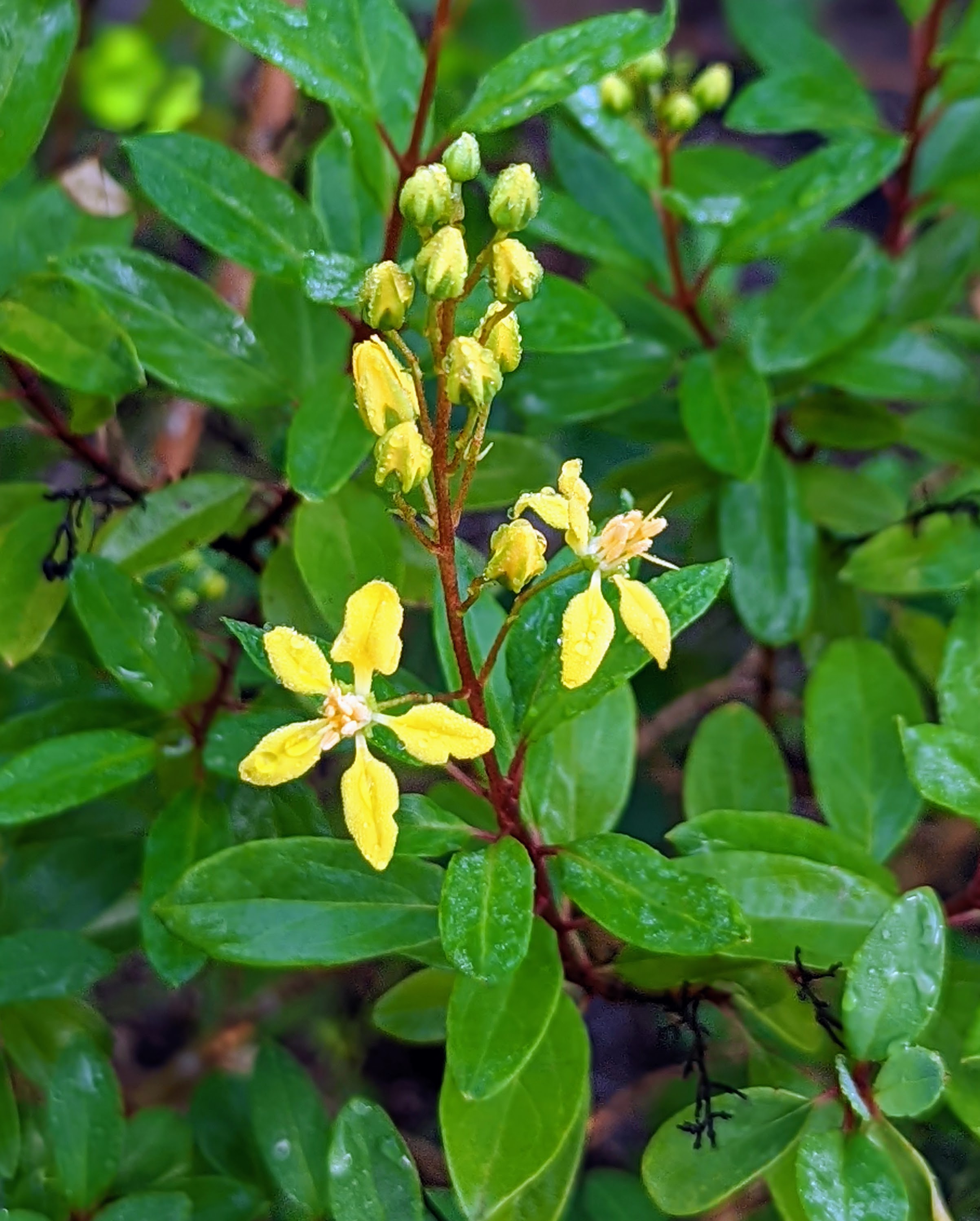 A stalwart shrub in the garden, Thyrallis (Galphimia glauca). I have wondered what Thyrallis means, it seems such a strange thing to call a plant. The only reference I could find said it is Greek for wick. Further confusing me. It is a bulletproof shrub in my garden, living in an unirrigated area and living off of mostly rainwater. It blooms late summer to fall.