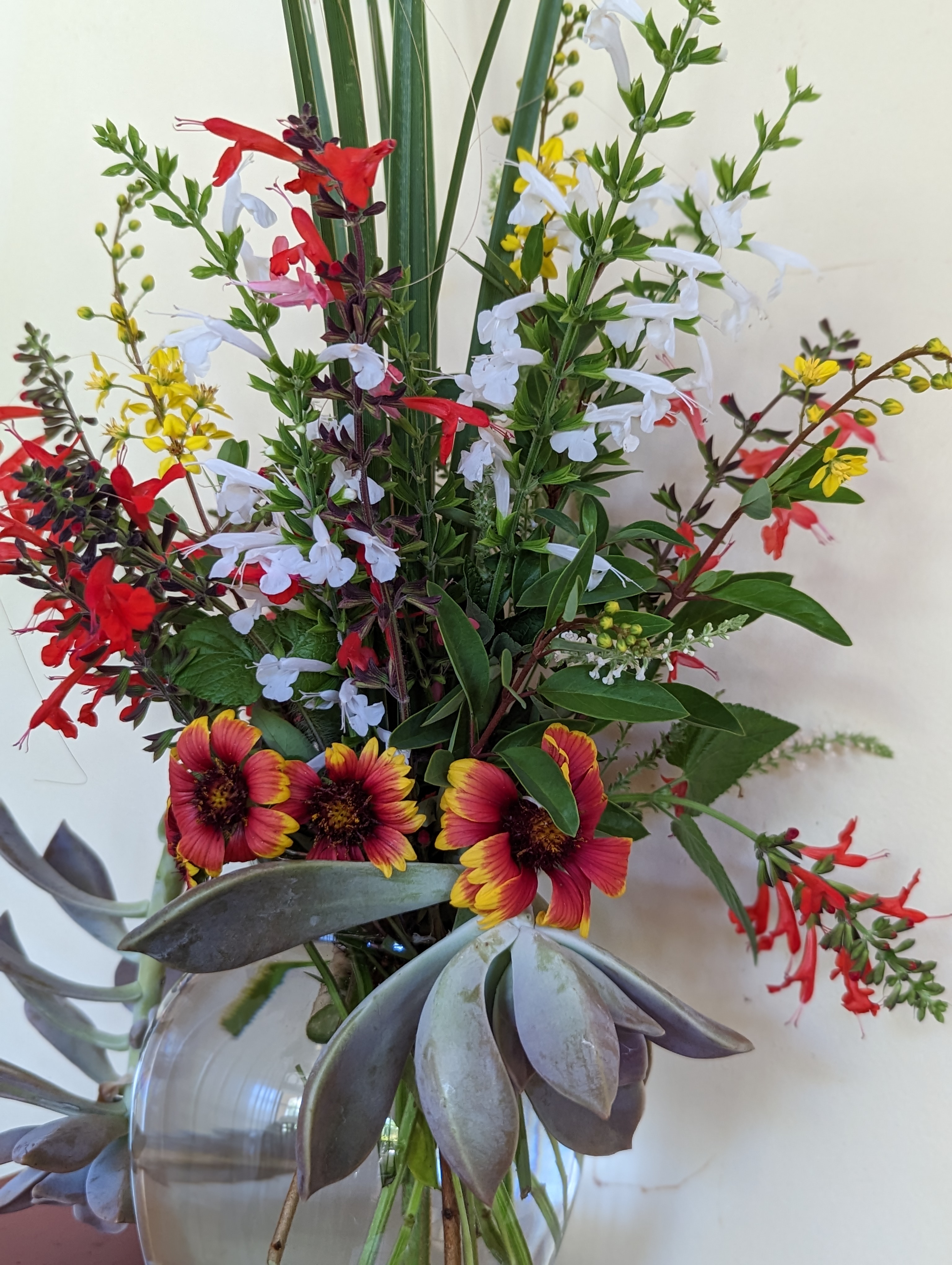Last, but not least, the ‘no gardening’ zone next to my compost heap. Ironically, probably the prettiest grouping of reseeded Tropical Red Salvia (Salvia coccinea) in the garden.