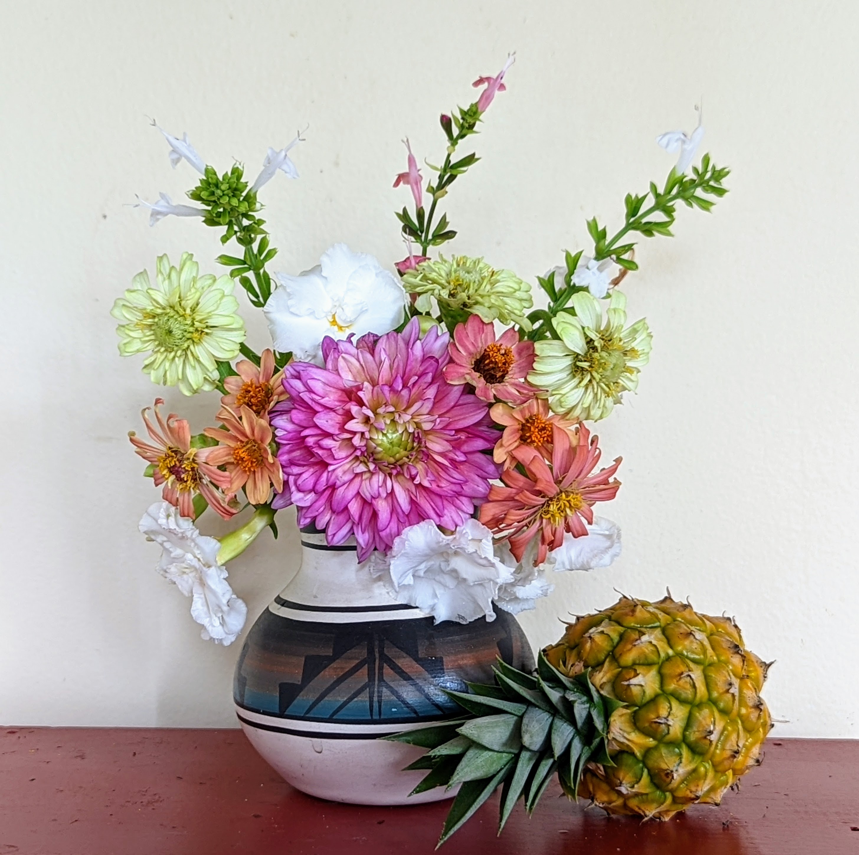That’s all from South Florida. I’ll be in the garden not watching the news and getting things straightened out for summer. To see more vases, follow this link to visit Cathy RamblingintheGarden.
